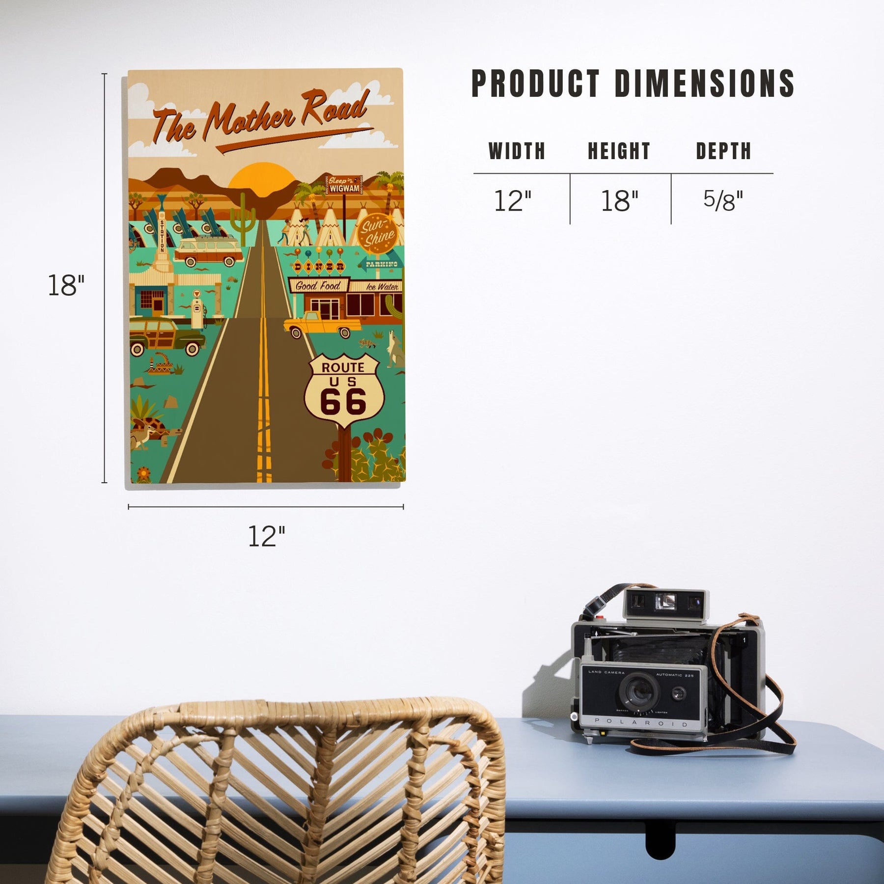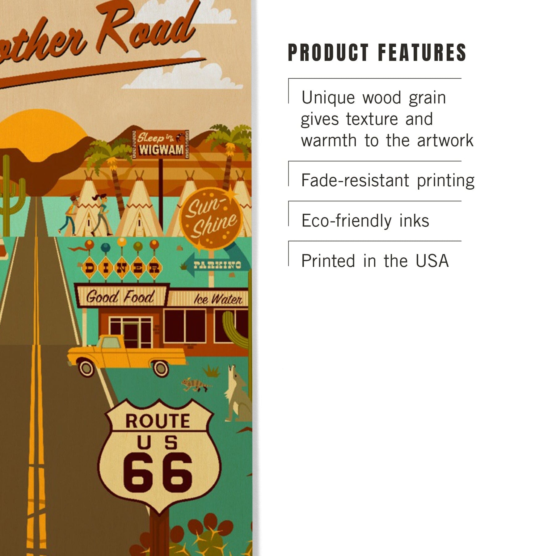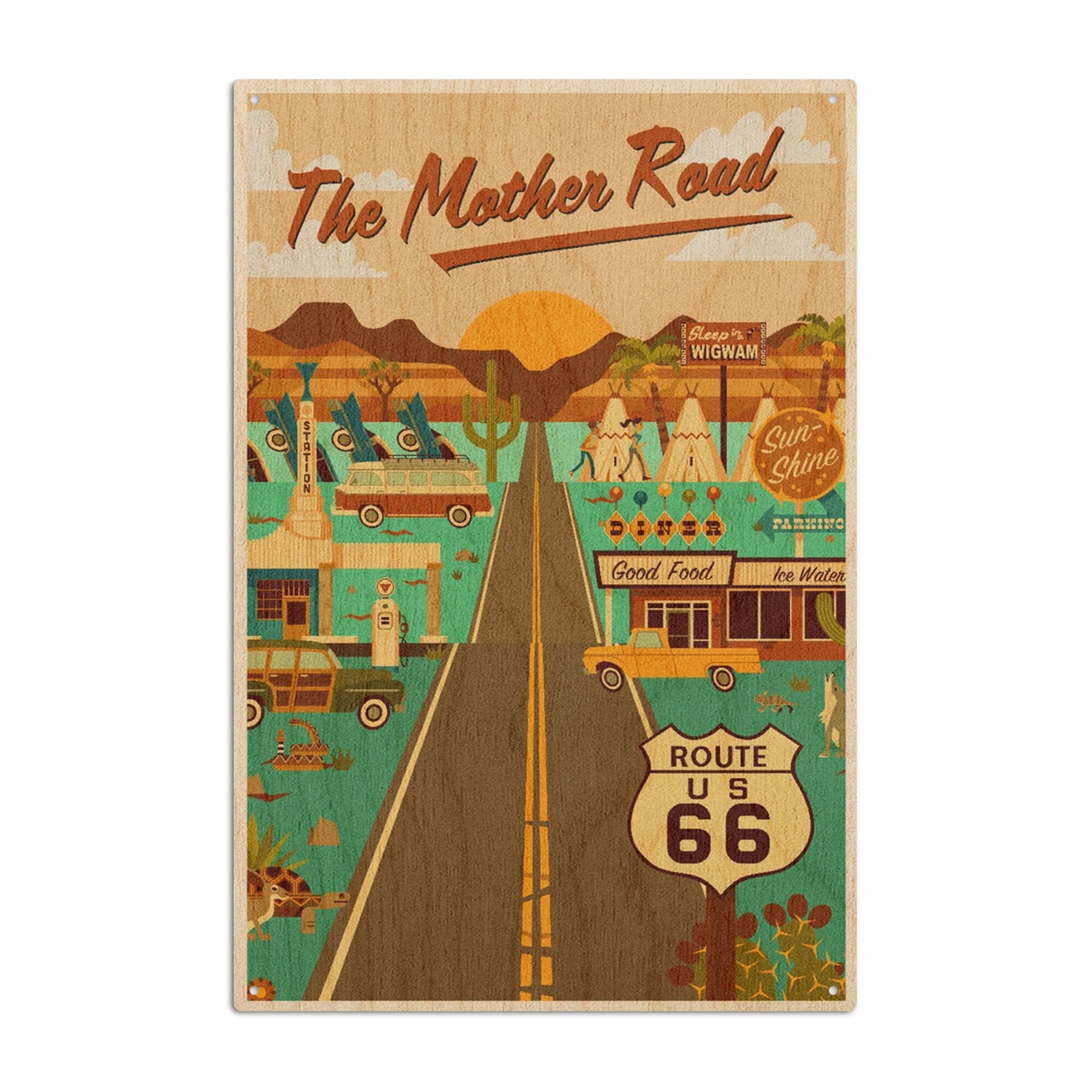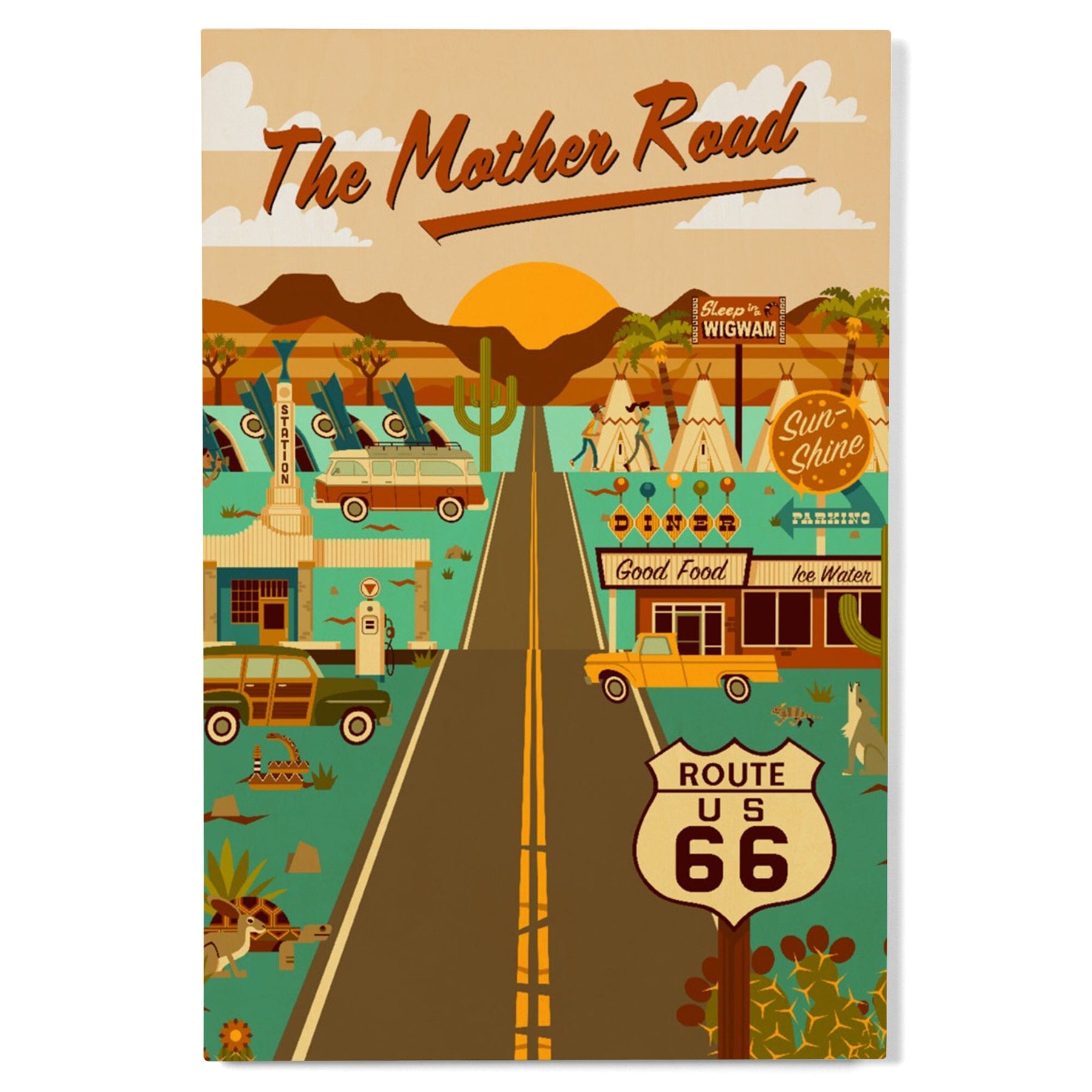 Route 66, Mother Road, Geometric, Lantern Press Artwork, Wood Signs and Postcards Wood Lantern Press