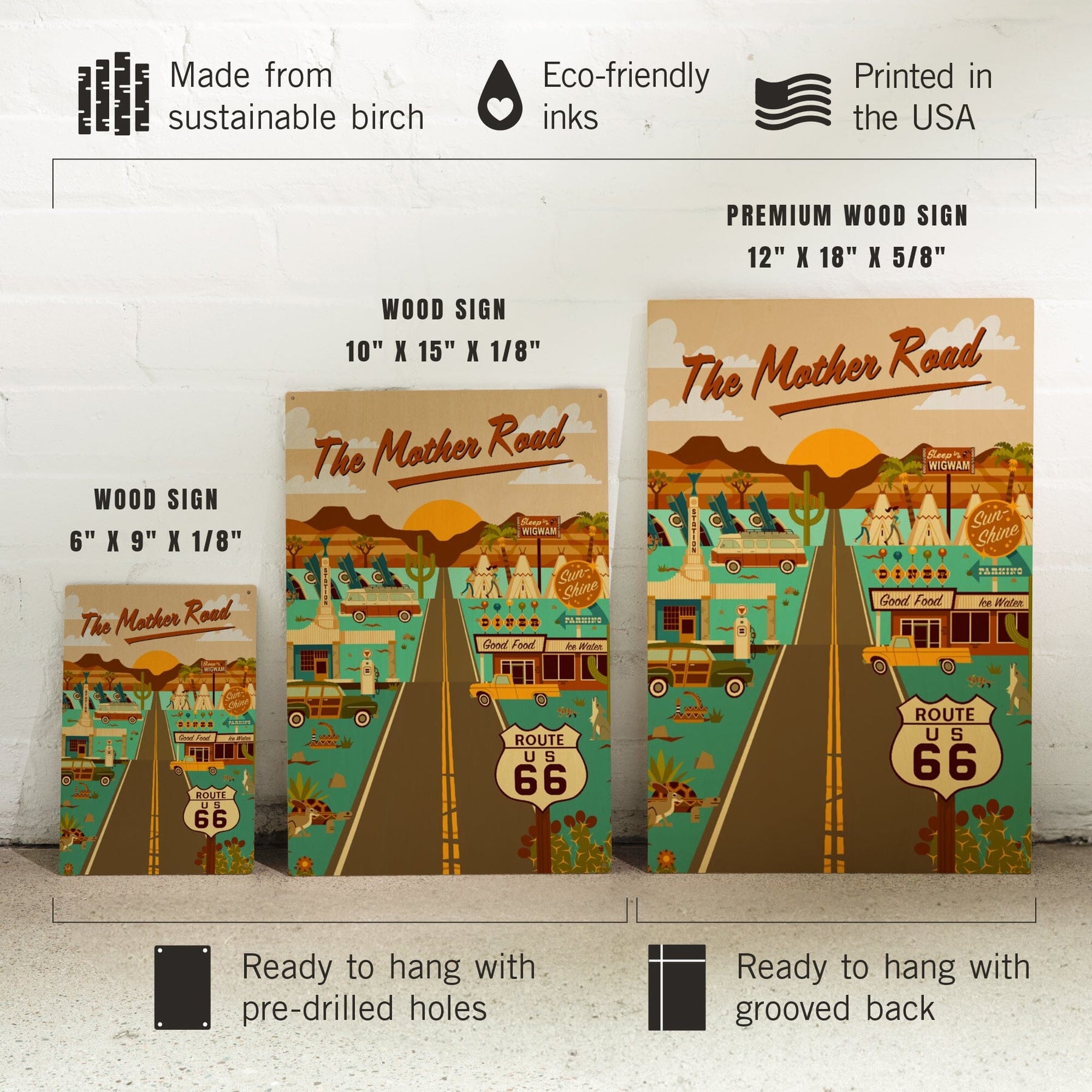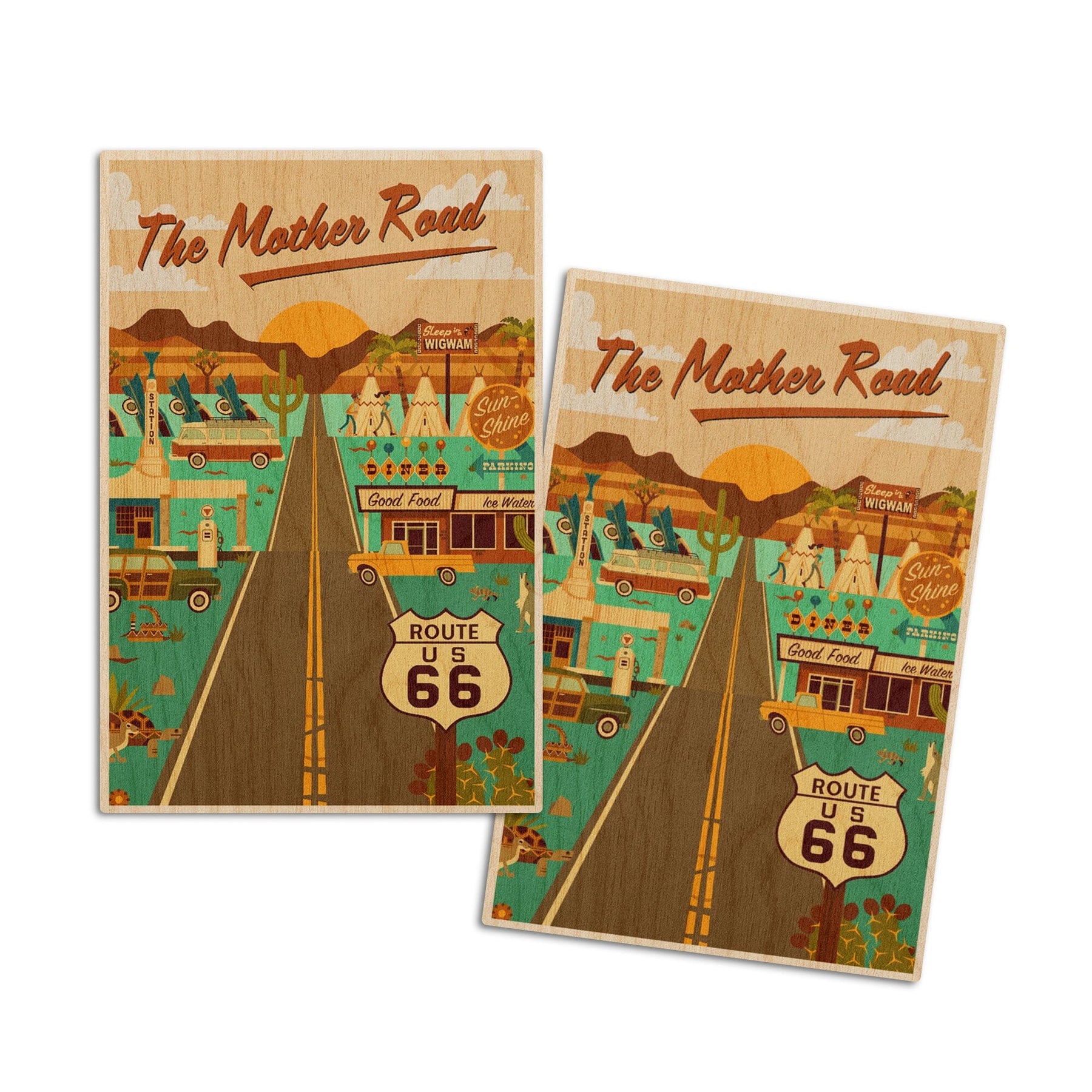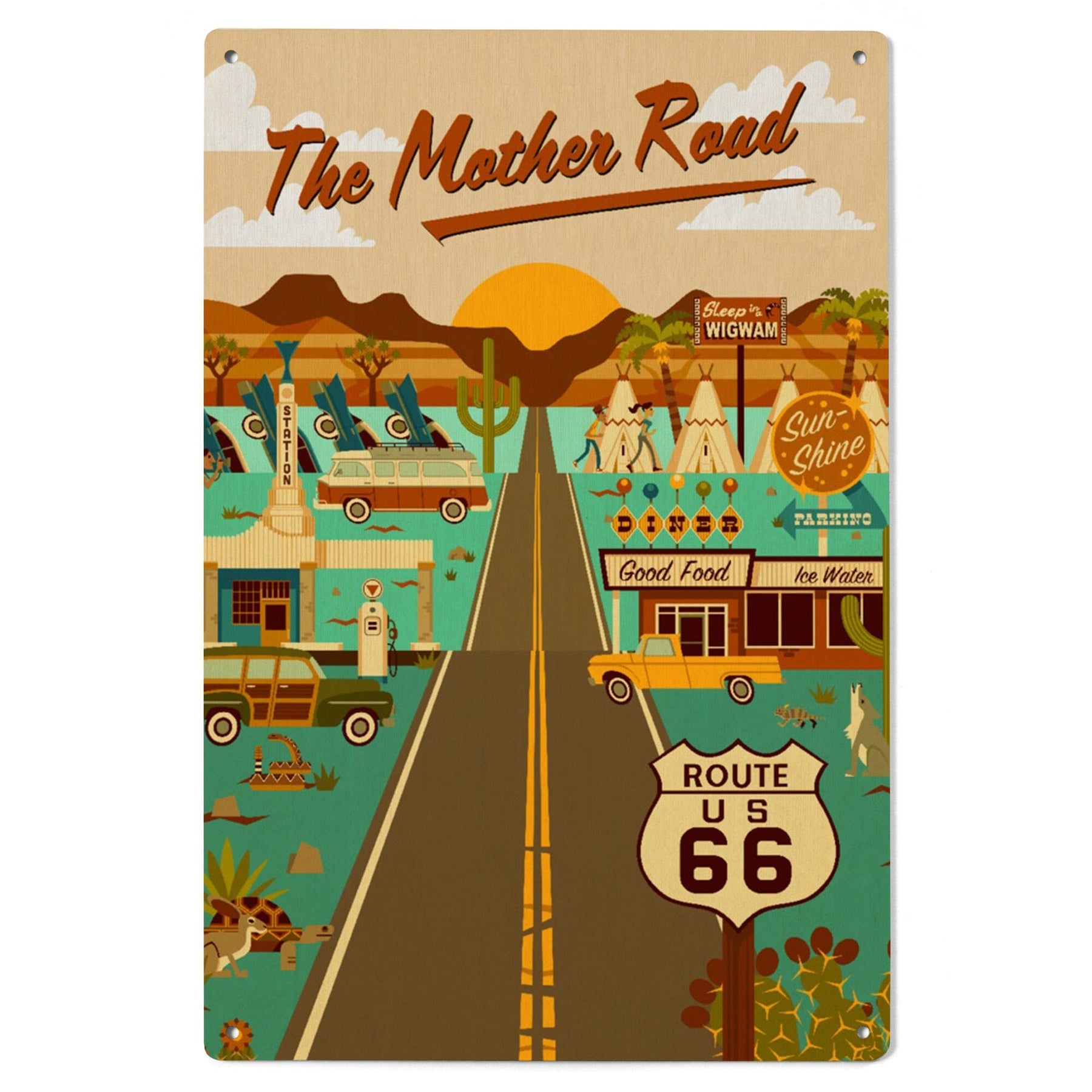 Route 66, Mother Road, Geometric, Lantern Press Artwork, Wood Signs and Postcards