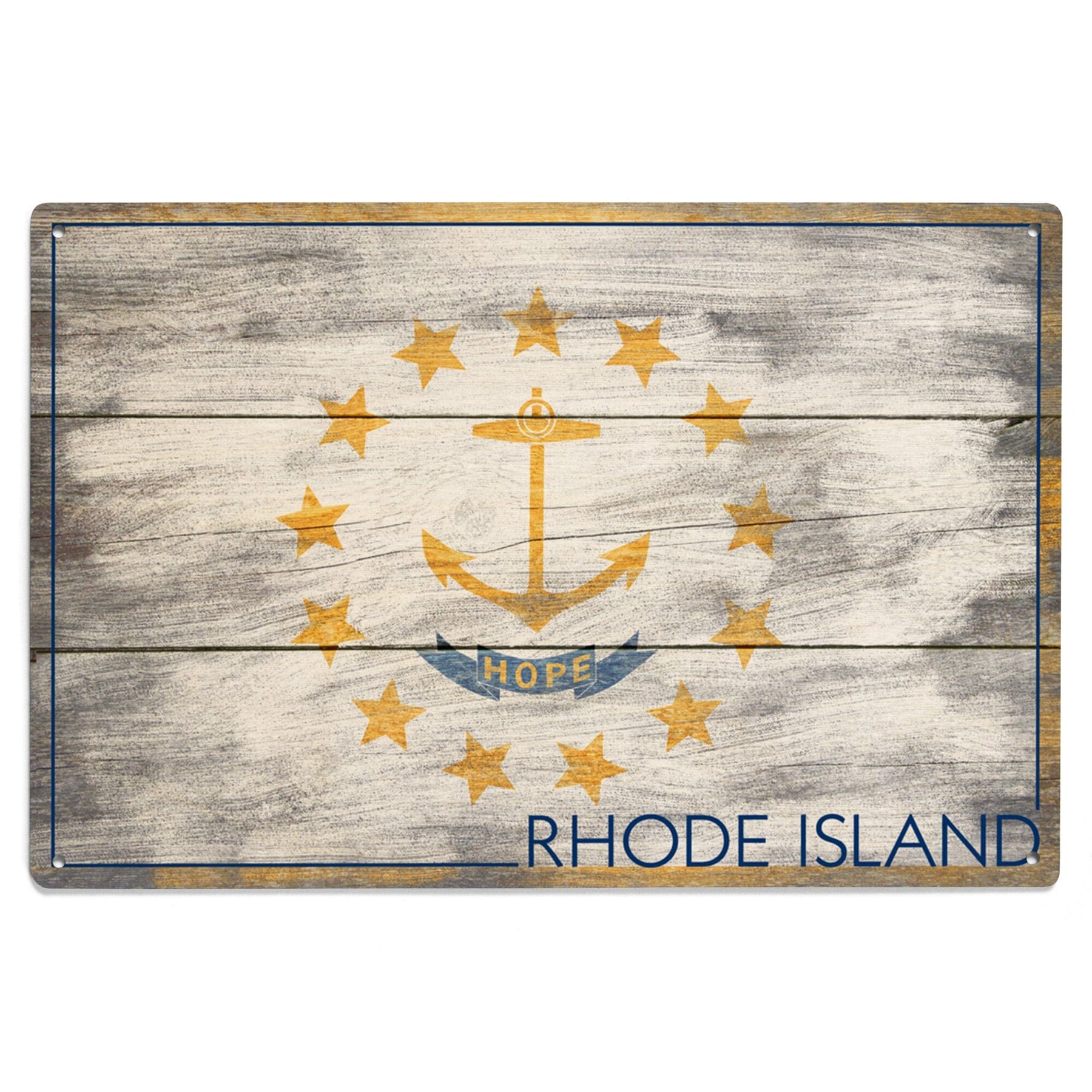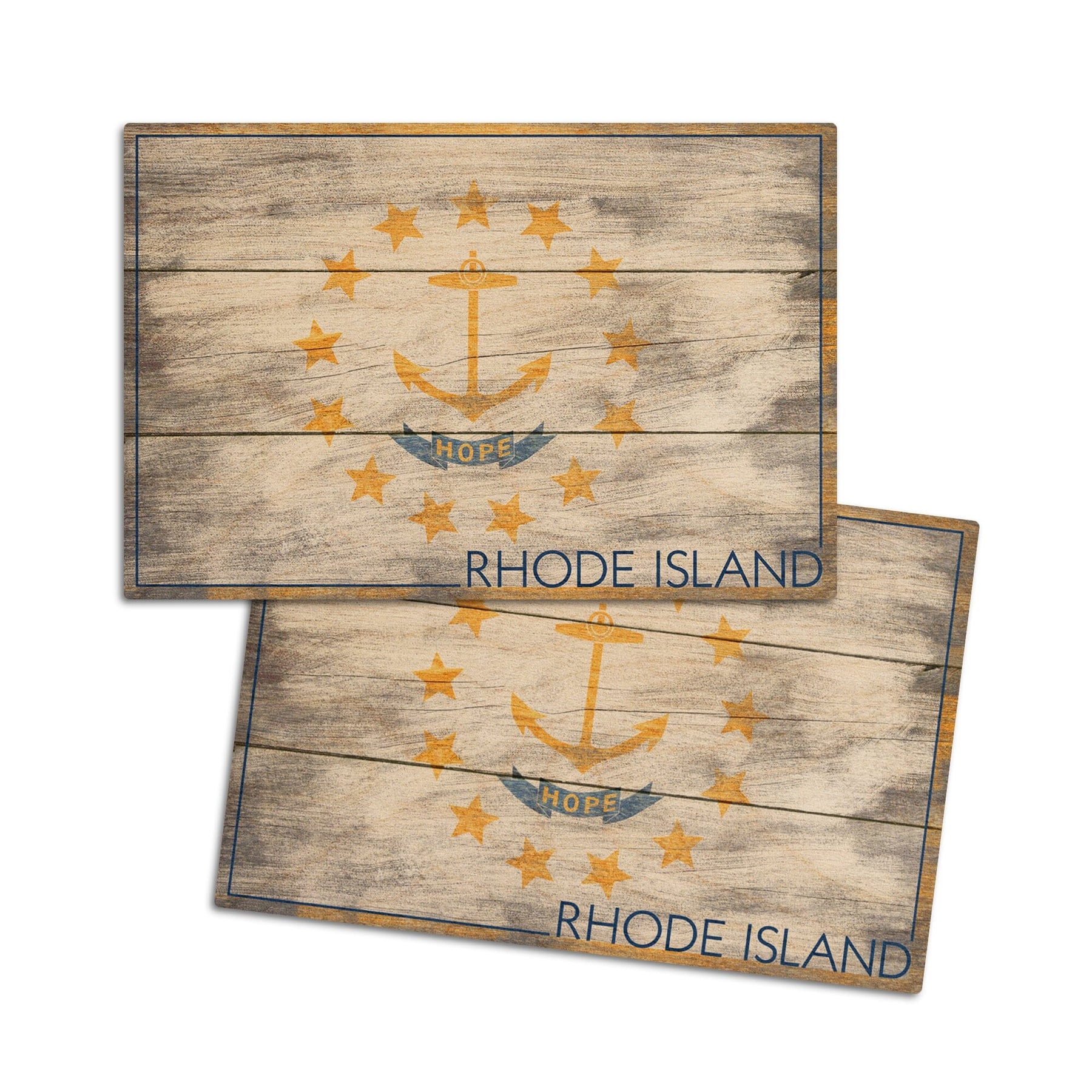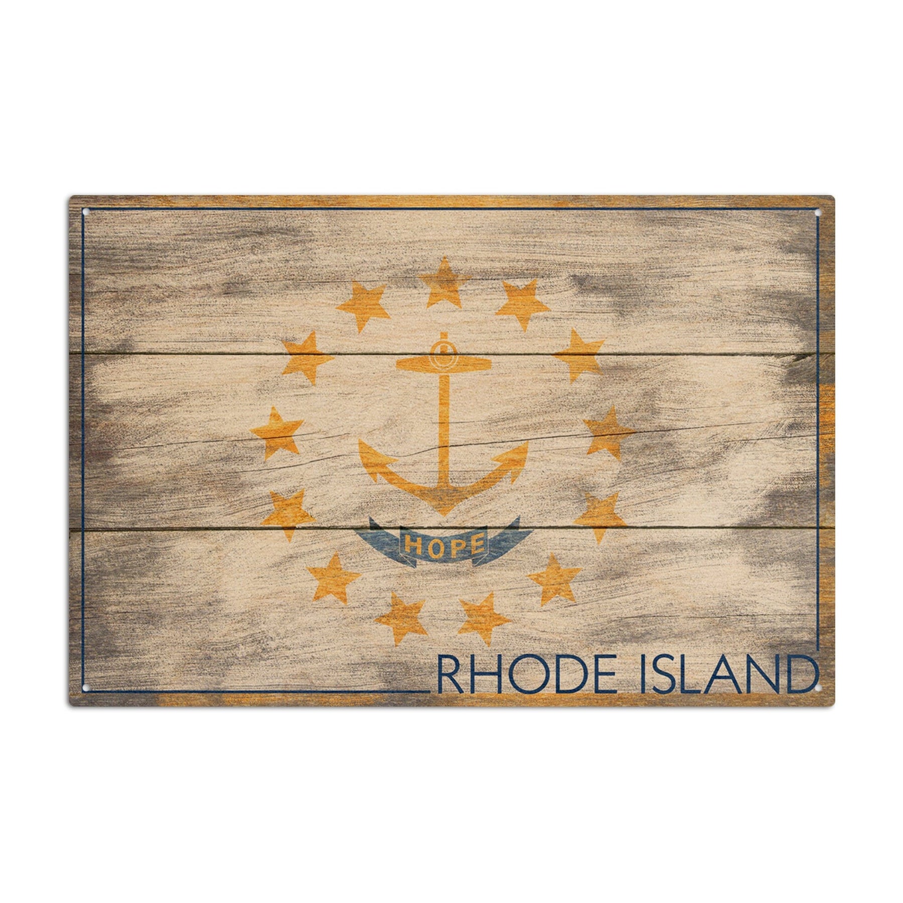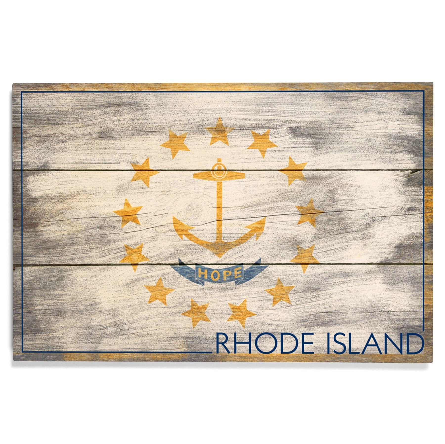 Rustic Rhode Island State Flag, Lantern Press Artwork, Wood Signs and Postcards