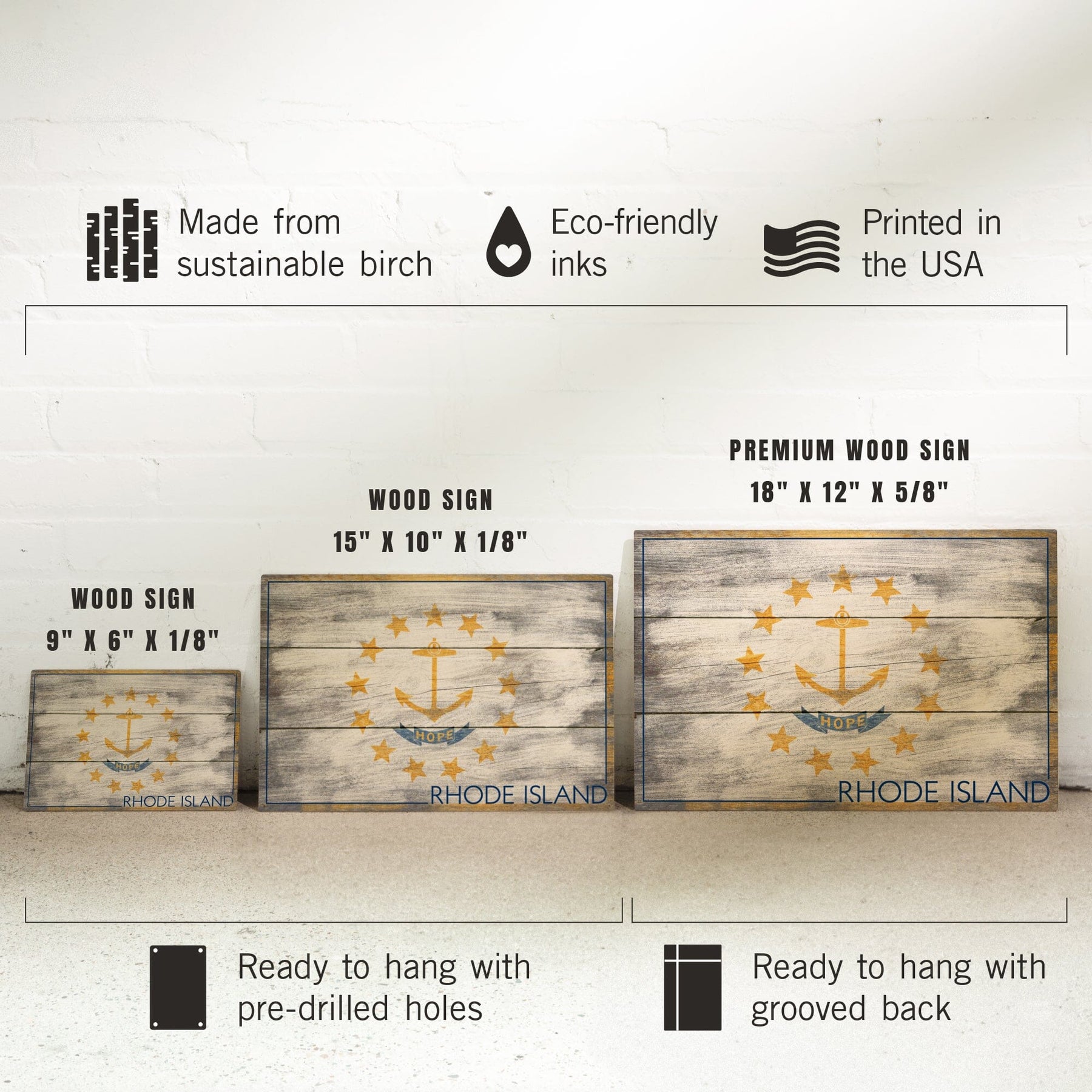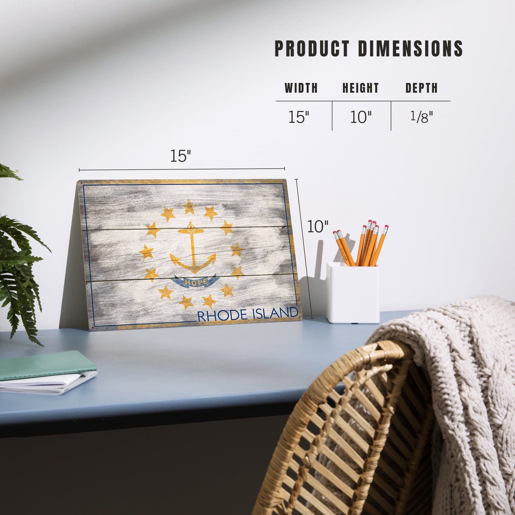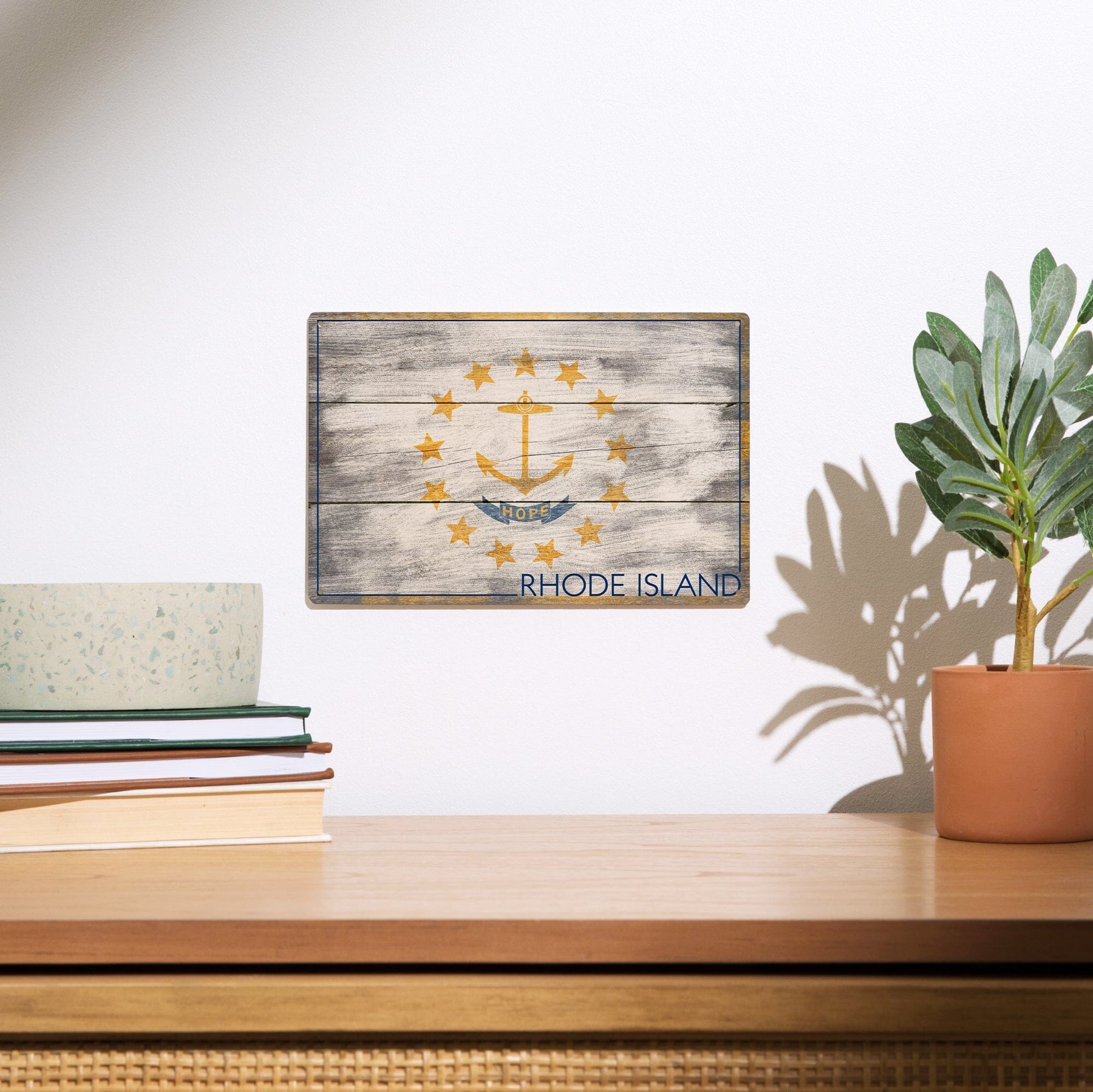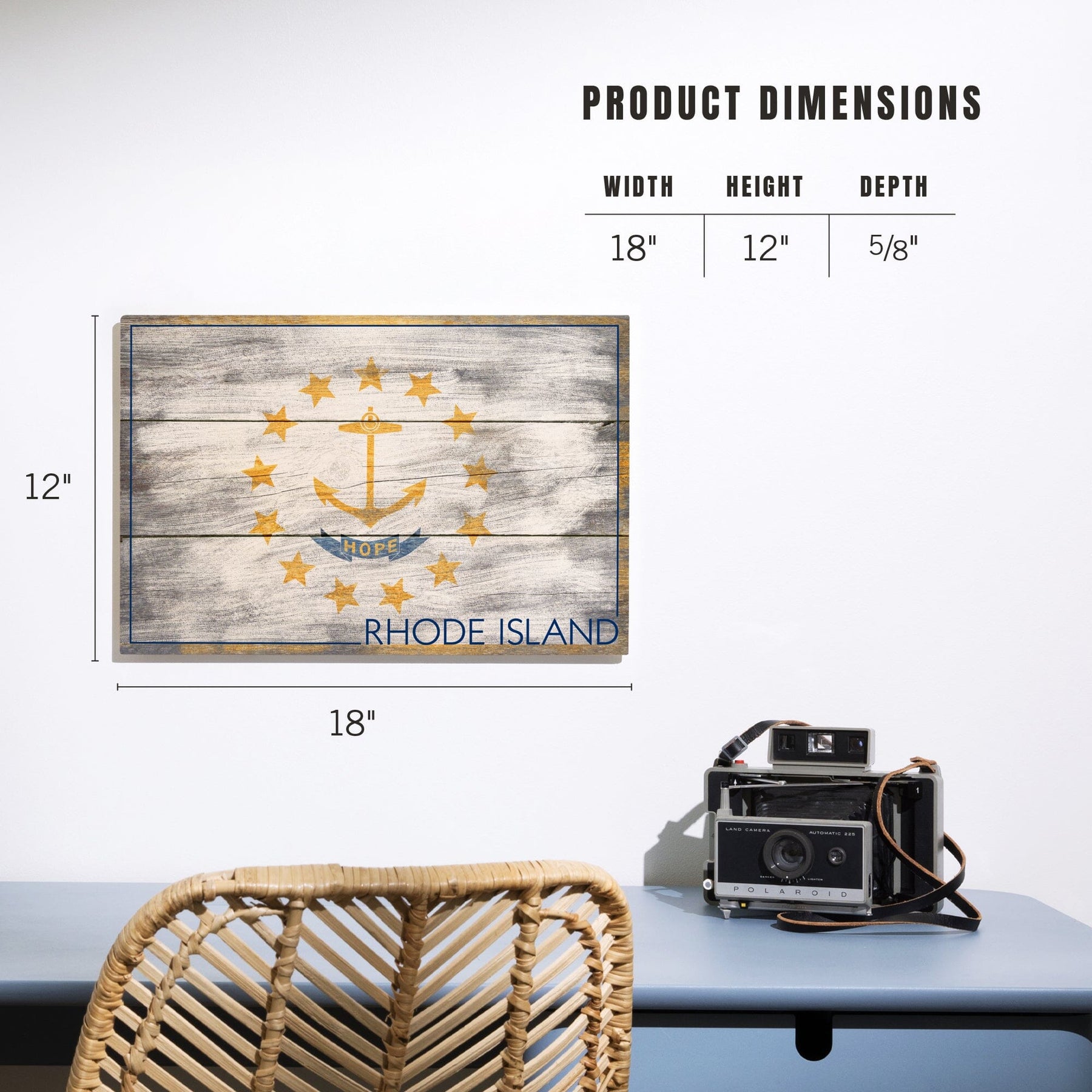 Rustic Rhode Island State Flag, Lantern Press Artwork, Wood Signs and Postcards