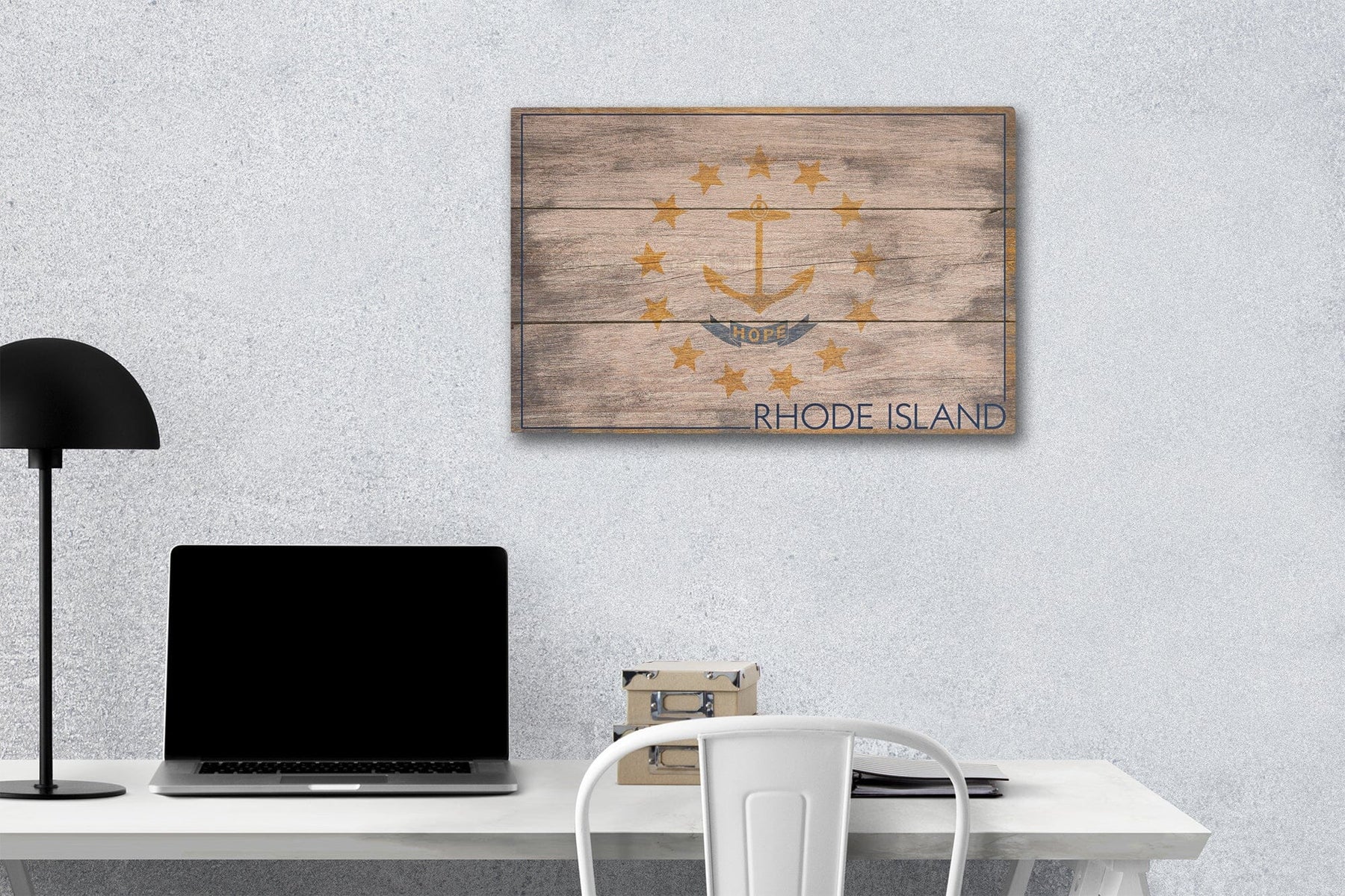Rustic Rhode Island State Flag, Lantern Press Artwork, Wood Signs and Postcards Wood Lantern Press