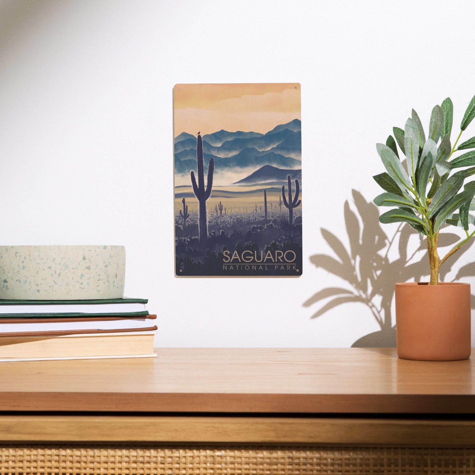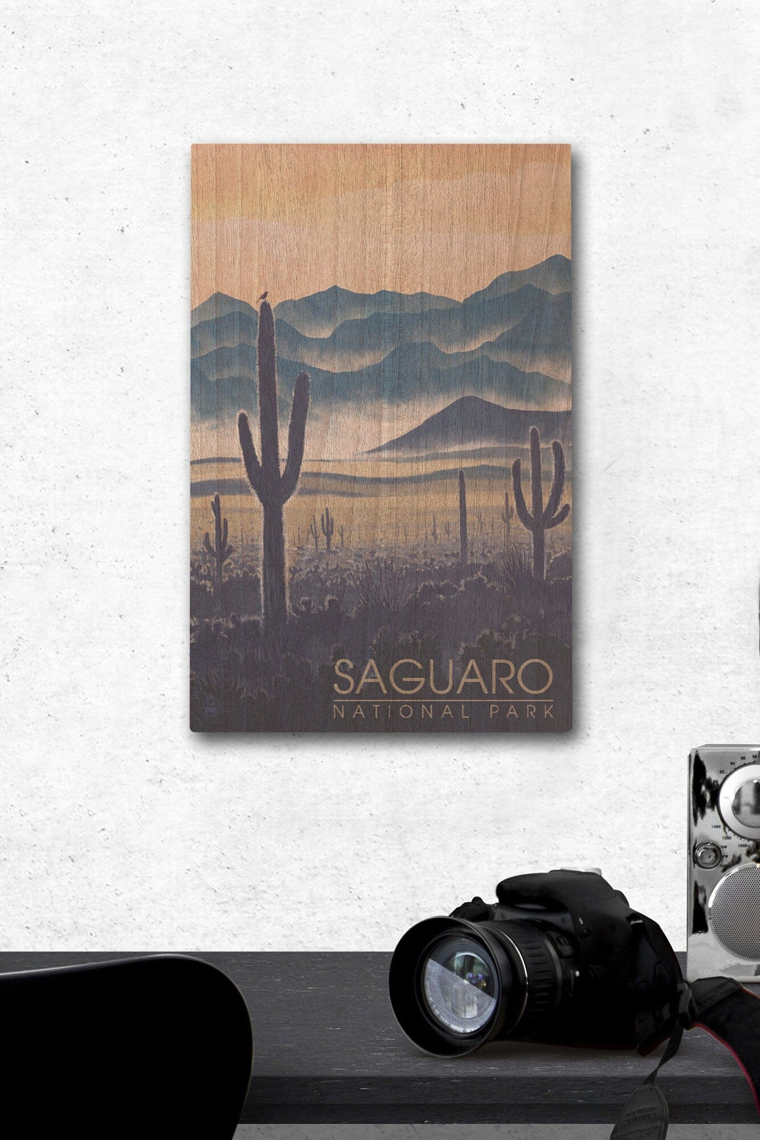 Saguaro National Park, Arizona, Desert Landscape, Lantern Press Artwork, Wood Signs and Postcards Wood Lantern Press