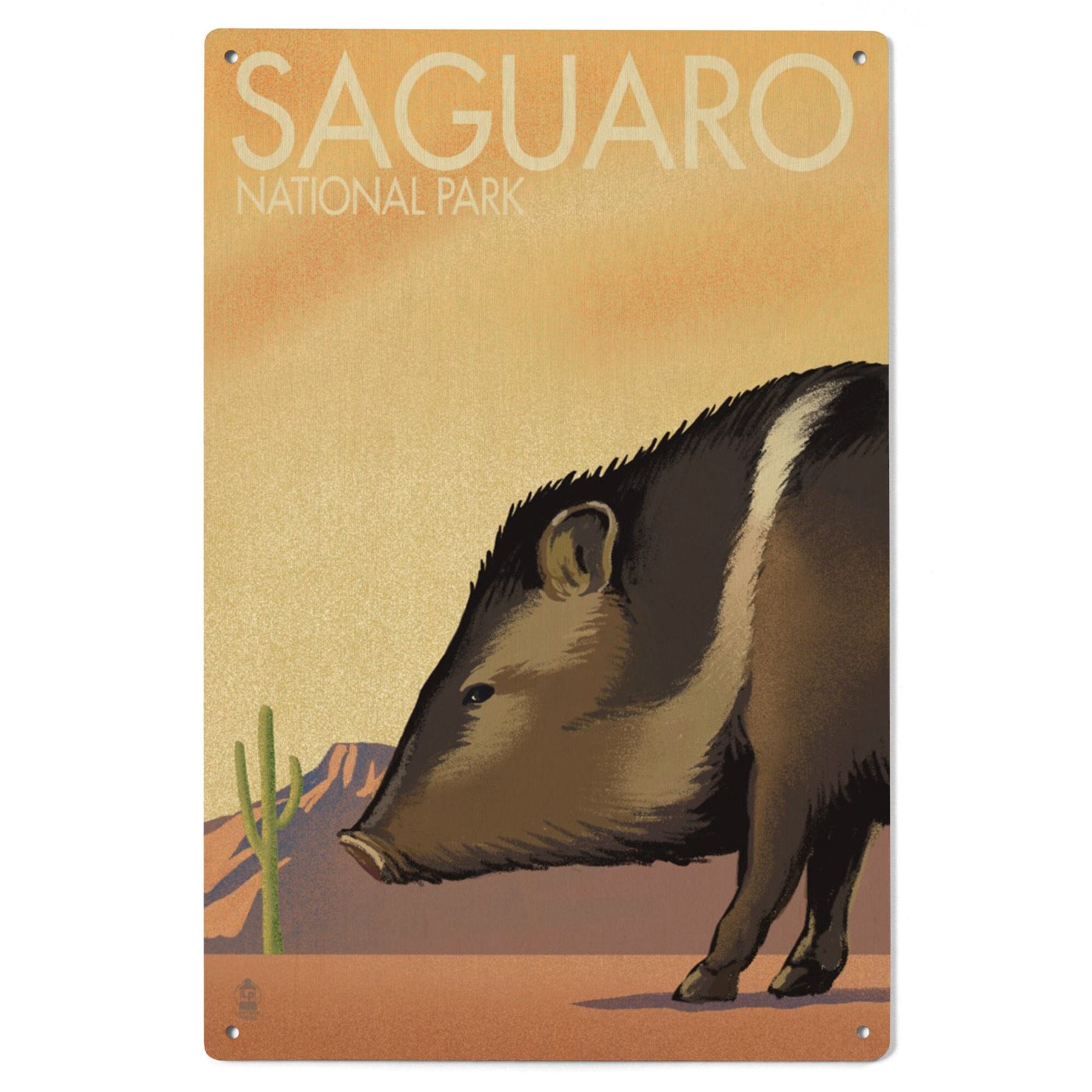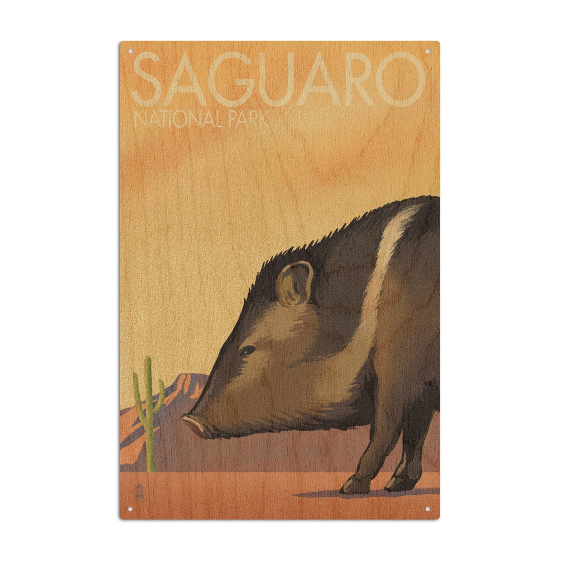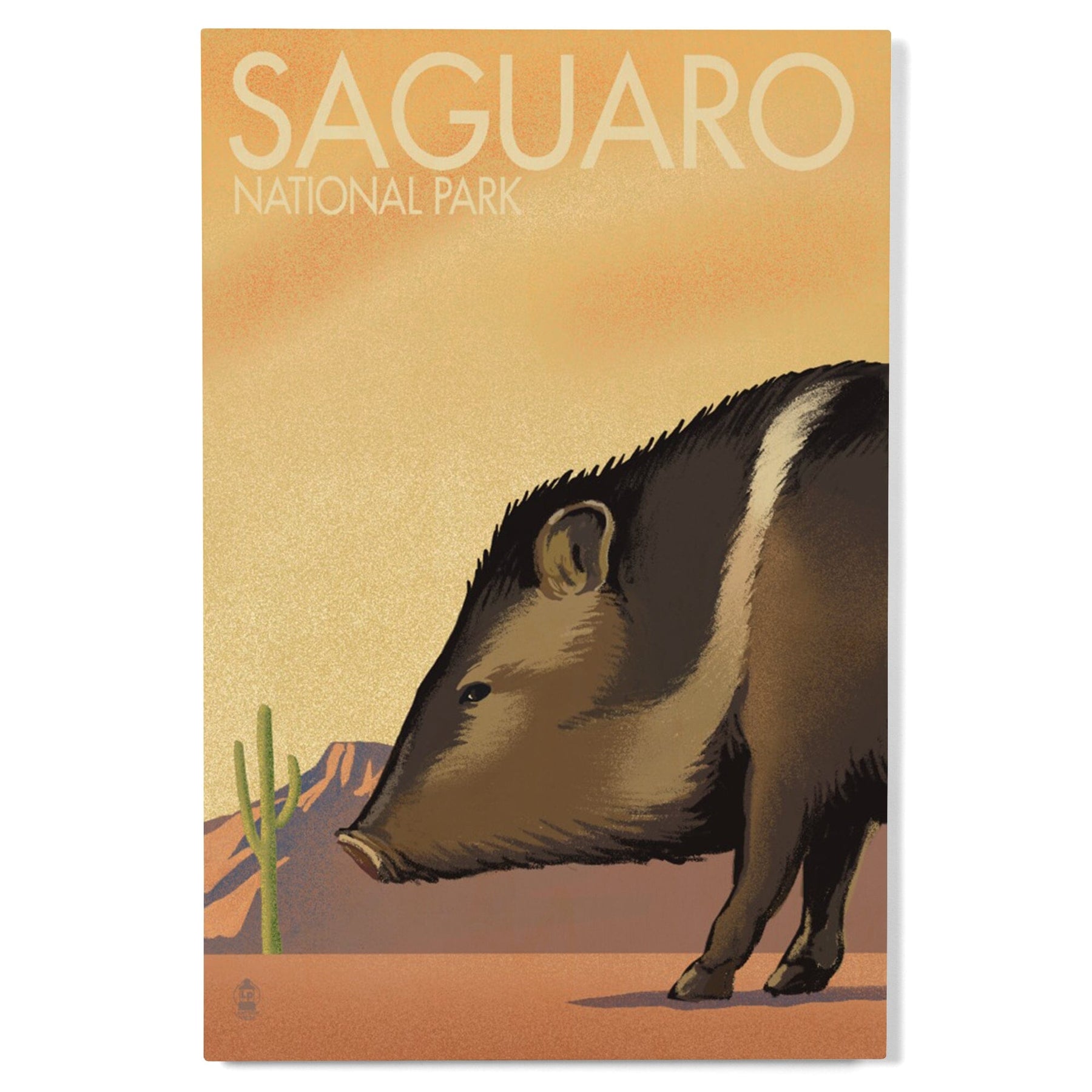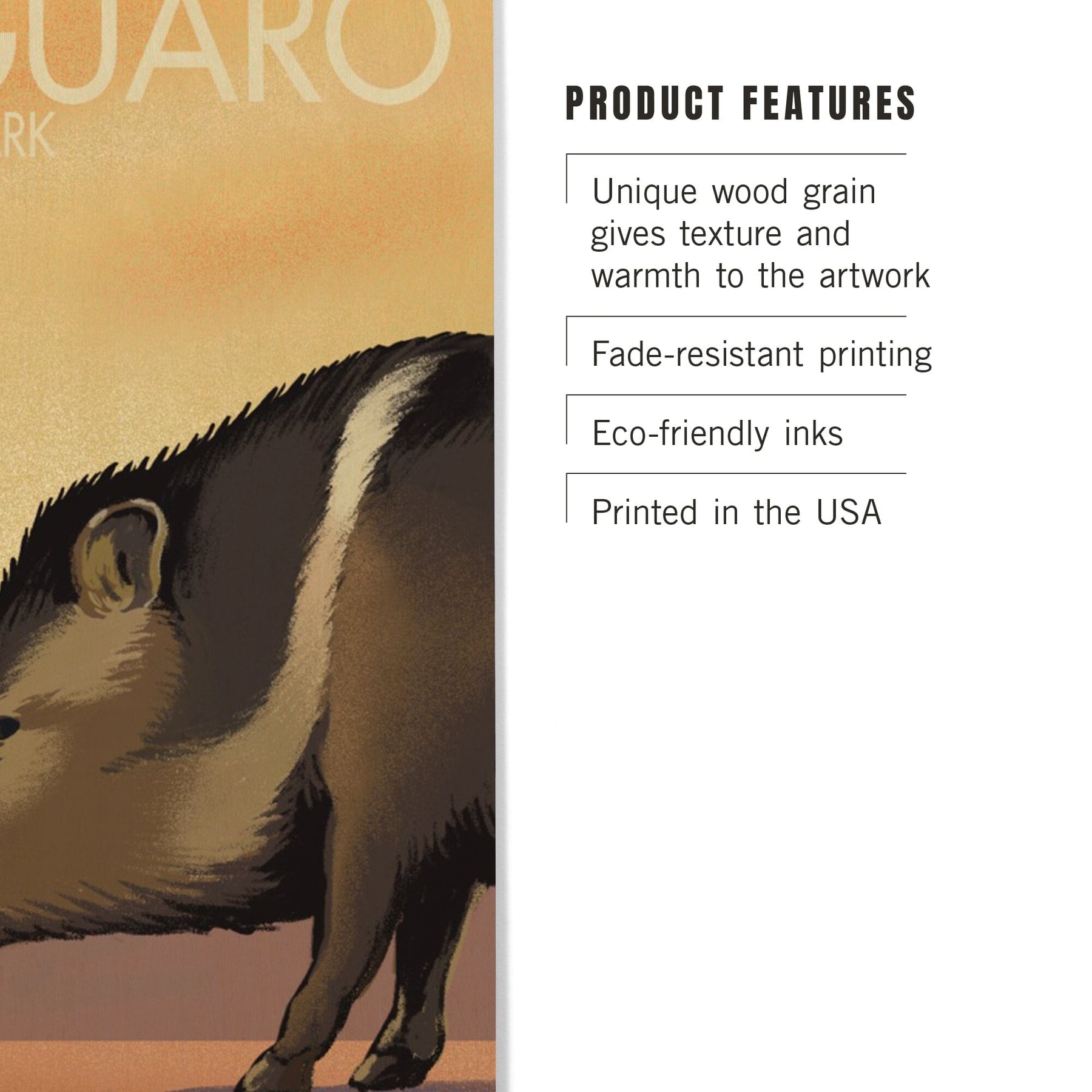 Saguaro National Park, Arizona, Javelina, Lithograph, Lantern Press Artwork, Wood Signs and Postcards Wood Lantern Press