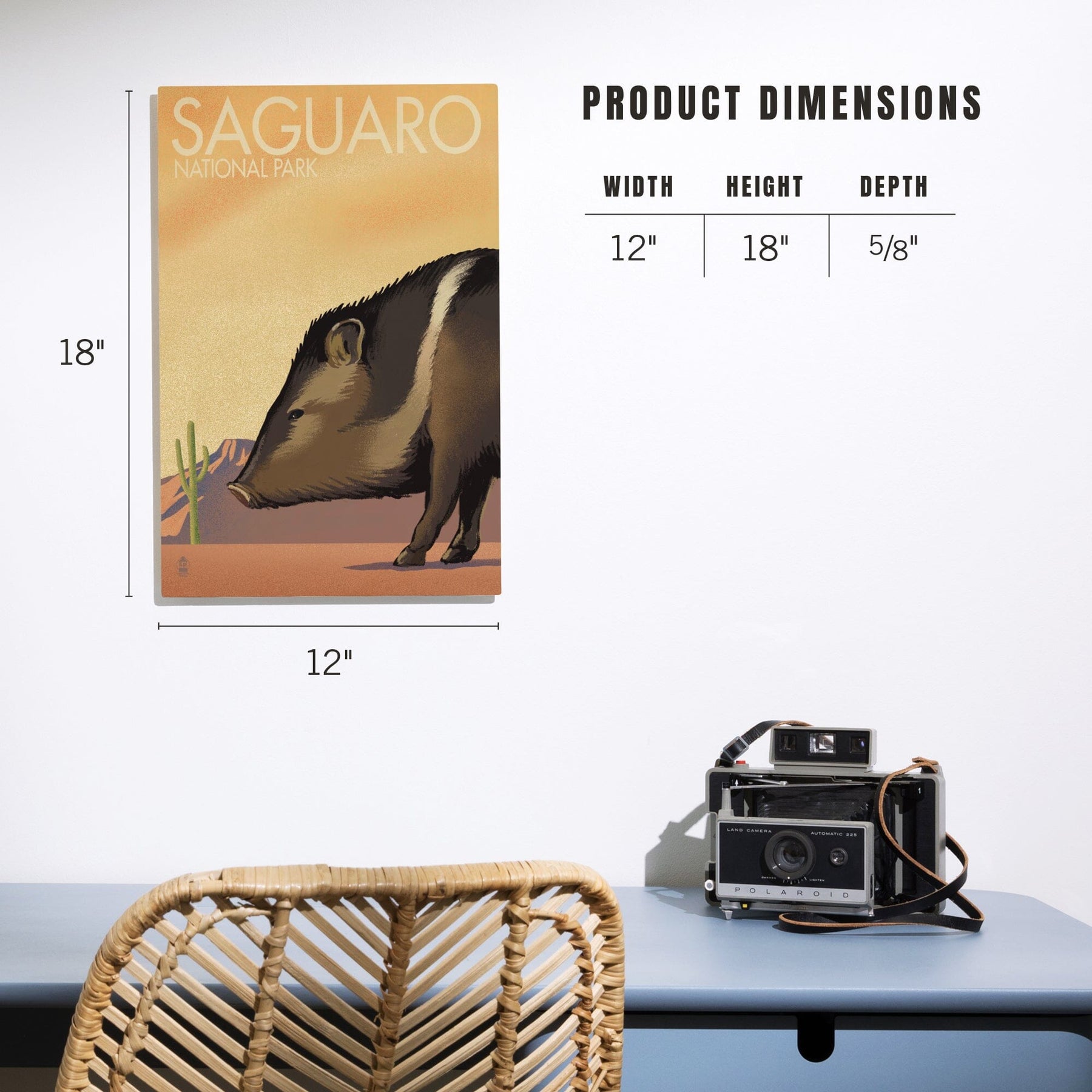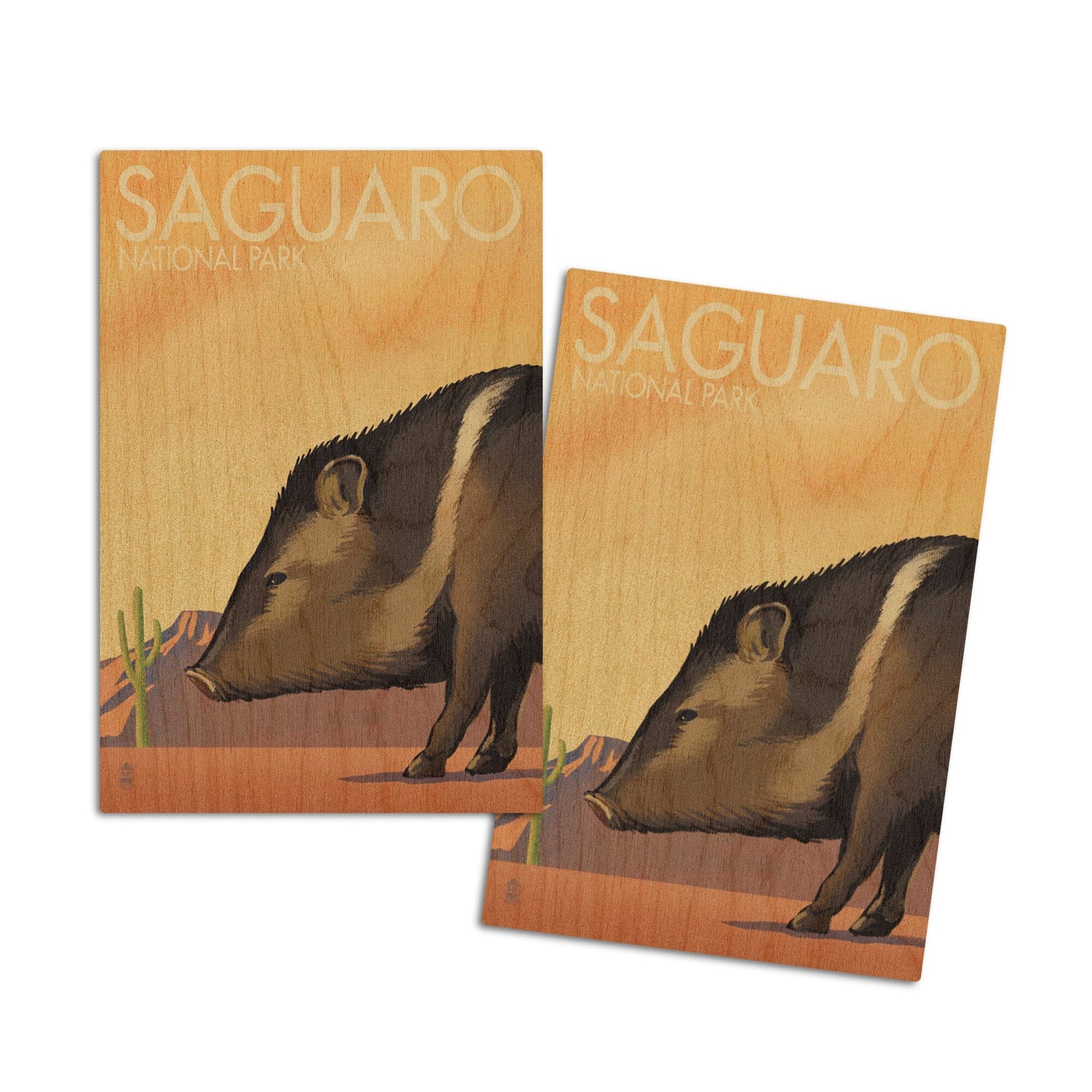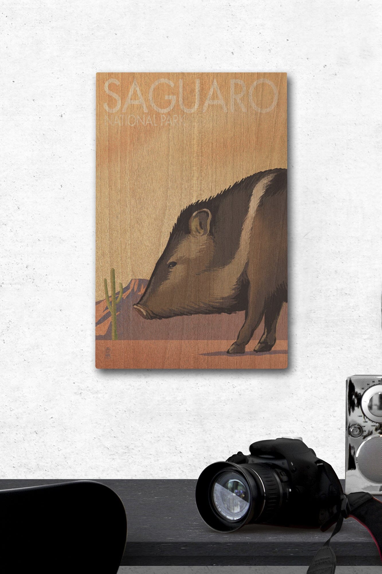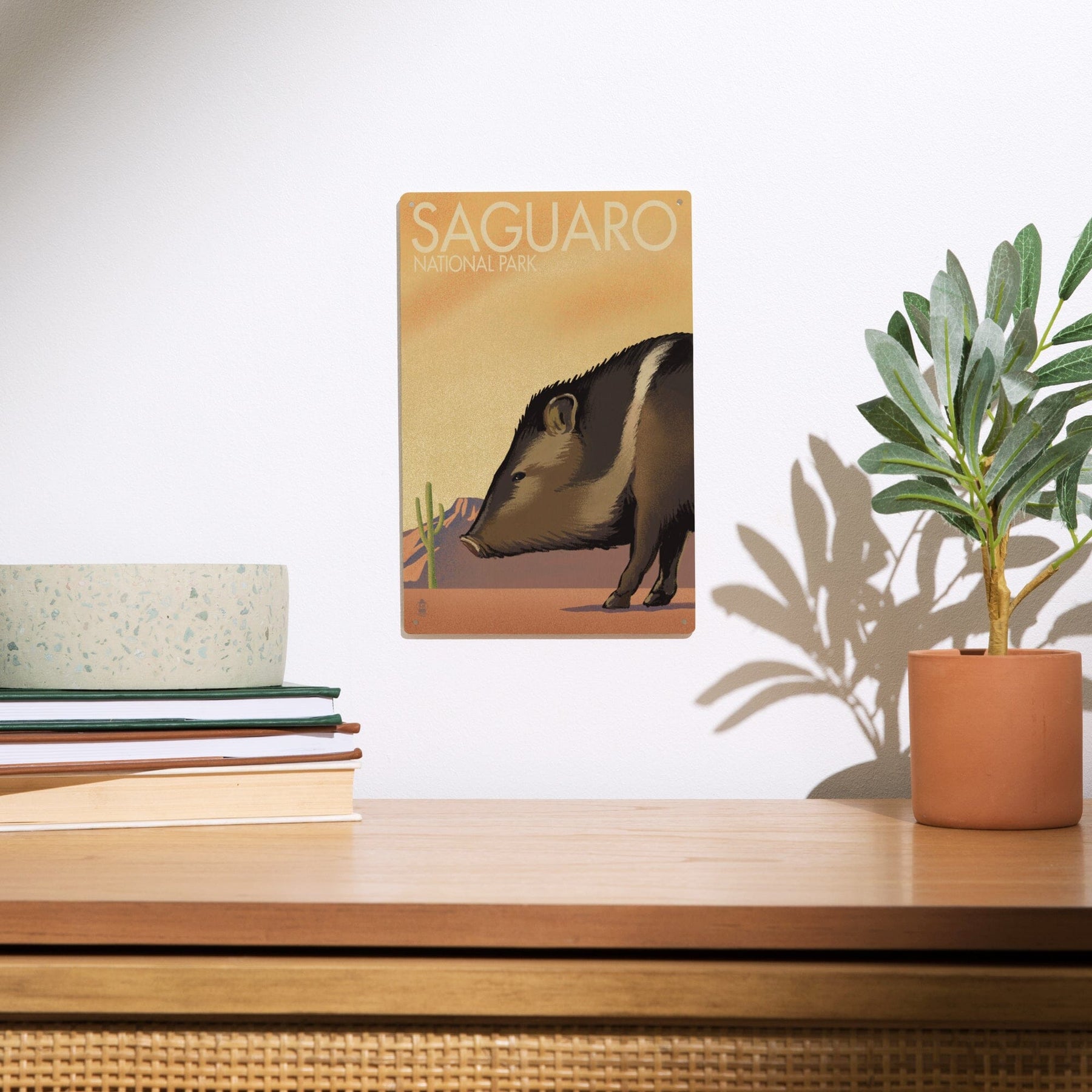 Saguaro National Park, Arizona, Javelina, Lithograph, Lantern Press Artwork, Wood Signs and Postcards Wood Lantern Press