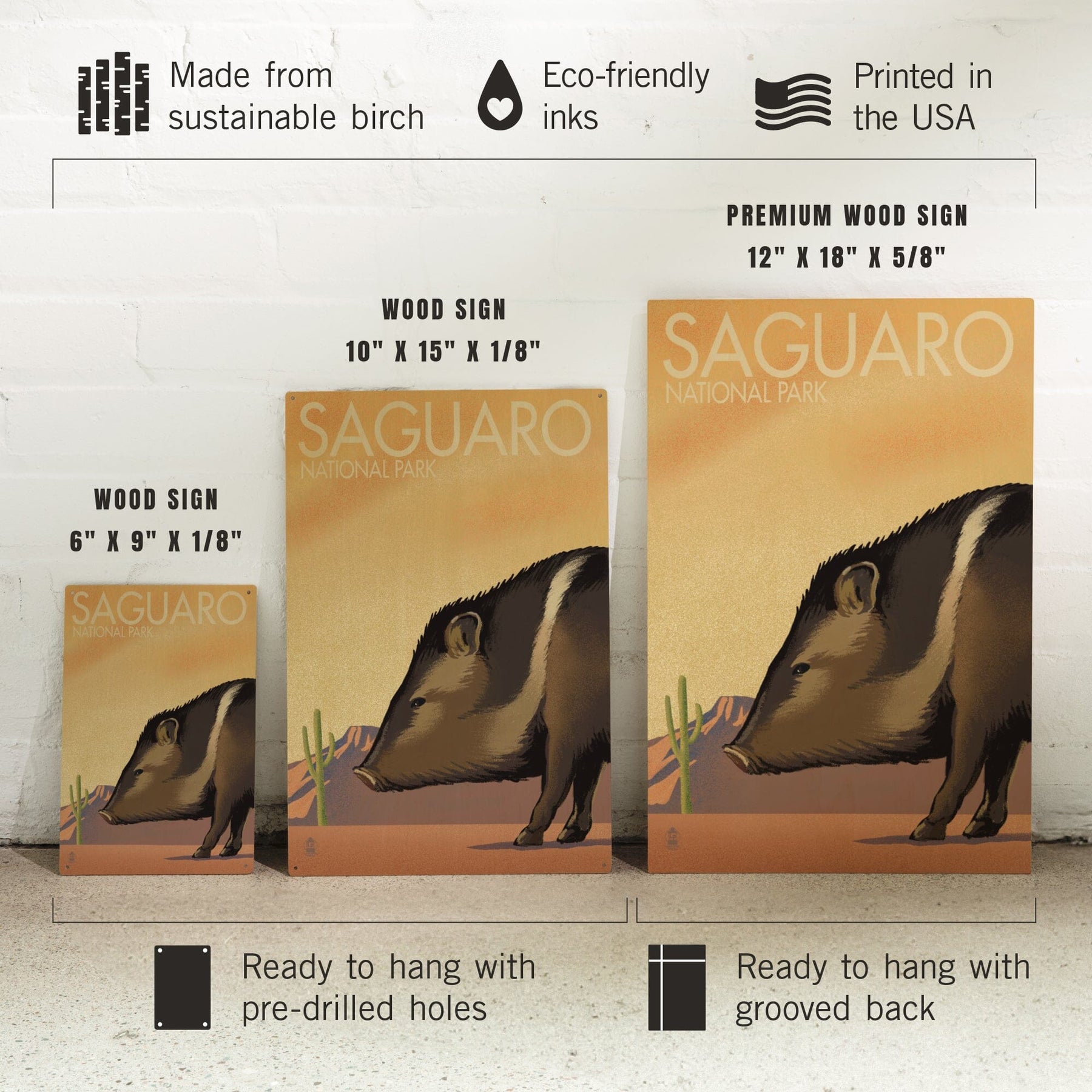 Saguaro National Park, Arizona, Javelina, Lithograph, Lantern Press Artwork, Wood Signs and Postcards