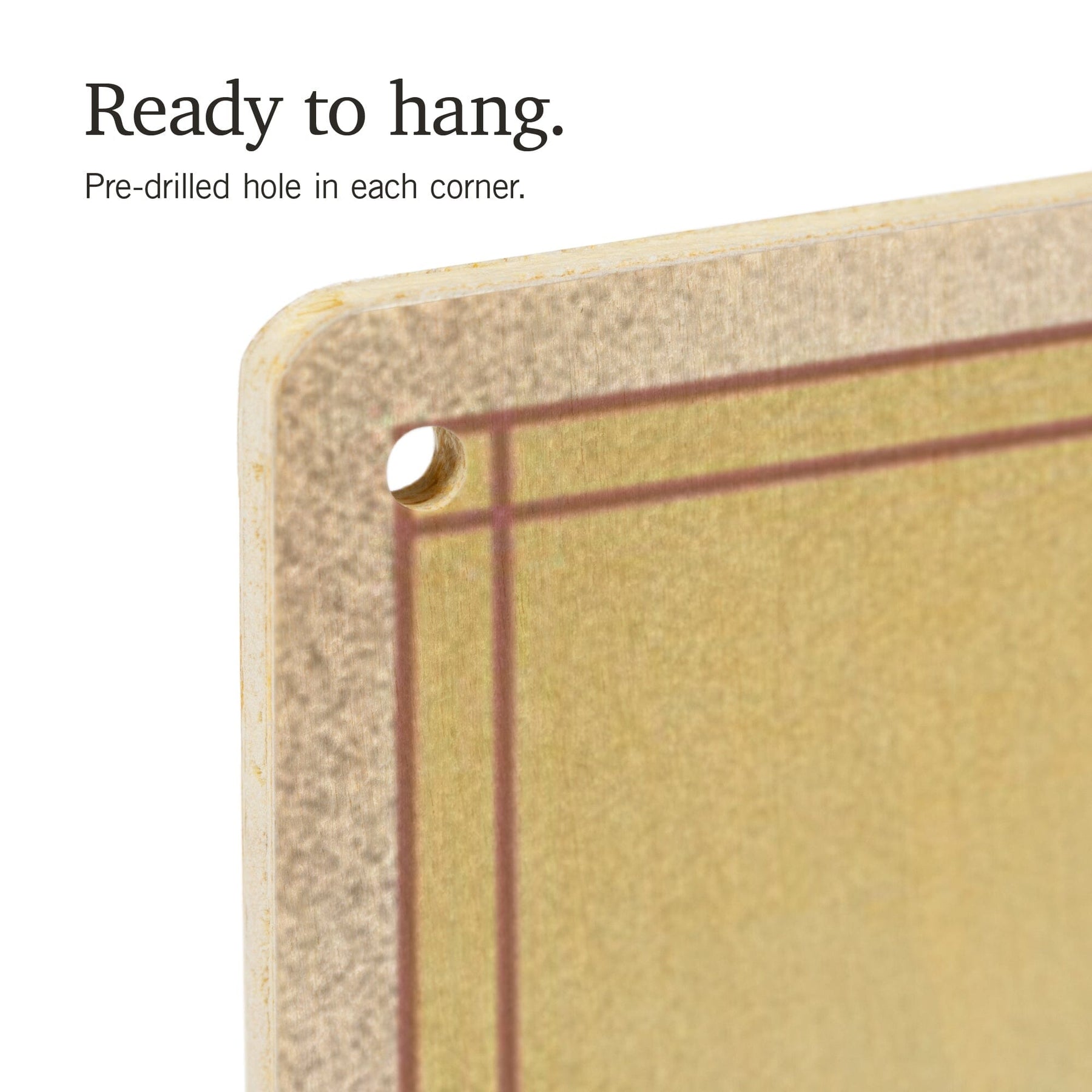 • Hole in each corner, ready to hang