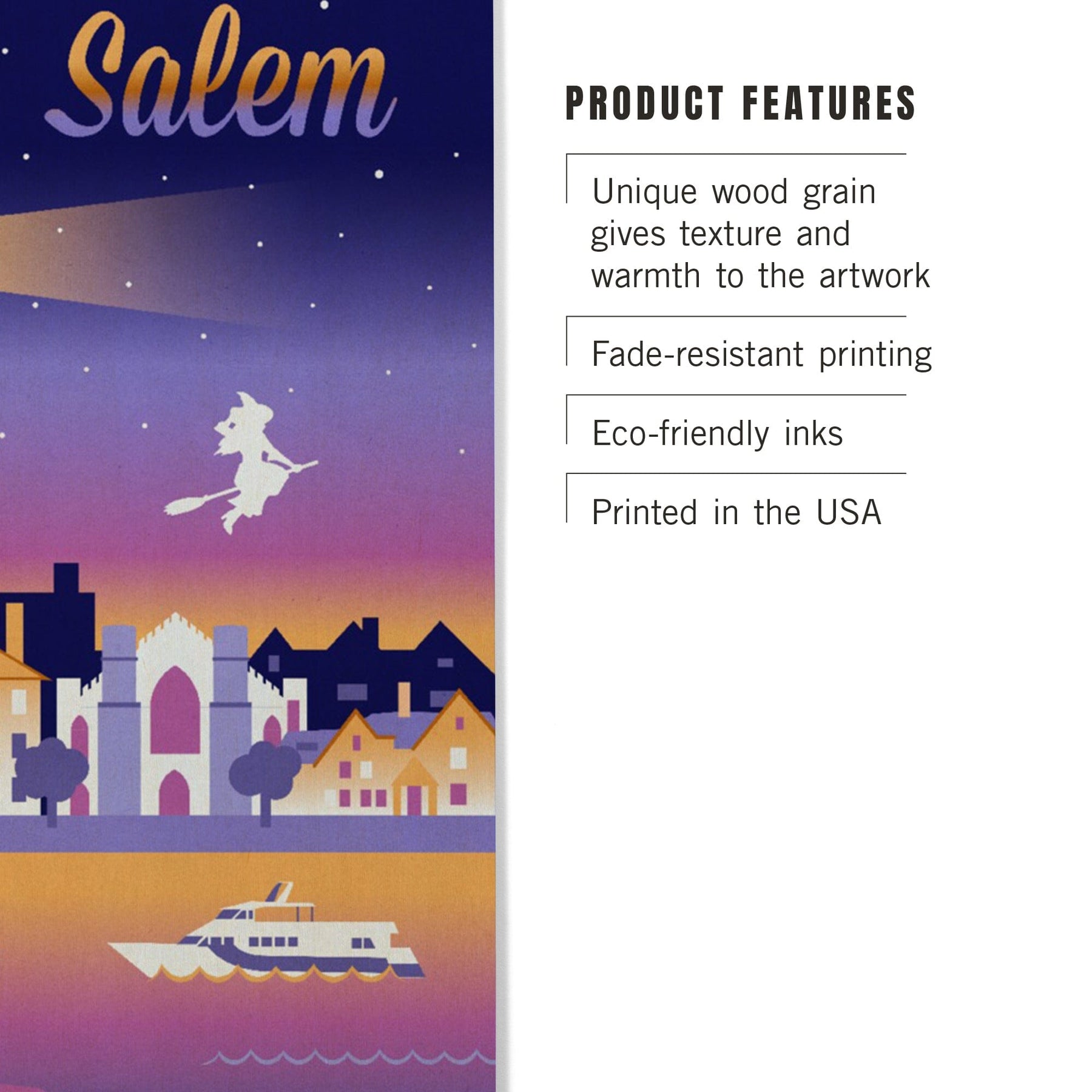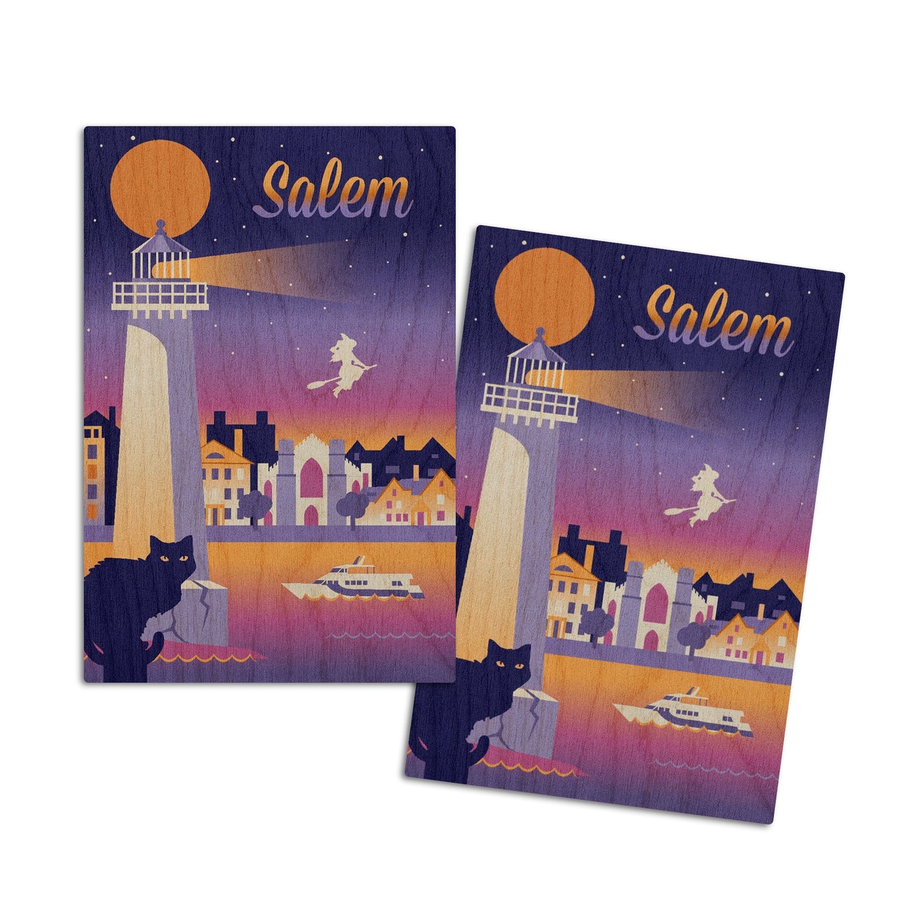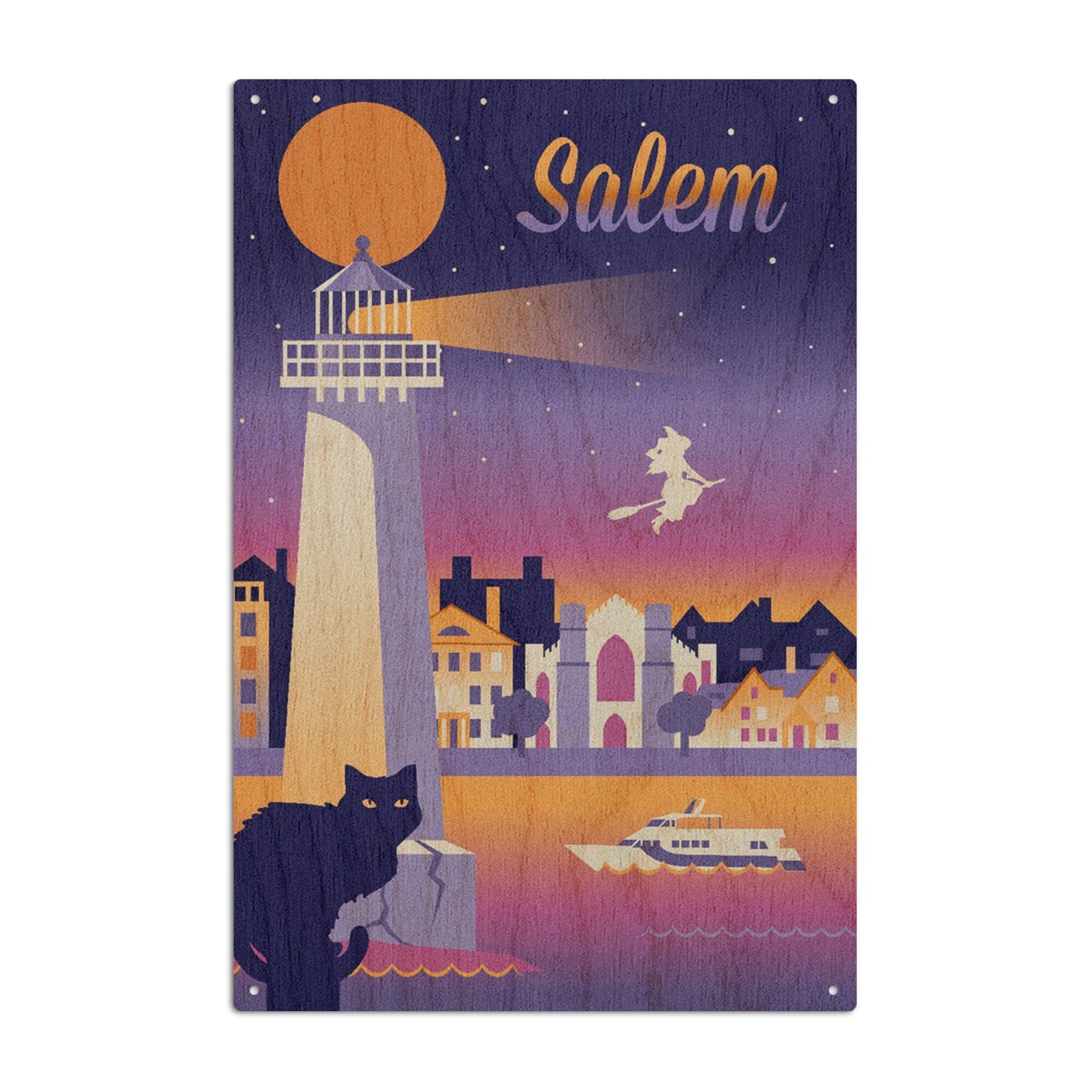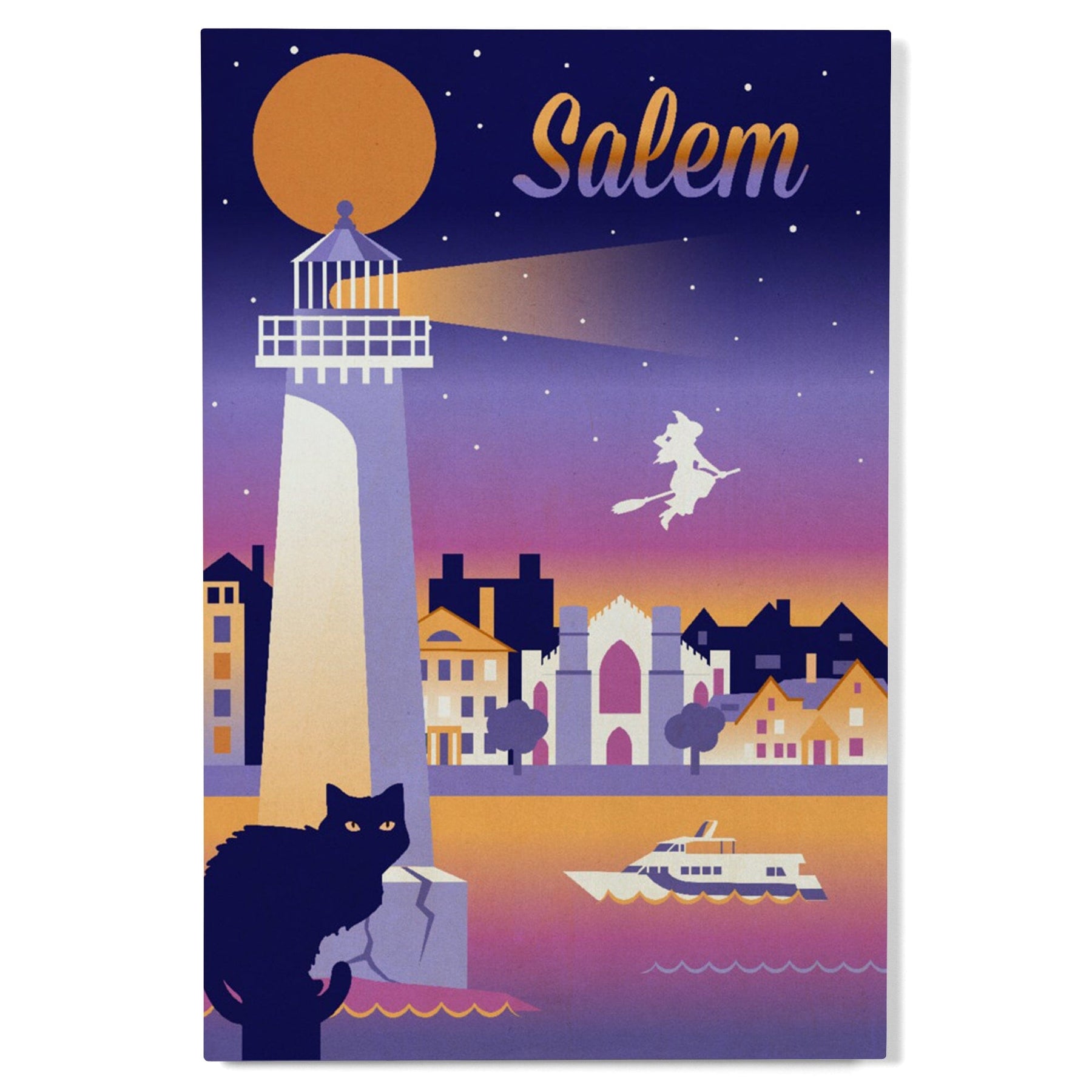 Salem, Massachusetts, Retro Skyline Chromatic Series, Lantern Press Artwork, Wood Signs and Postcards