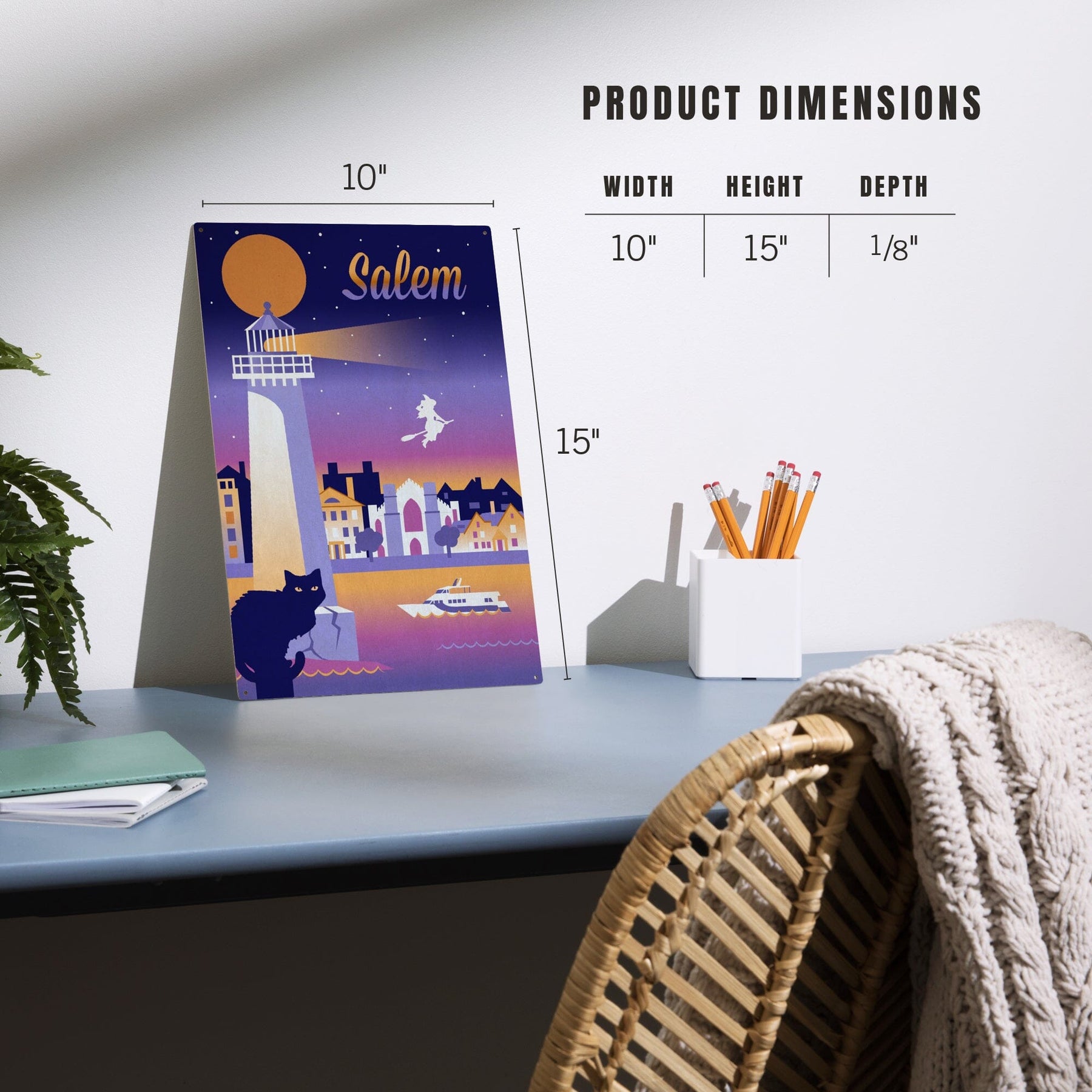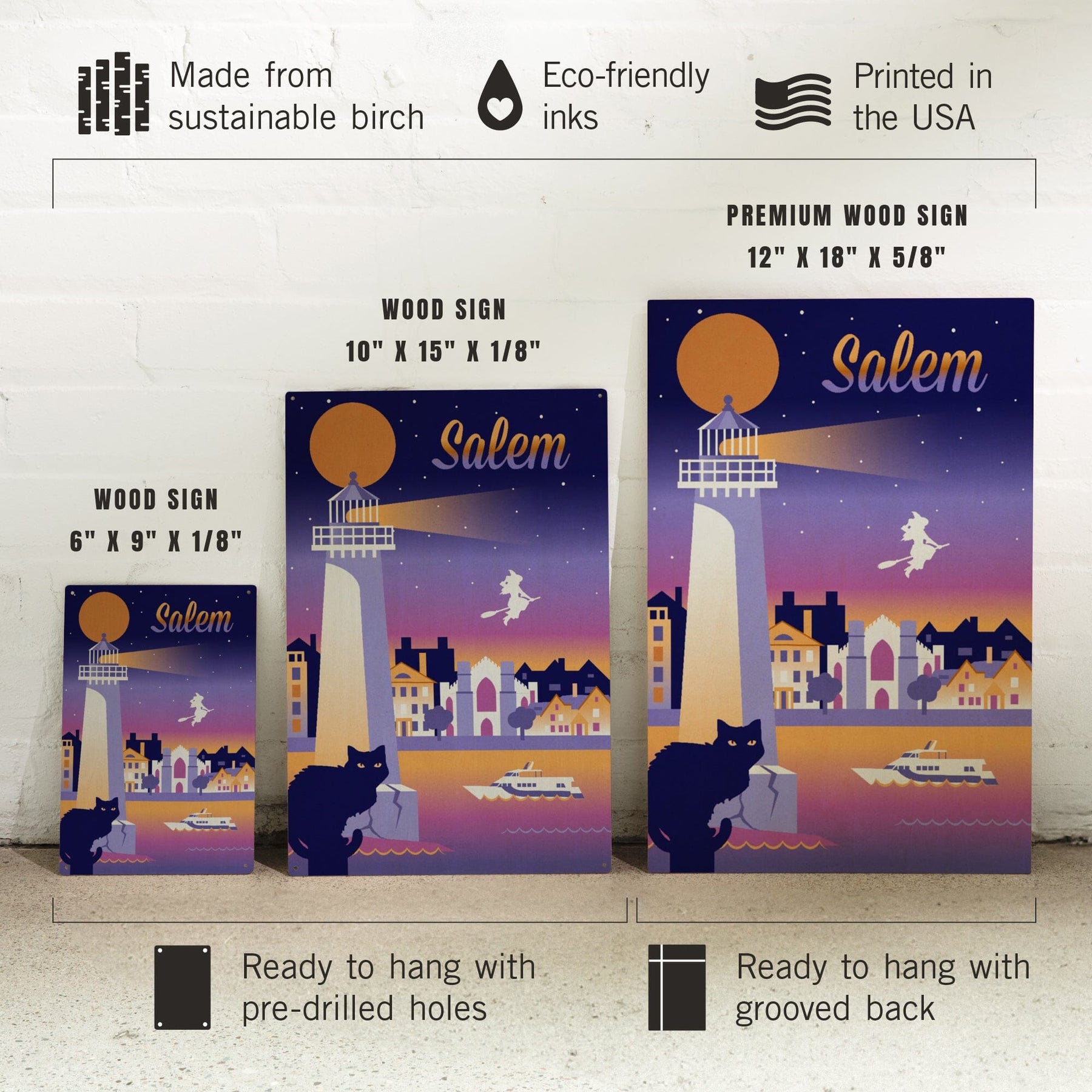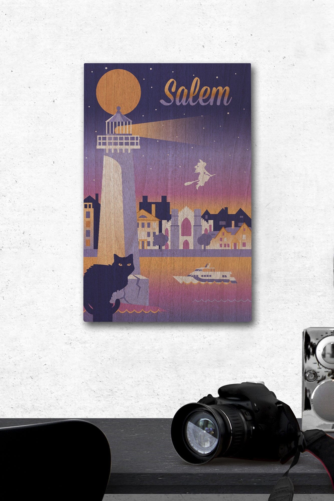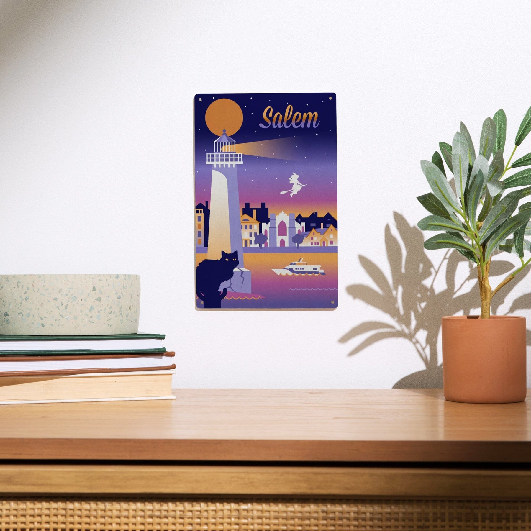 Salem, Massachusetts, Retro Skyline Chromatic Series, Lantern Press Artwork, Wood Signs and Postcards