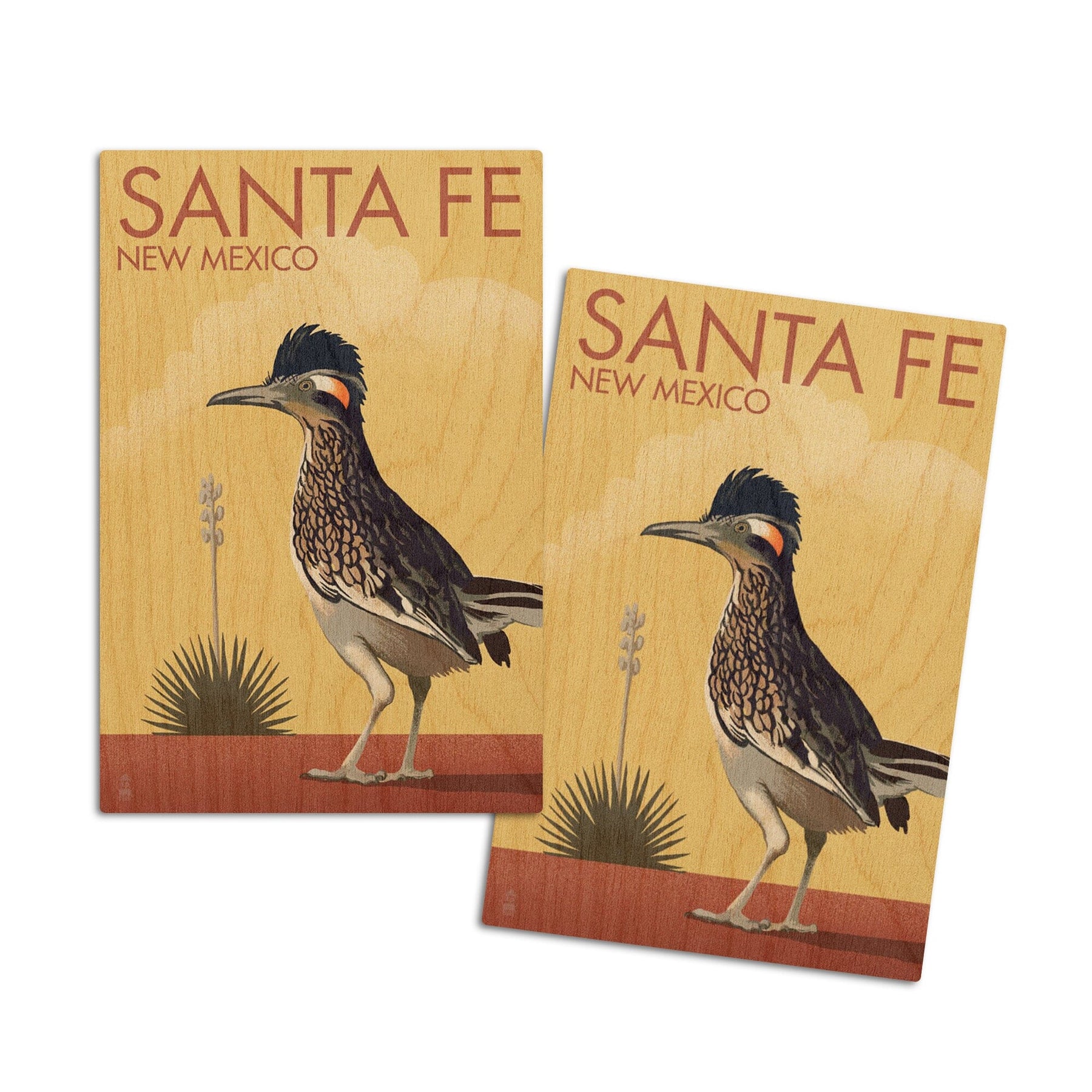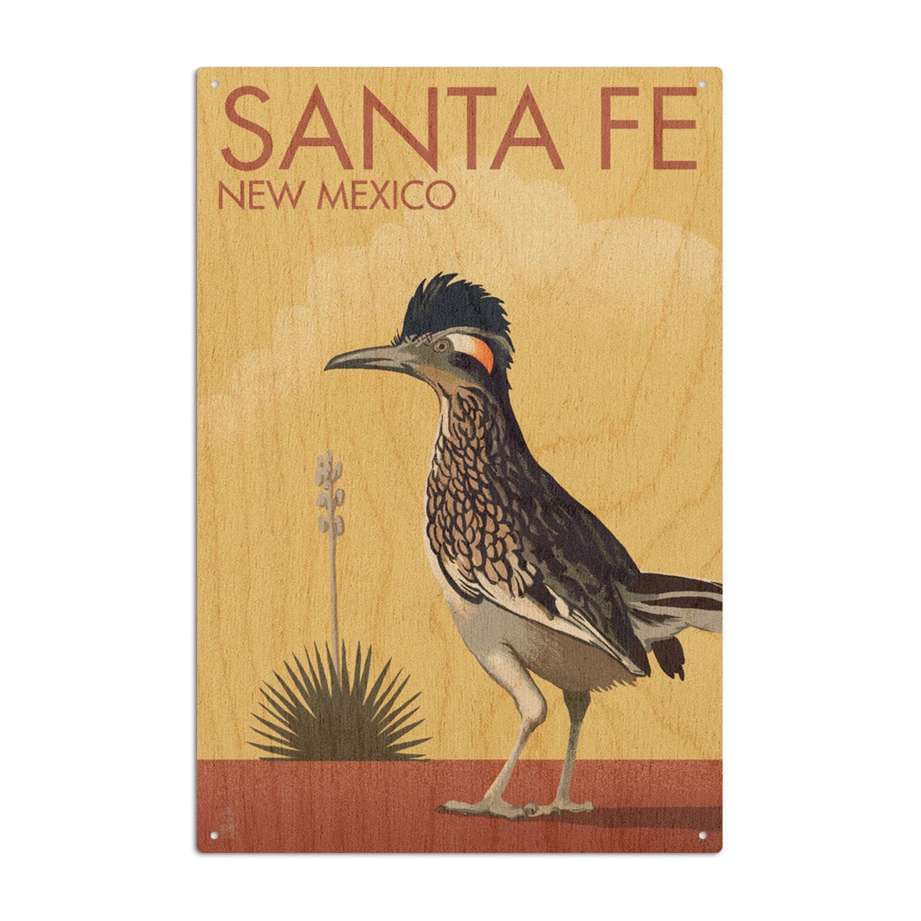 Santa Fe, New Mexico, Roadrunner, Lithograph, Lantern Press Artwork, Wood Signs and Postcards Wood Lantern Press