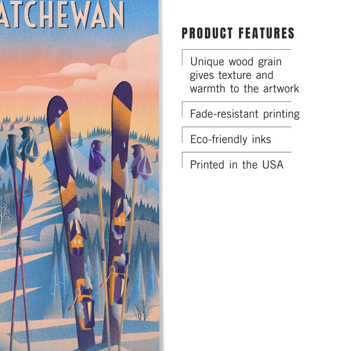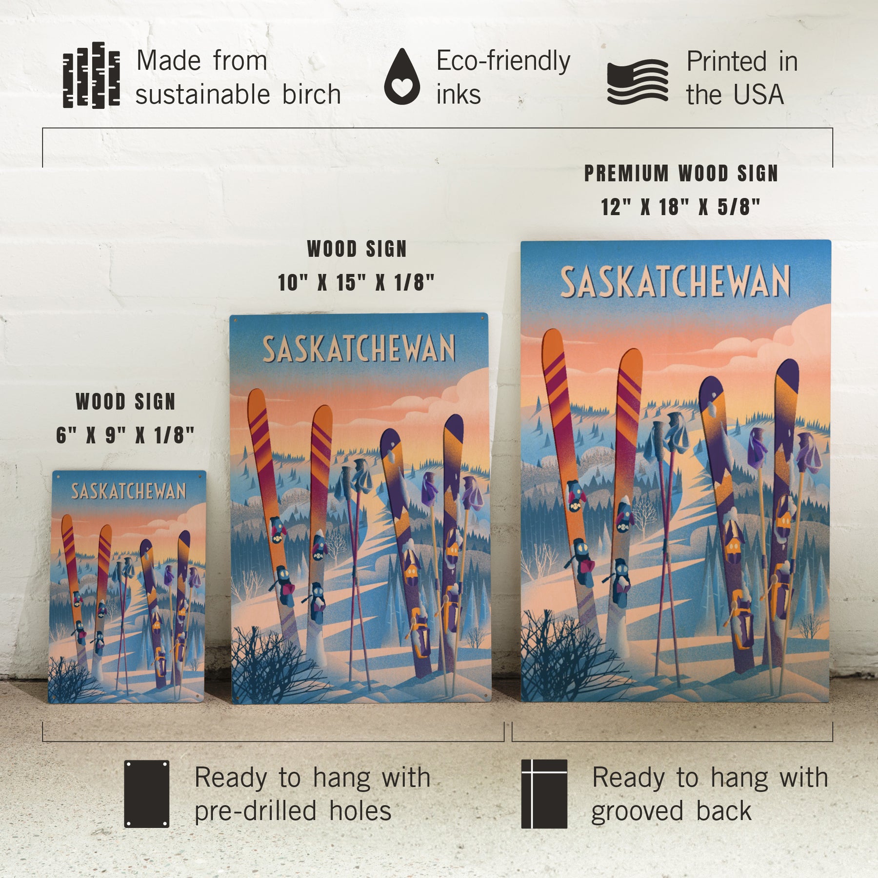 Saskatchewan, Prepare for Takeoff, Skis in Snowbank, Wood Signs and Postcards Wood Lantern Press