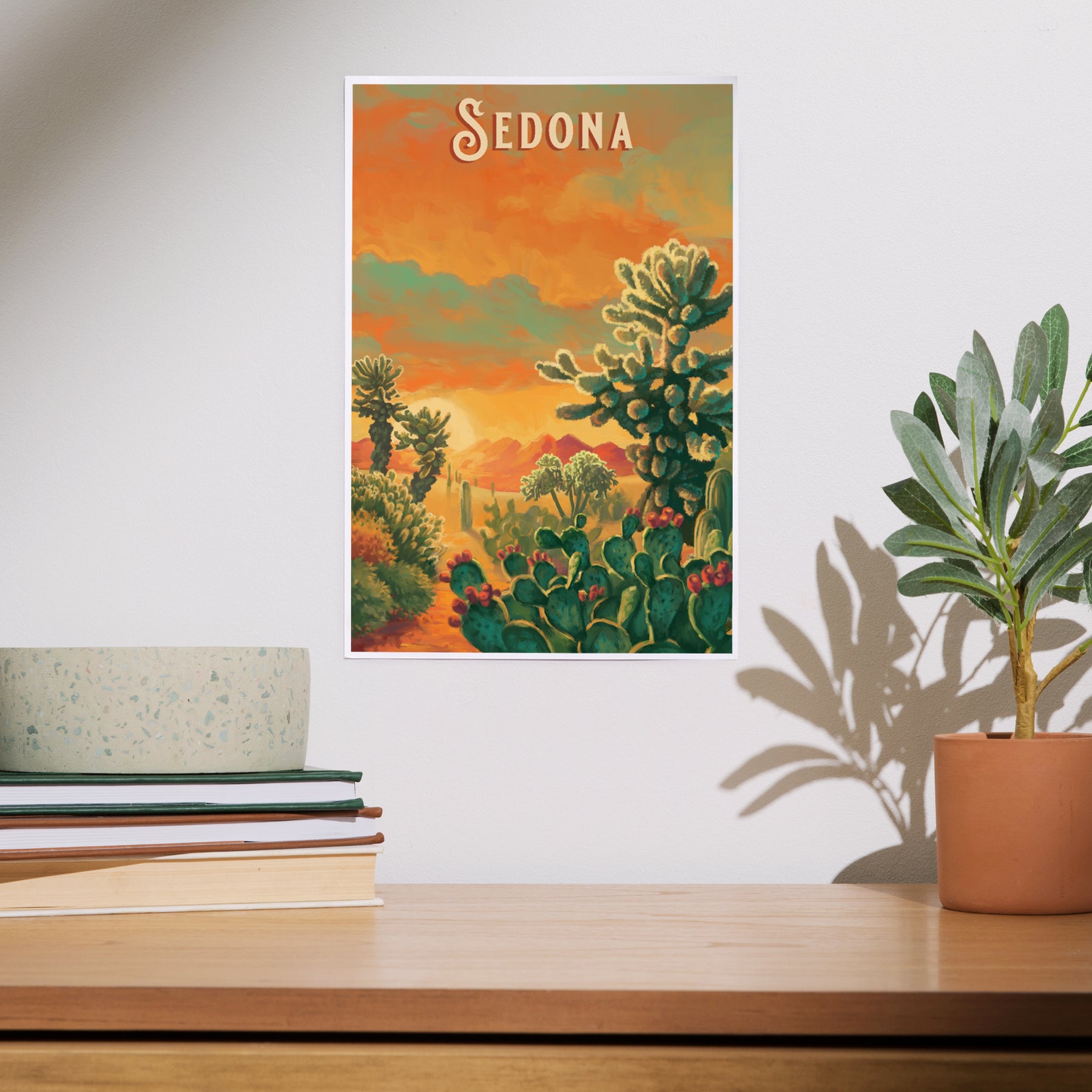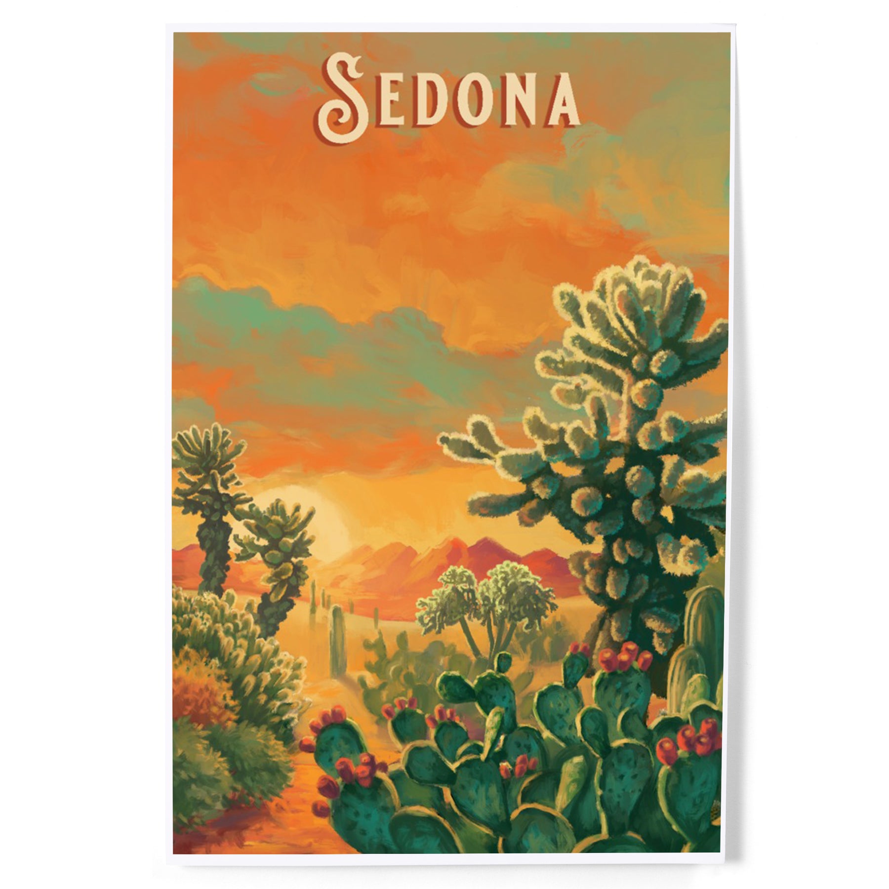 Sedona, Arizona, Oil Painting, Cholla Cactus, Art & Giclee Prints Art Lantern Press