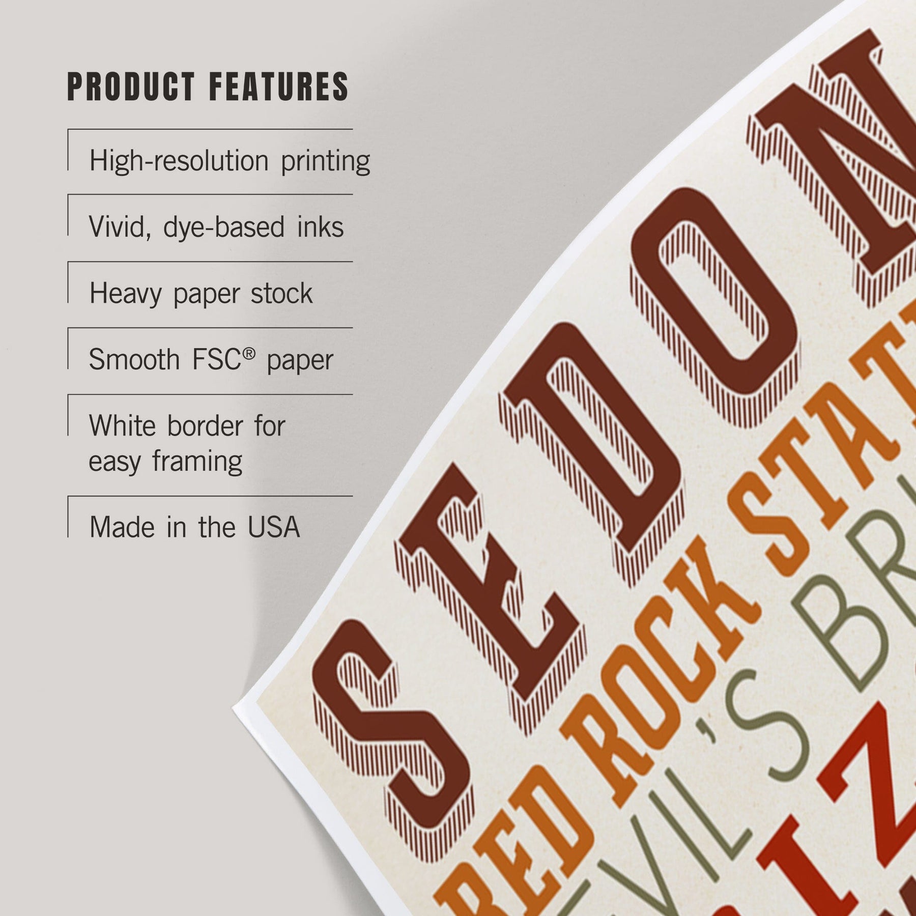 Sedona, Arizona, Typography, Art & Giclee Prints Art Lantern Press