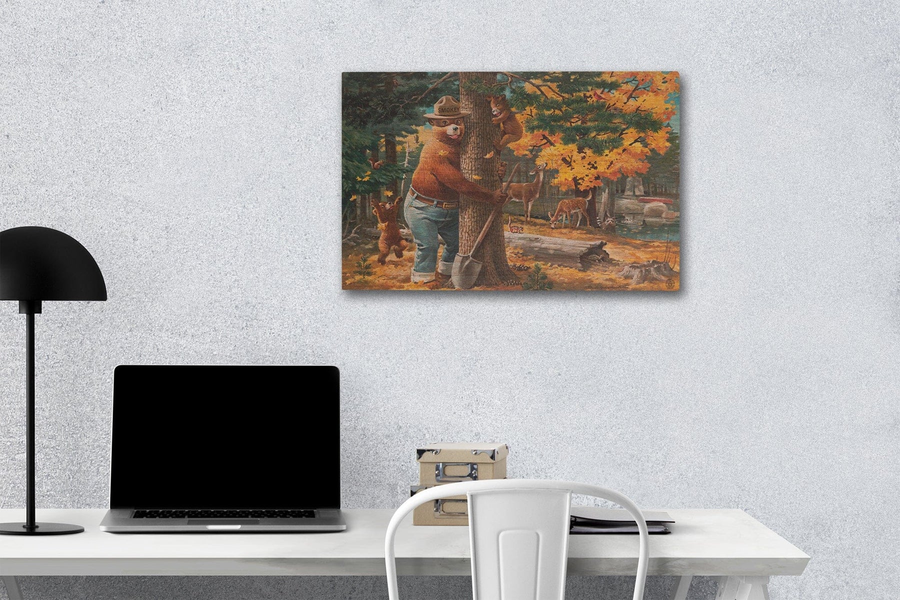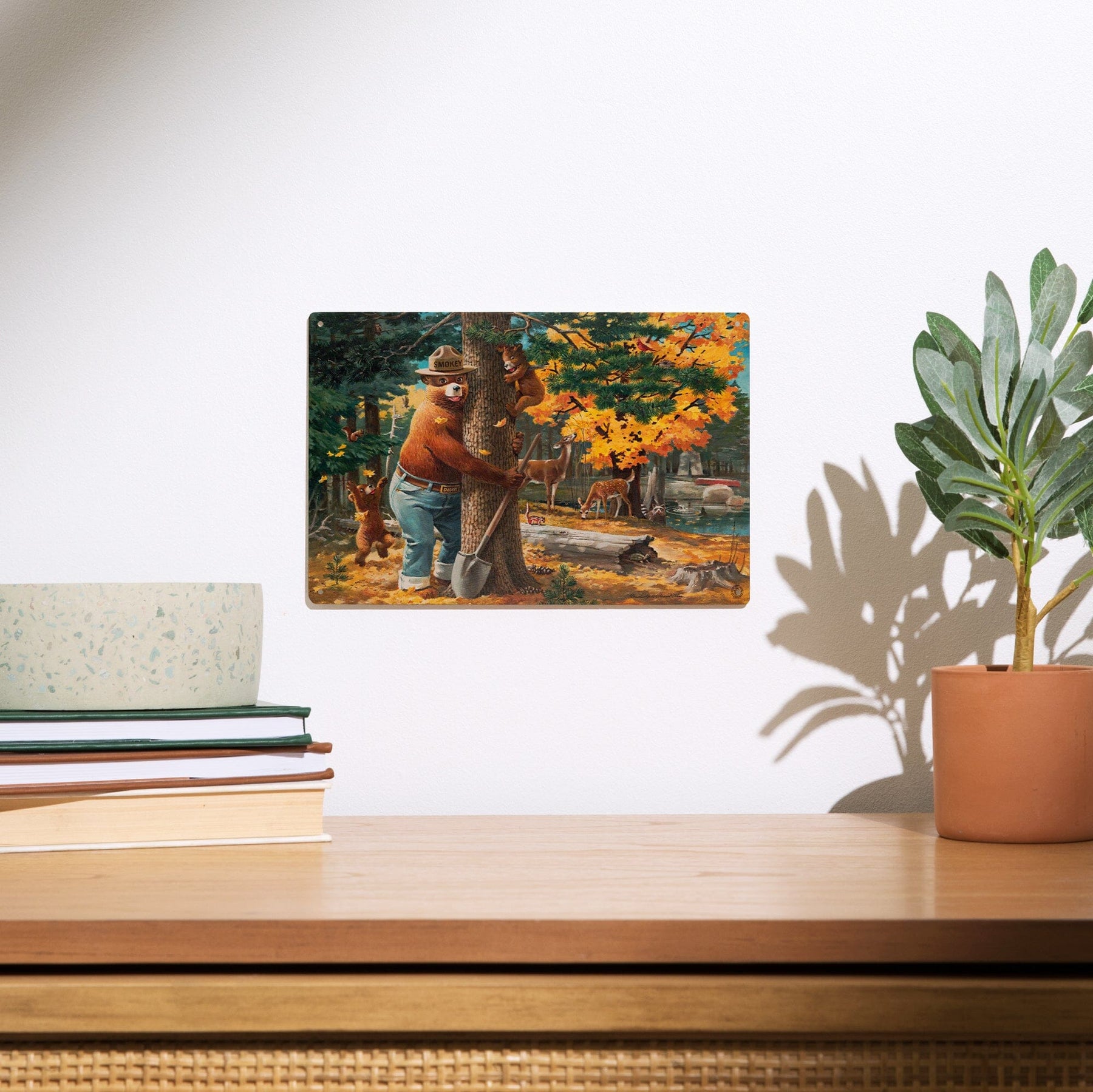 Smokey Bear Hugging Tree, Lantern Press Artwork, Wood Signs and Postcards