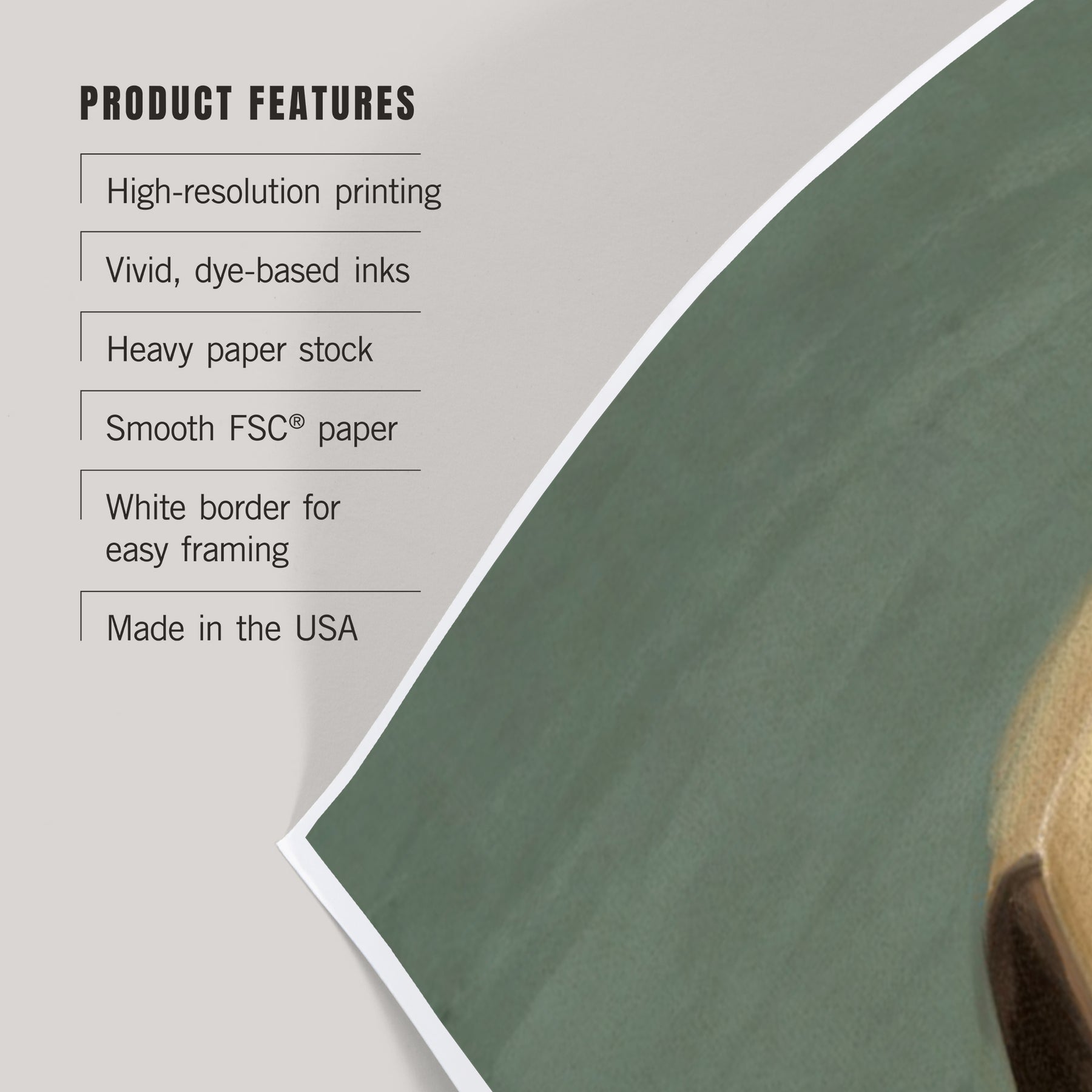 • 11x14 Matted Print: Image size measures 7.5 by 10.5 inches with an added 3.5 inch beveled edge mat board. Total size of art print measures 11 by 14 inches