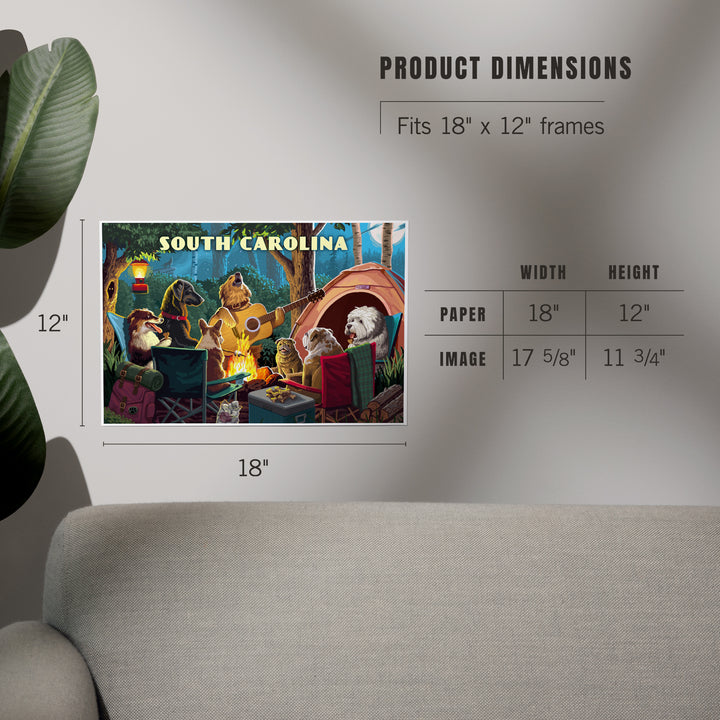 South Carolina, Painterly, Pack Life, Dogs Around Campfire, Art & Giclee Prints Art Lantern Press