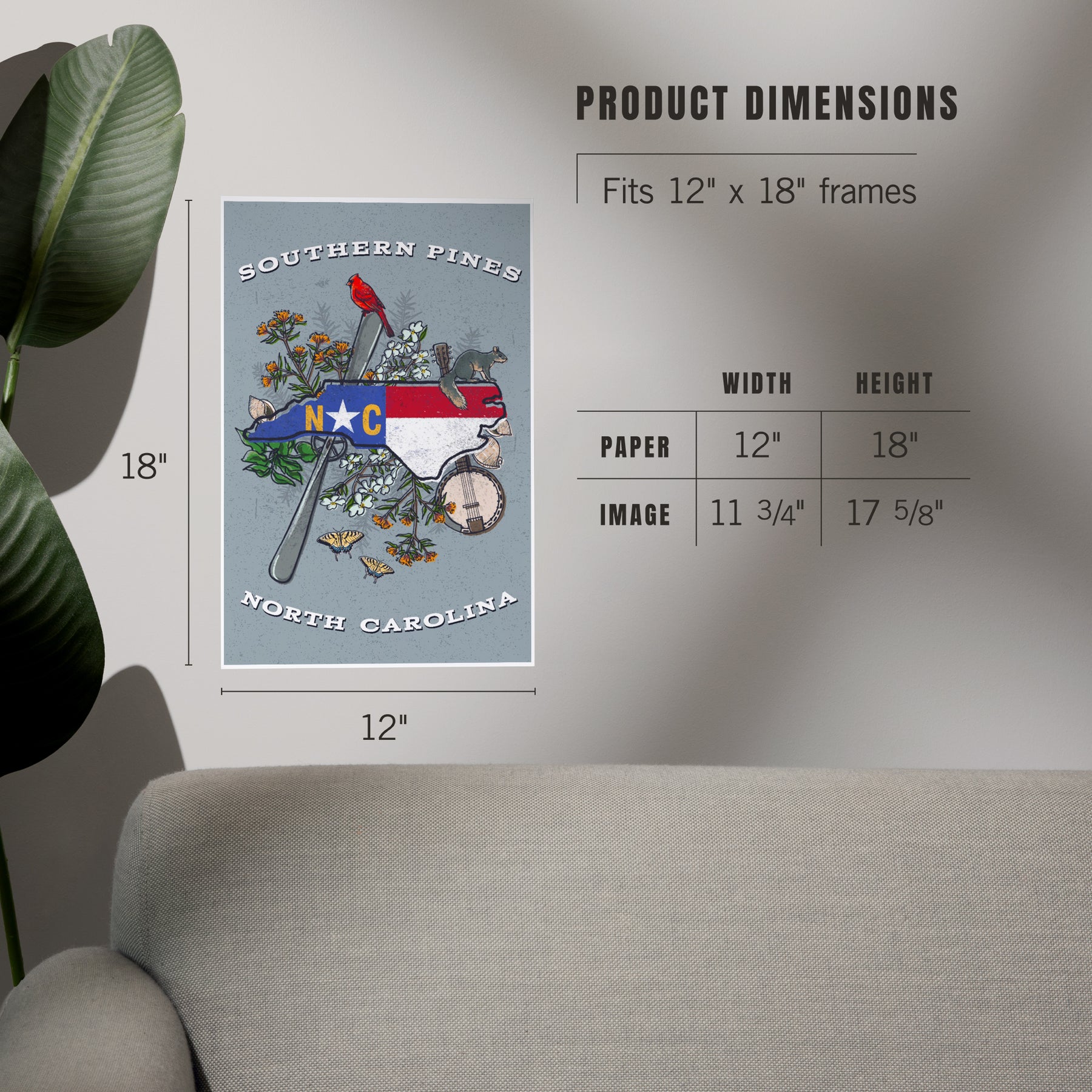 Southern Pines, North Carolina, State Treasure Trove, Art & Giclee Prints Art Lantern Press