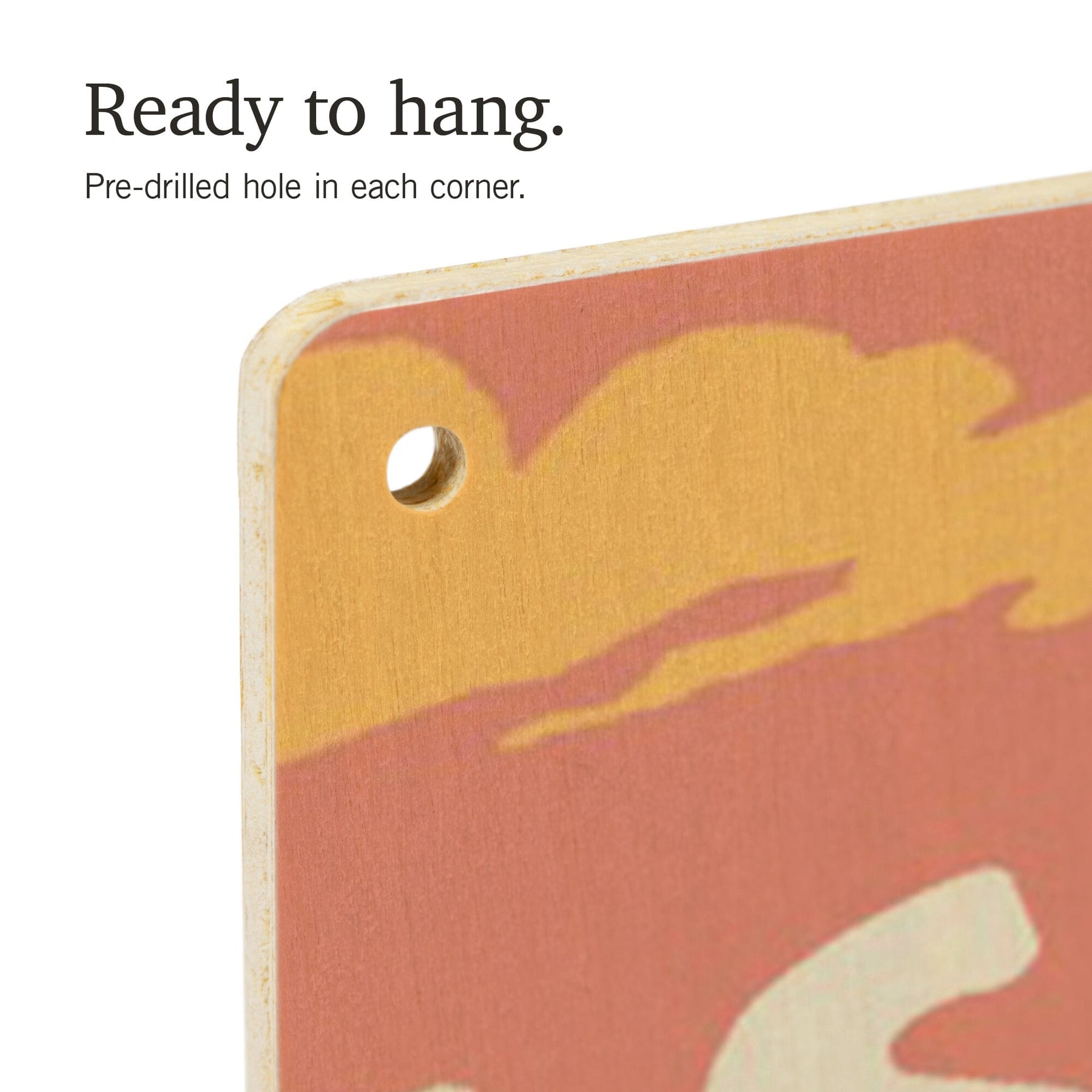 • Hole in each corner, ready to hang