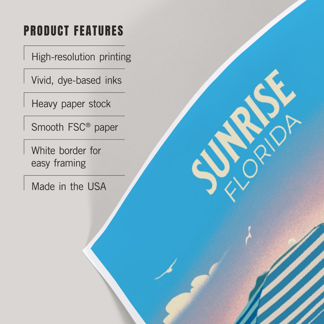 Sunrise, Florida, Lithograph, Beach Umbrella and Chair, Art & Giclee Prints Art Lantern Press