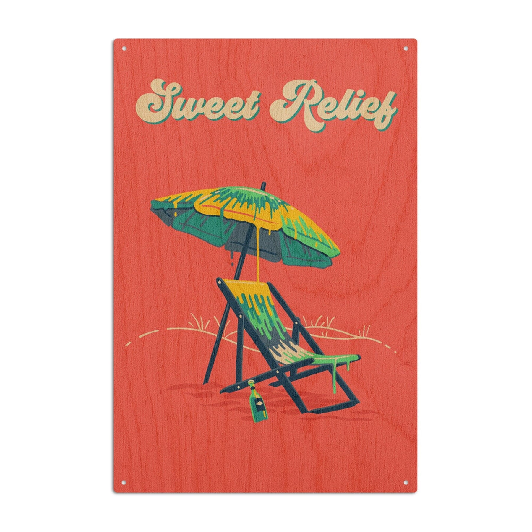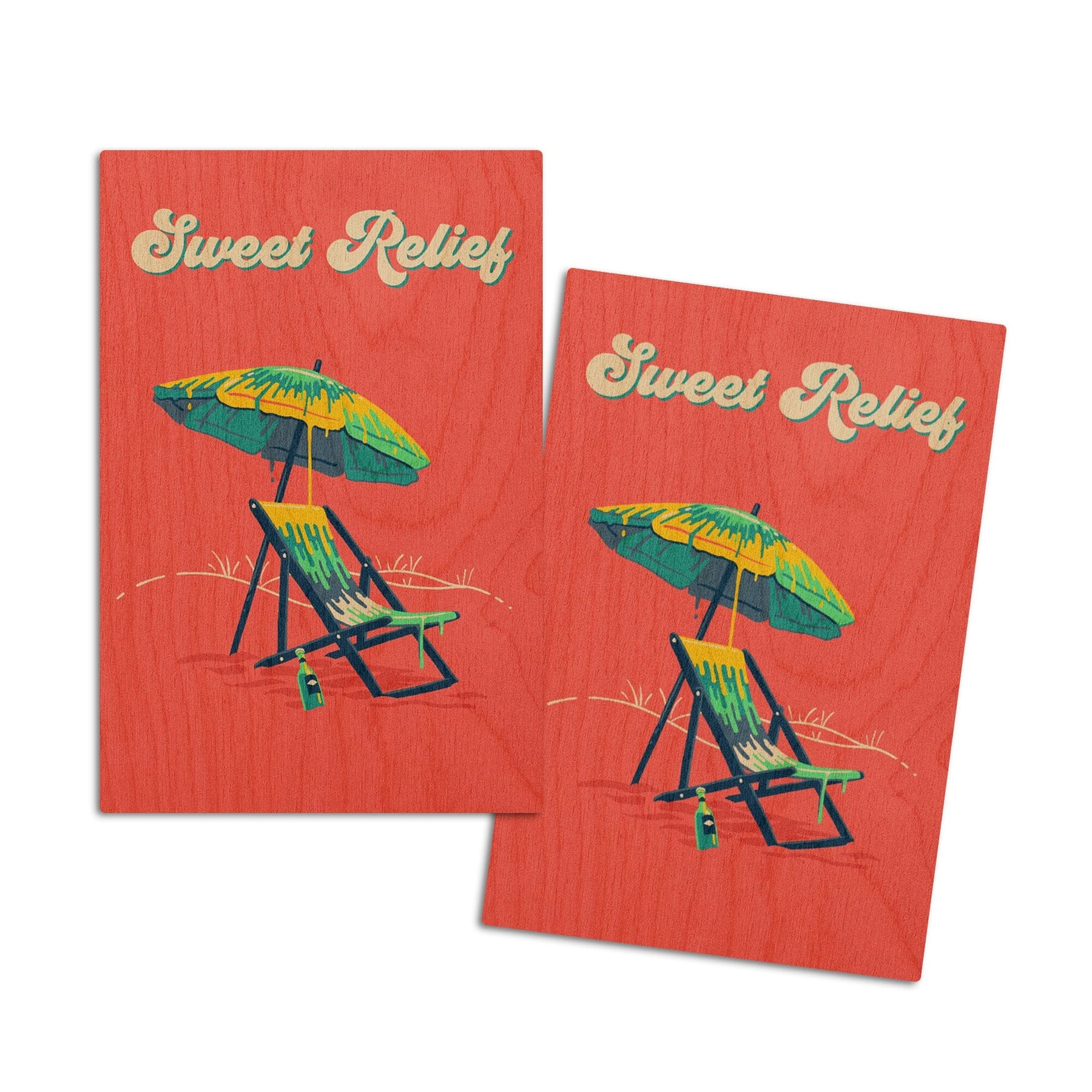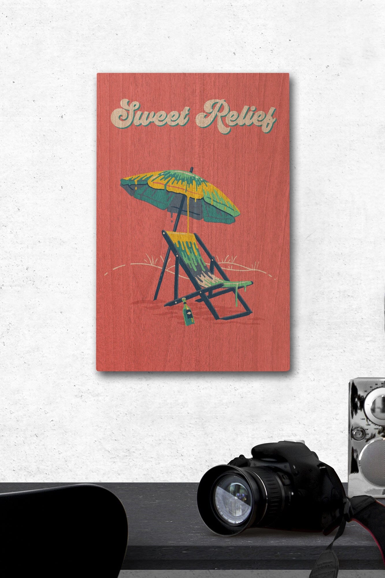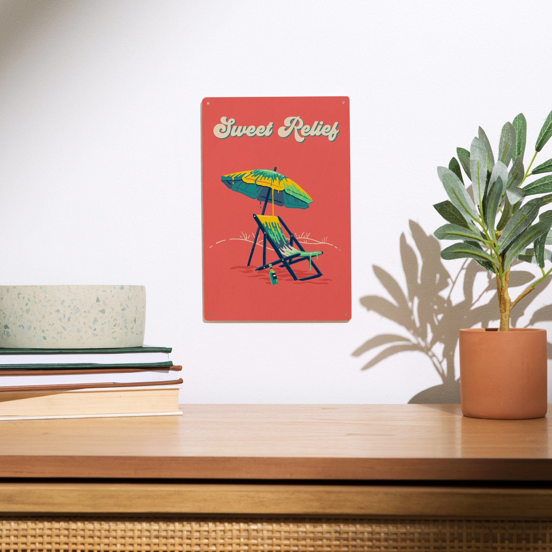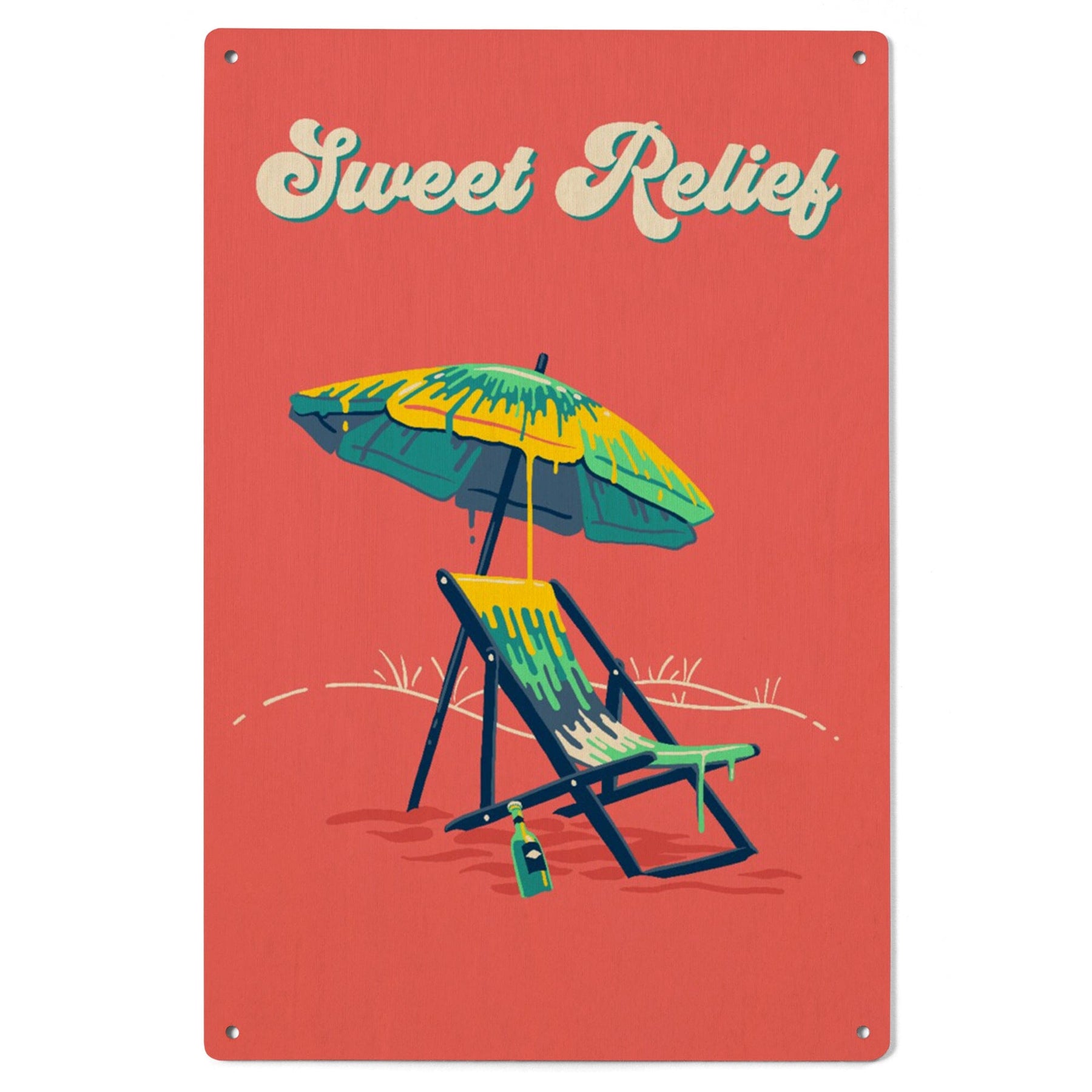 Sweet Relief Collection, Beach Chair and Umbrella, Sweet Relief, Wood Signs and Postcards Wood Lantern Press