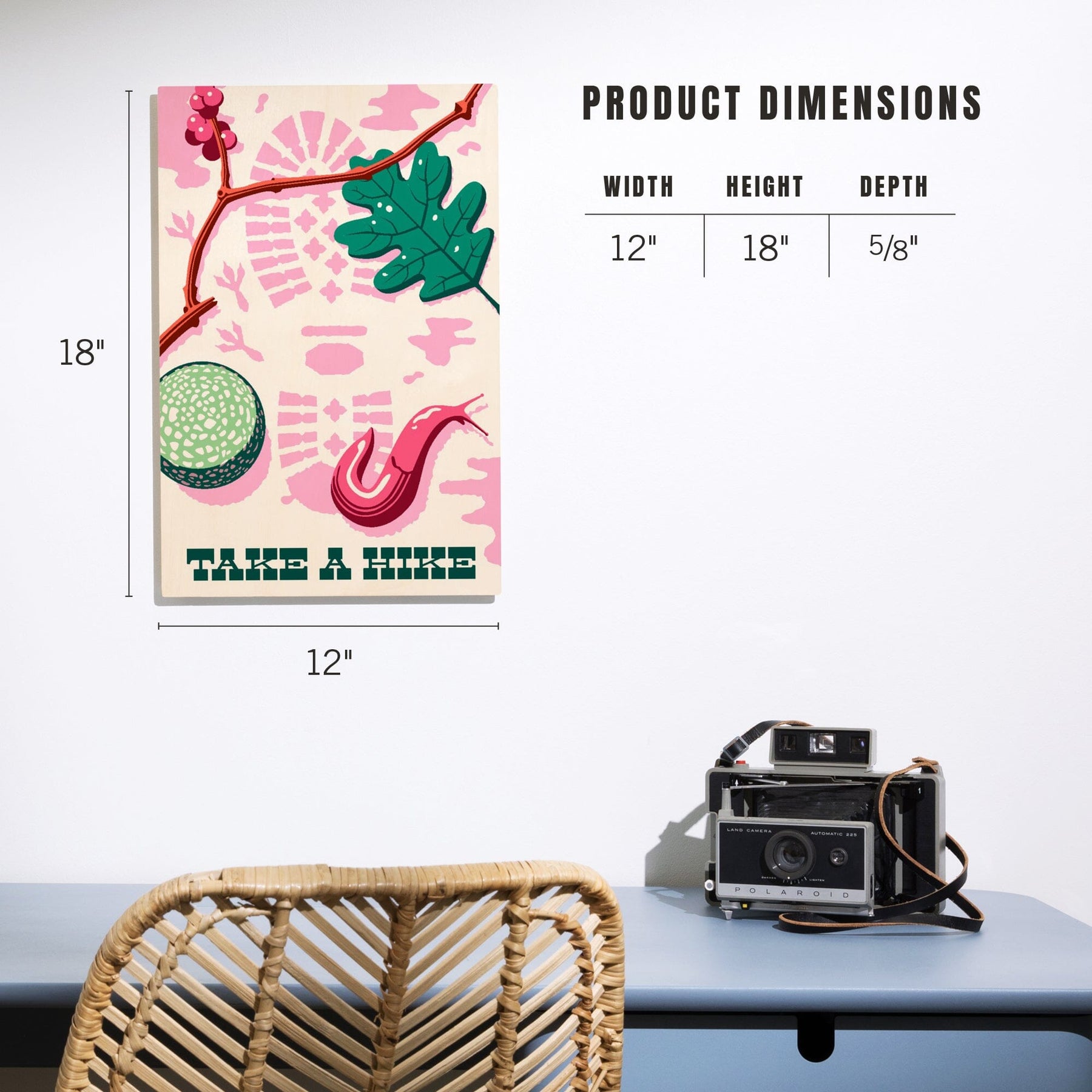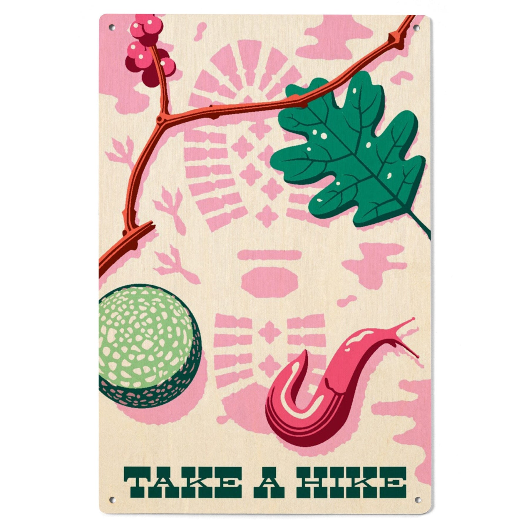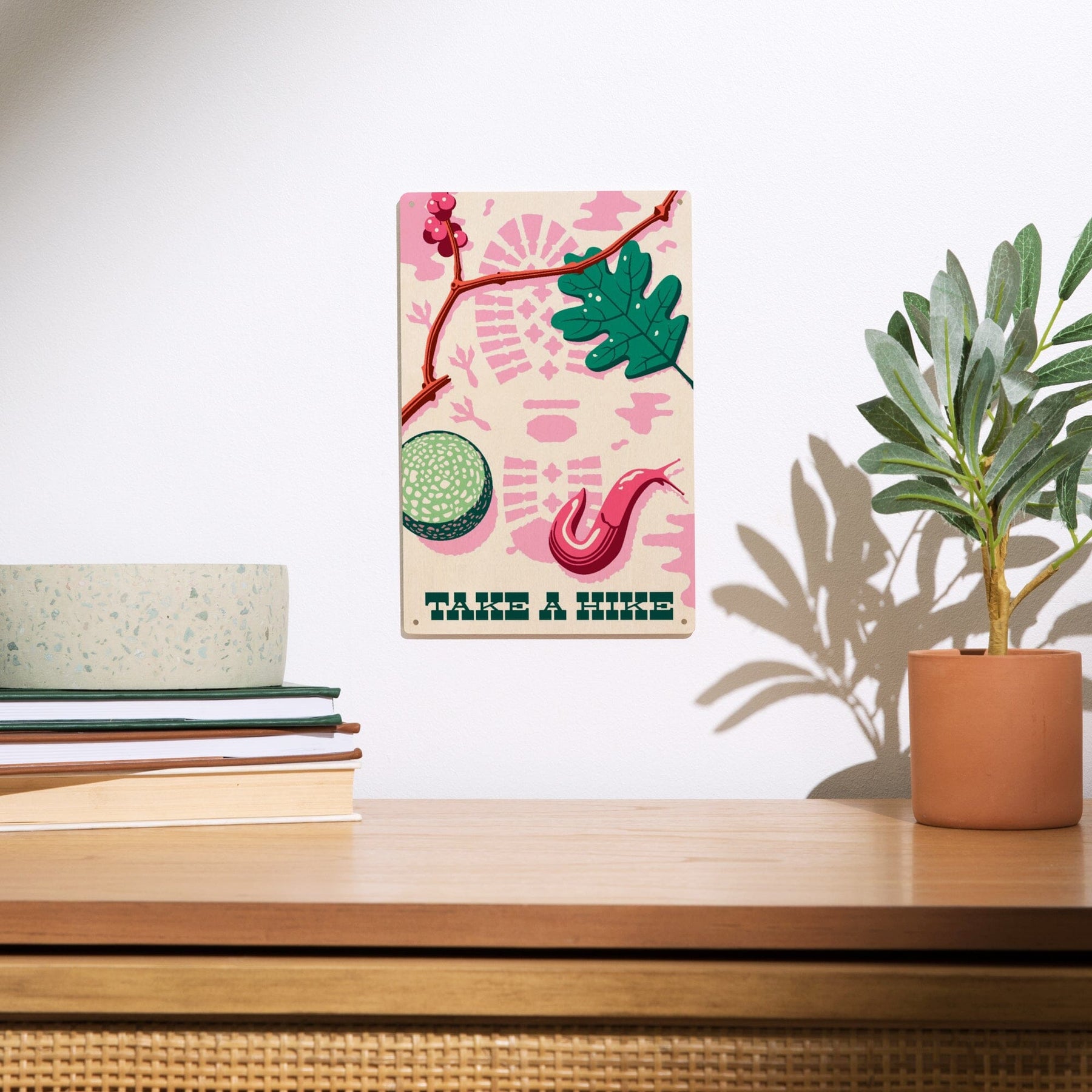 Take a Hike, Bootprint, Green & Pink, Vector, Lantern Press Artwork, Wood Signs and Postcards Wood Lantern Press