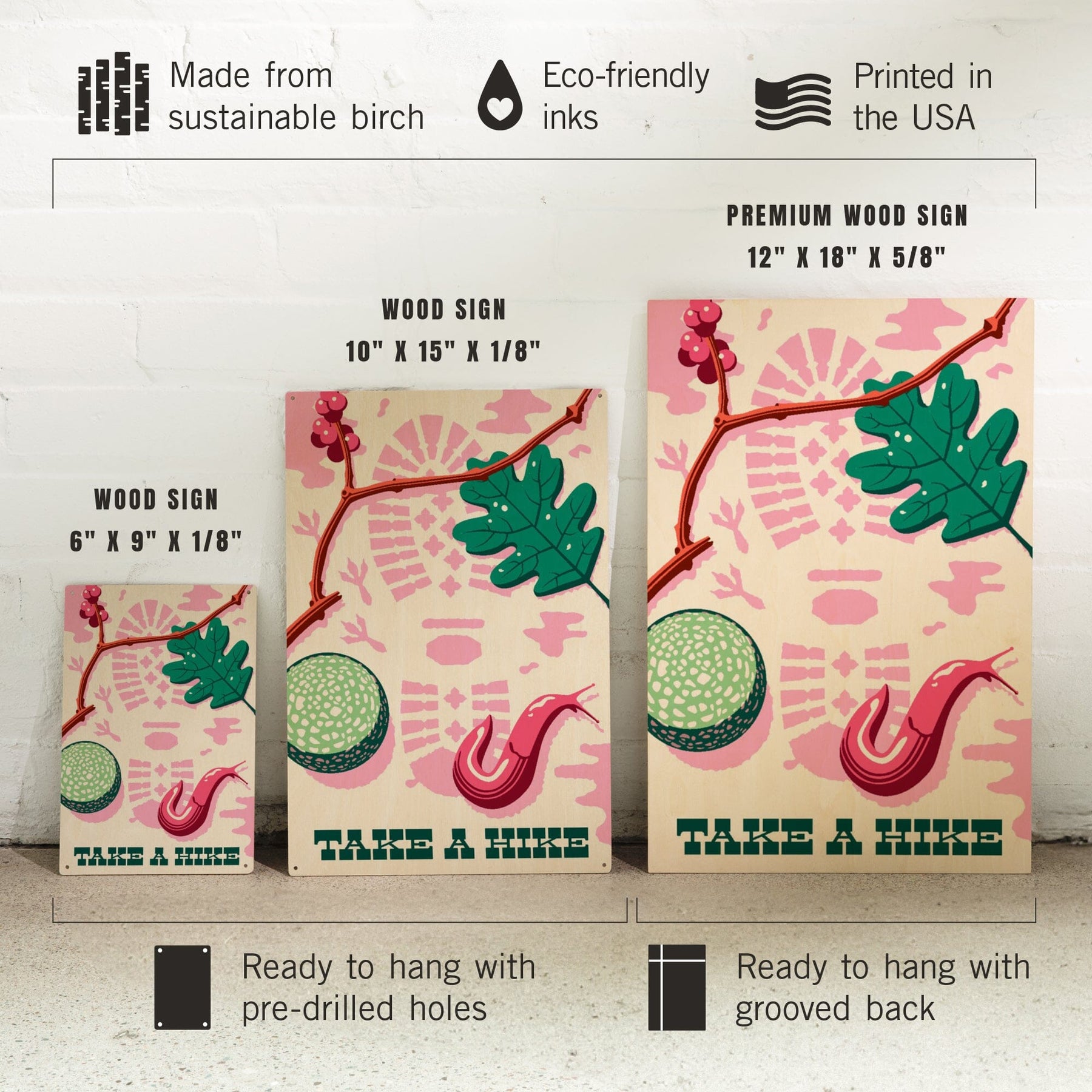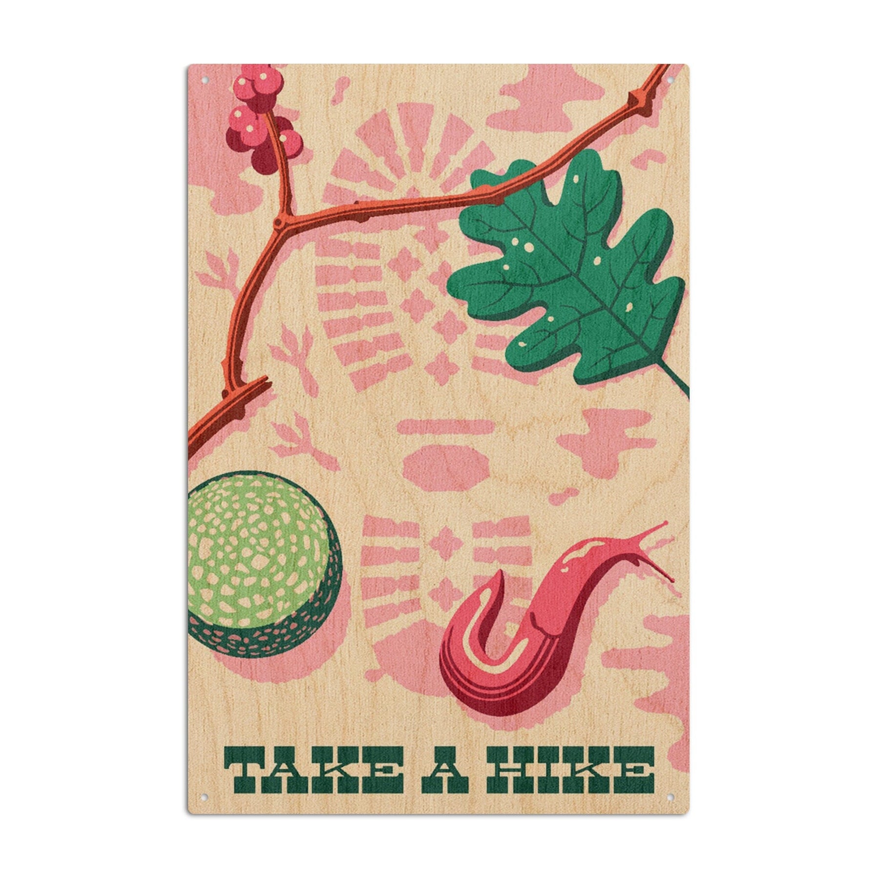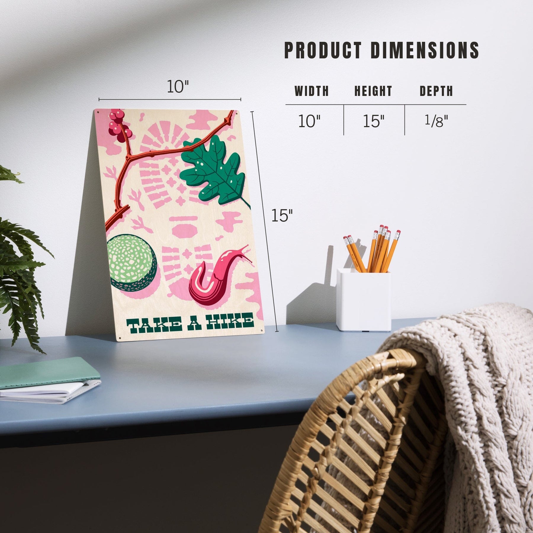 Take a Hike, Bootprint, Green & Pink, Vector, Lantern Press Artwork, Wood Signs and Postcards Wood Lantern Press