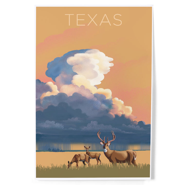 Texas, White-tailed Deer and Rain Cloud, Lithograph, Art & Giclee Prints Art Lantern Press