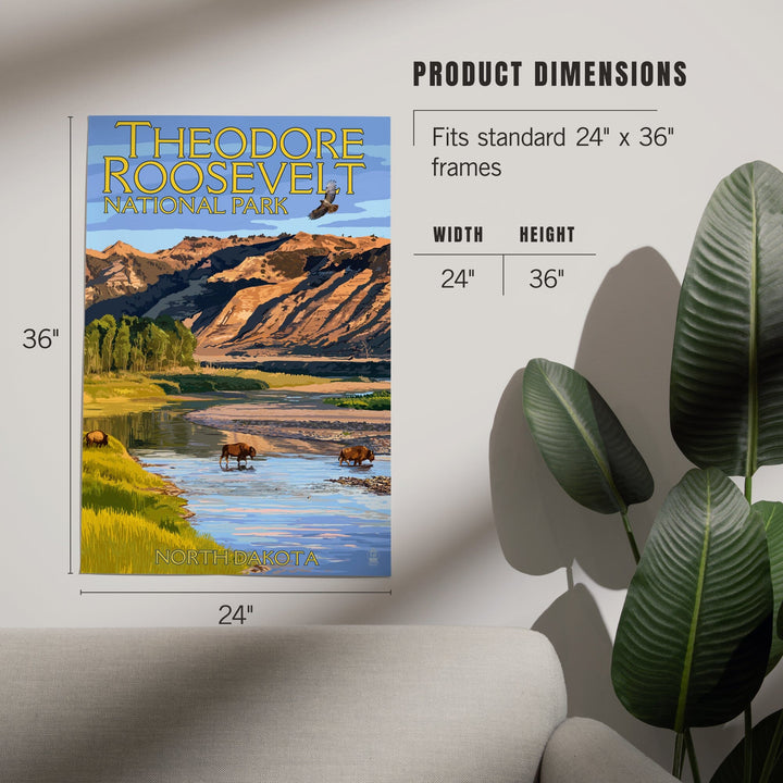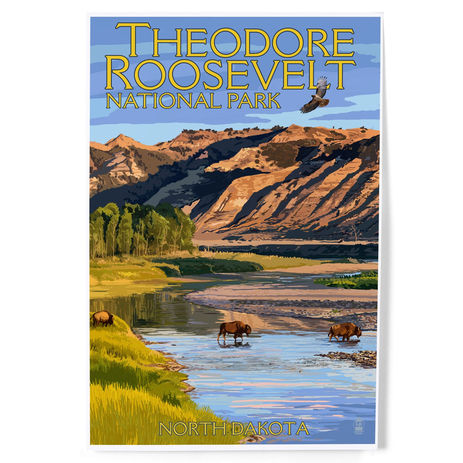 Theodore Roosevelt National Park, North Dakota, Bison Crossing River, Art & Giclee Prints Art Lantern Press