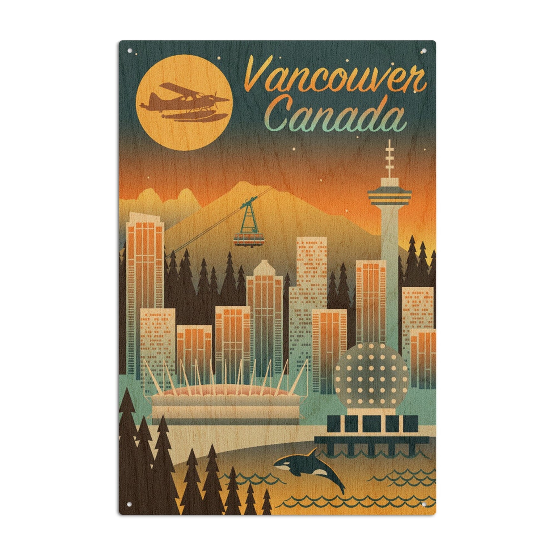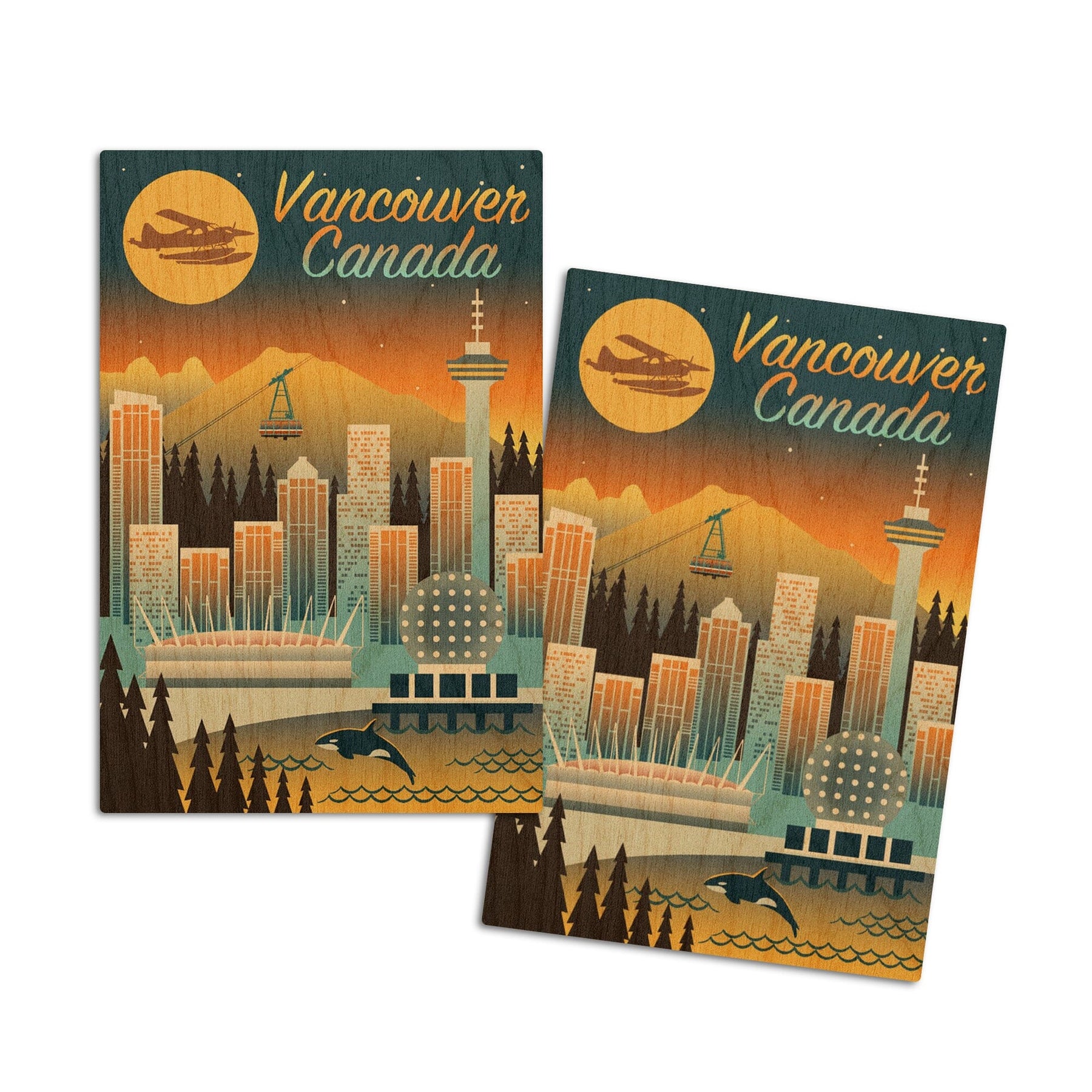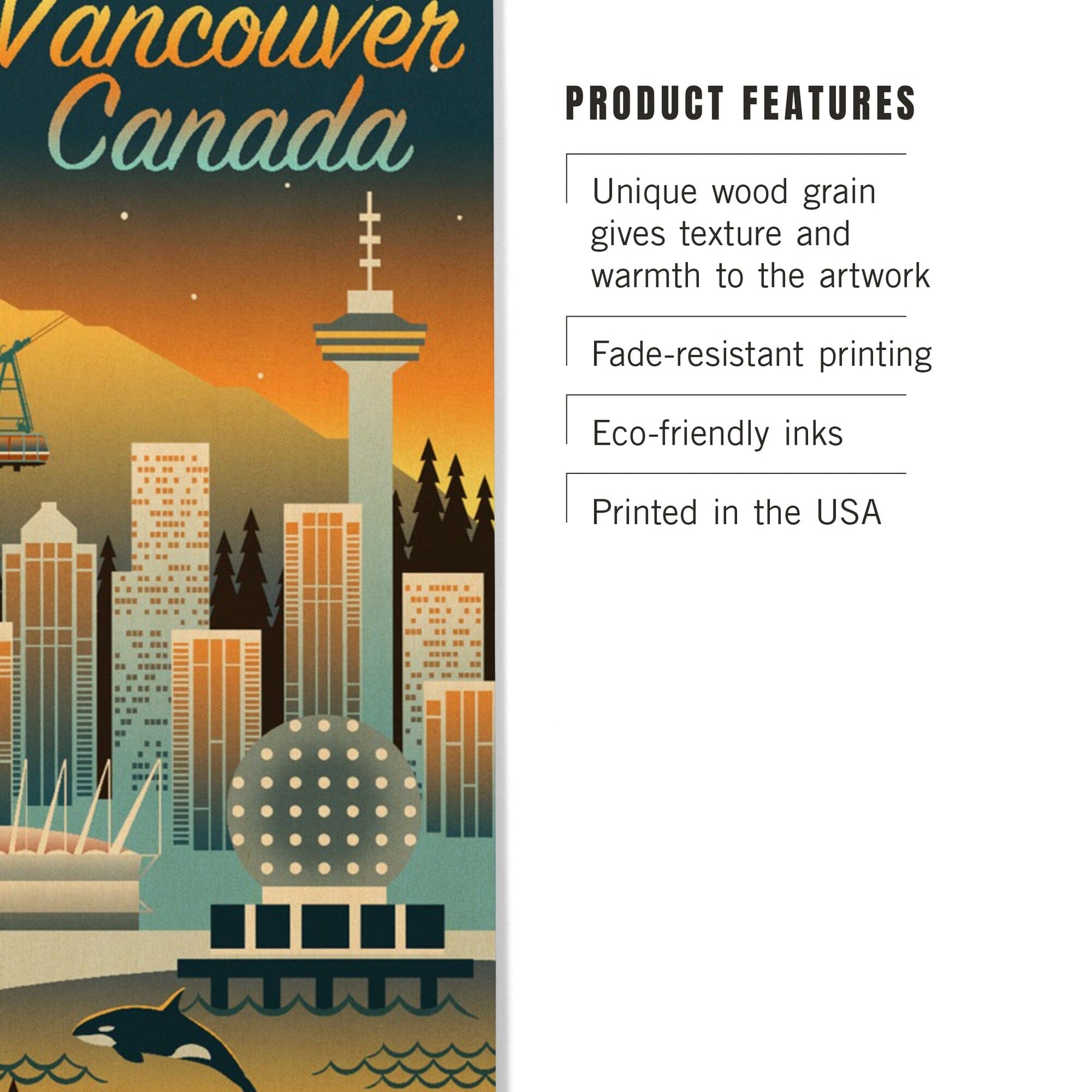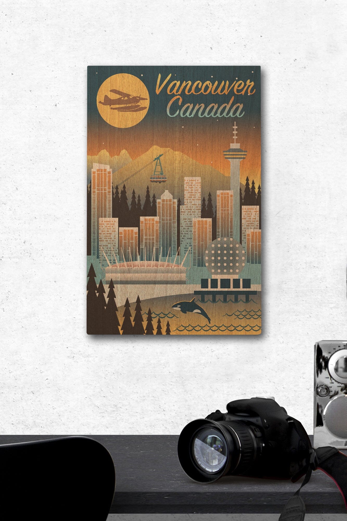 Vancouver, Canada, Retro Skyline Chromatic Series, Lantern Press Artwork, Wood Signs and Postcards Wood Lantern Press