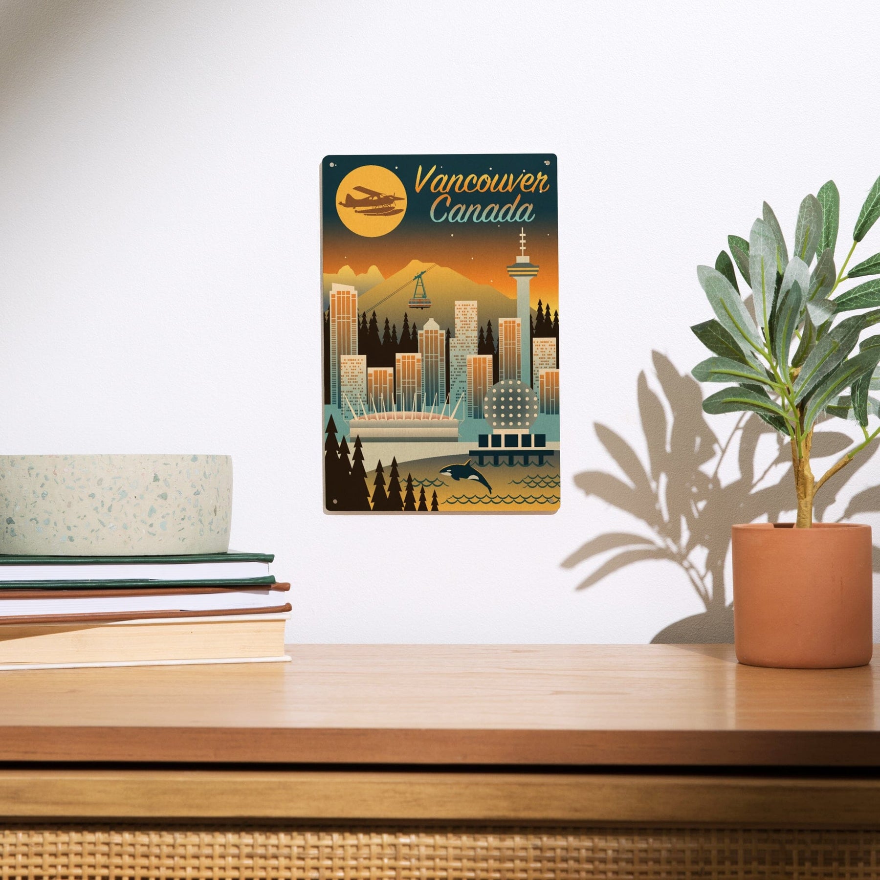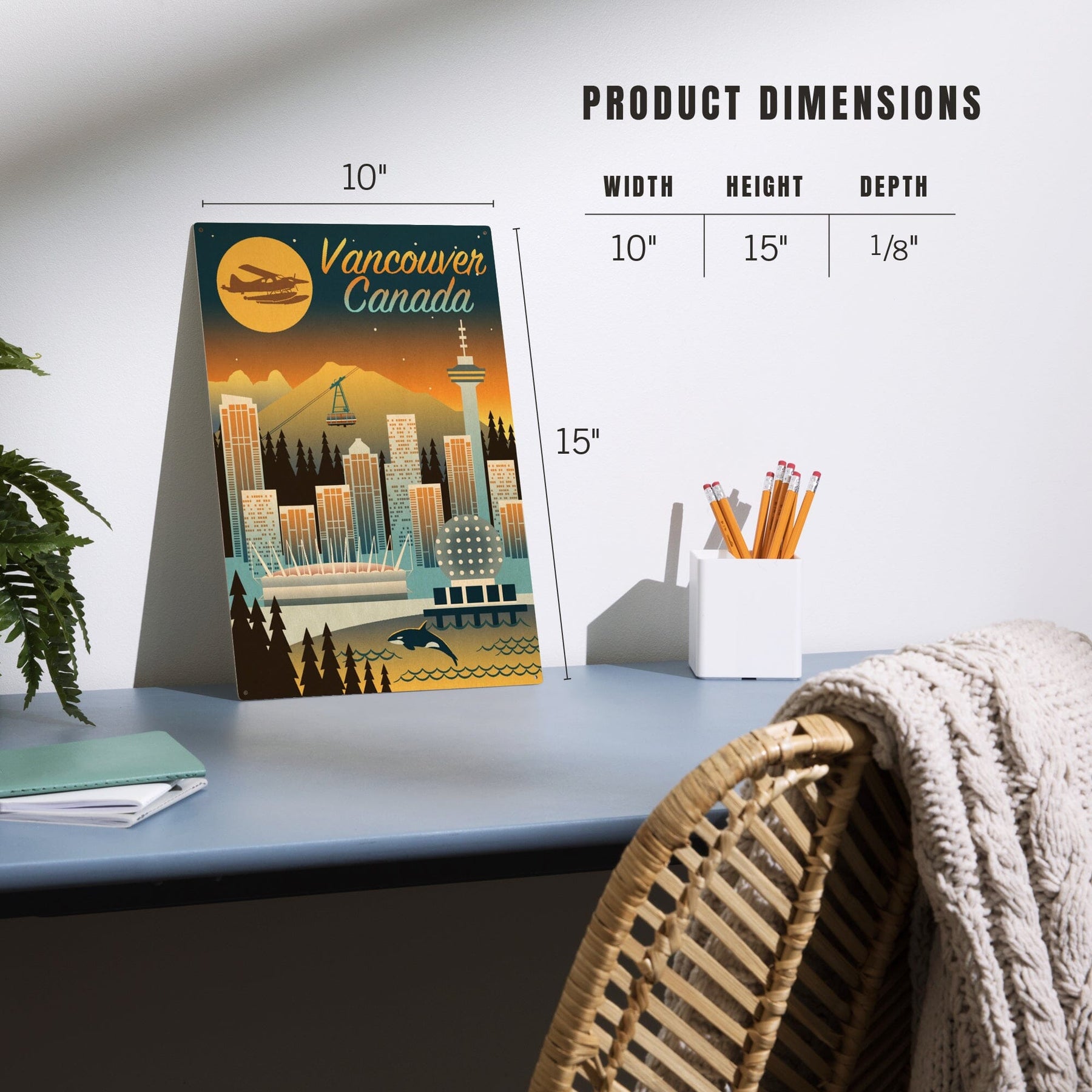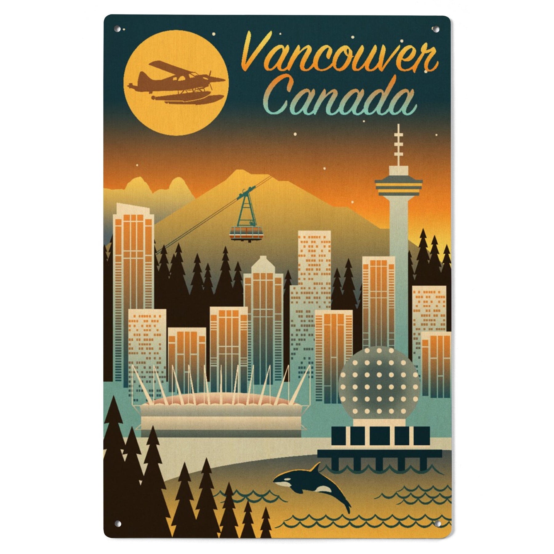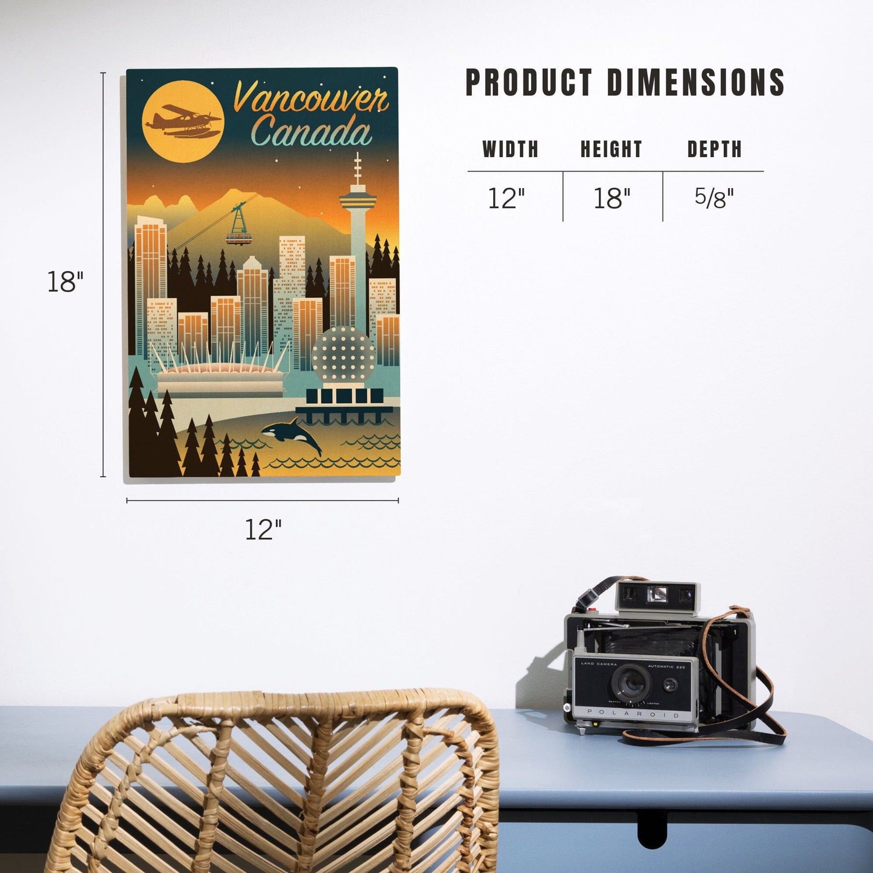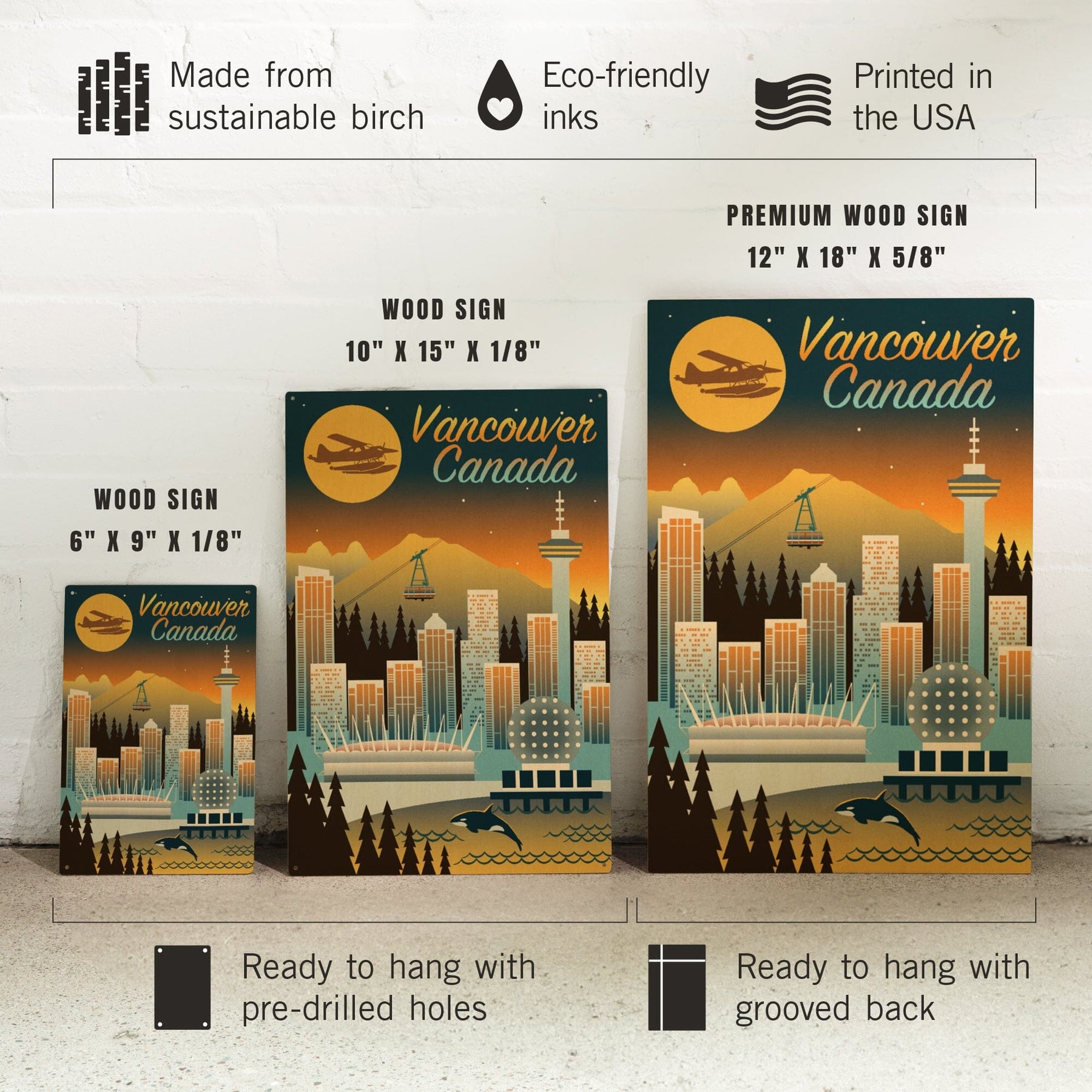 Vancouver, Canada, Retro Skyline Chromatic Series, Lantern Press Artwork, Wood Signs and Postcards