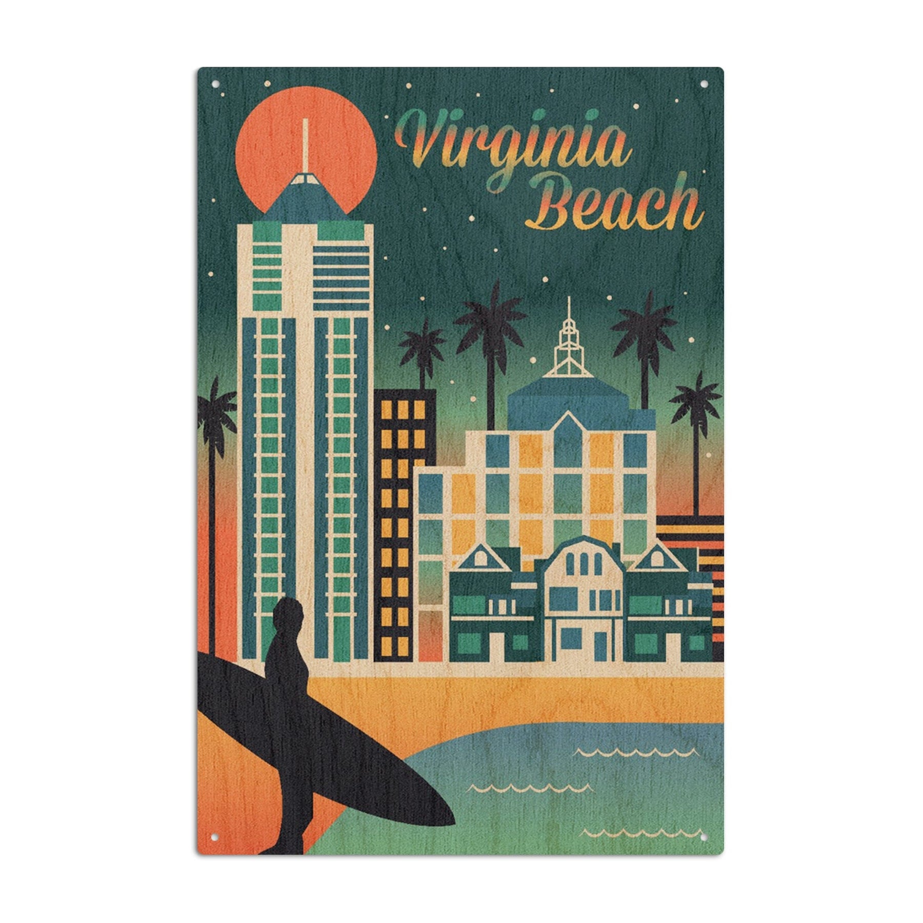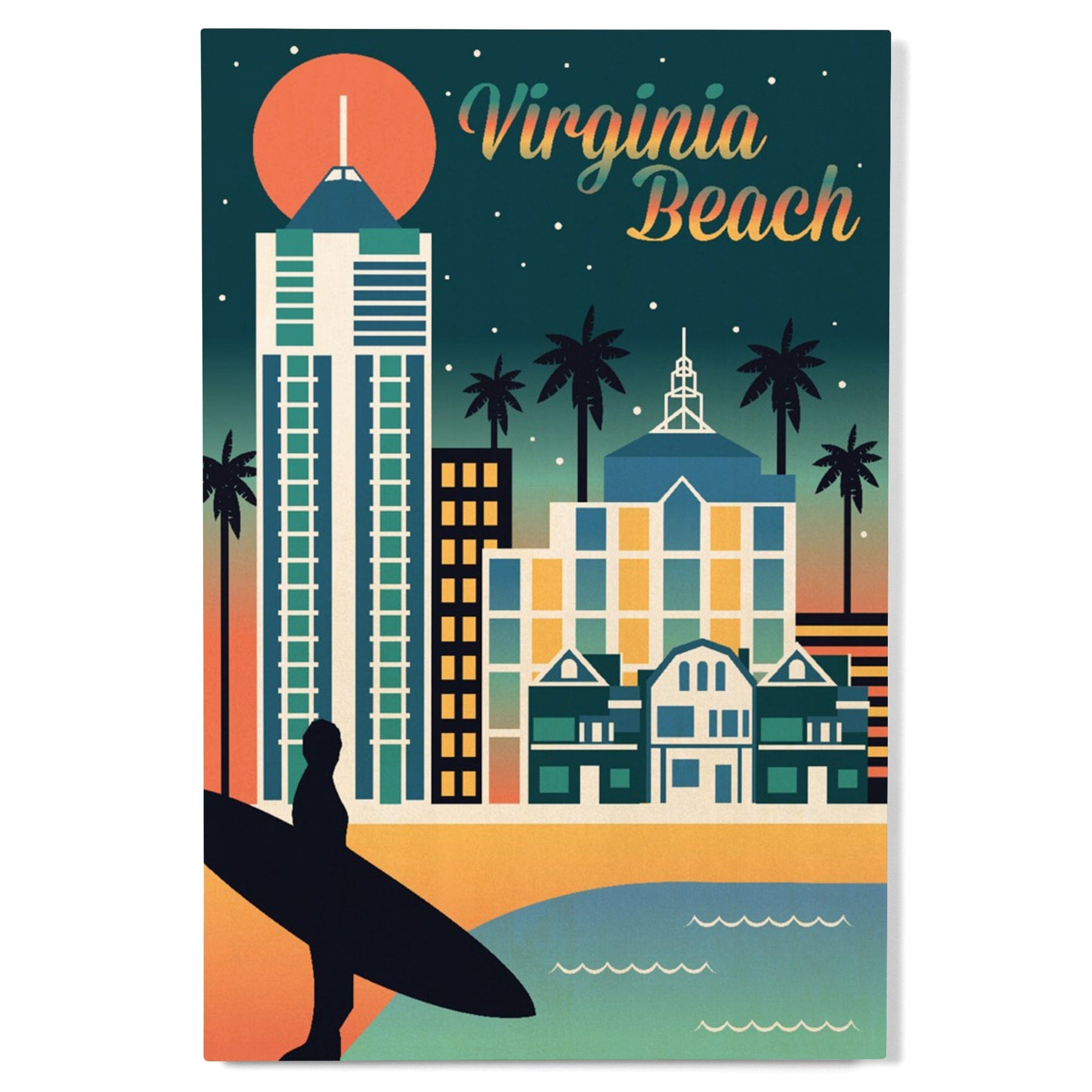 Virginia Beach, Virginia, Retro Skyline Chromatic Series, Lantern Press Artwork, Wood Signs and Postcards Wood Lantern Press
