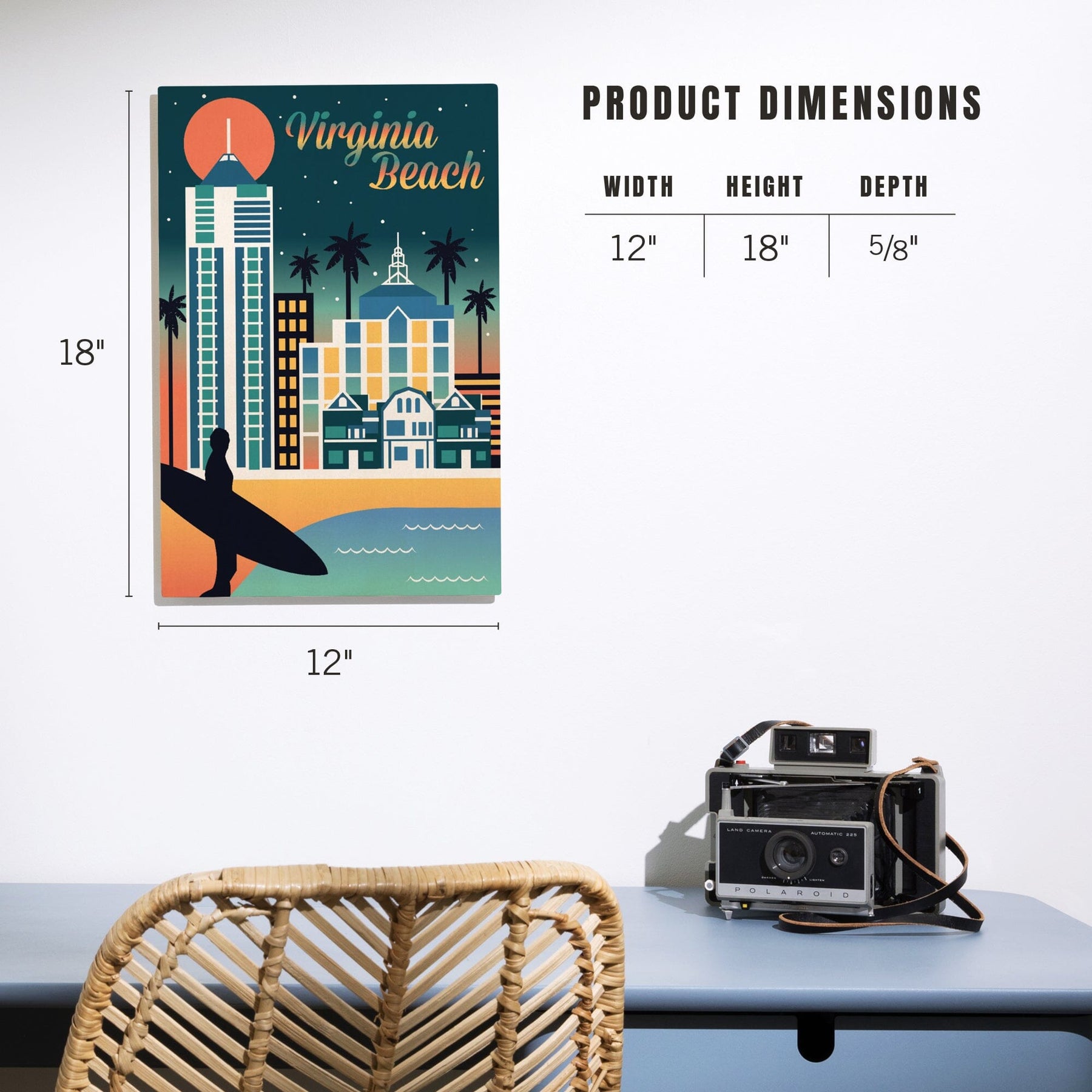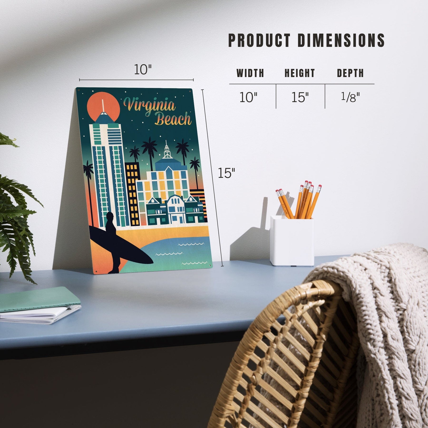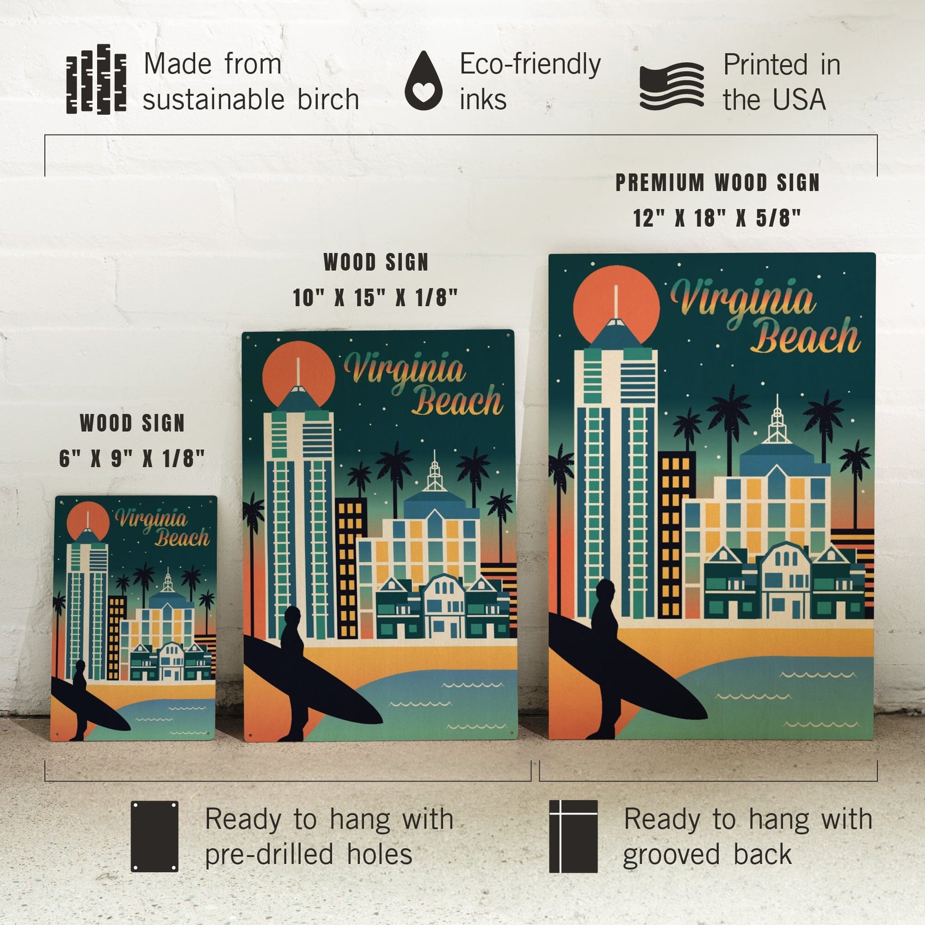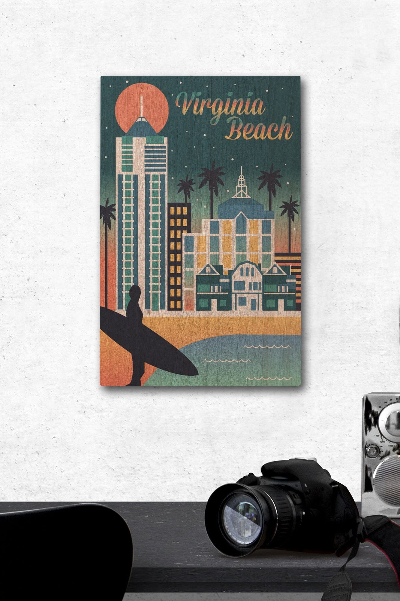 Virginia Beach, Virginia, Retro Skyline Chromatic Series, Lantern Press Artwork, Wood Signs and Postcards