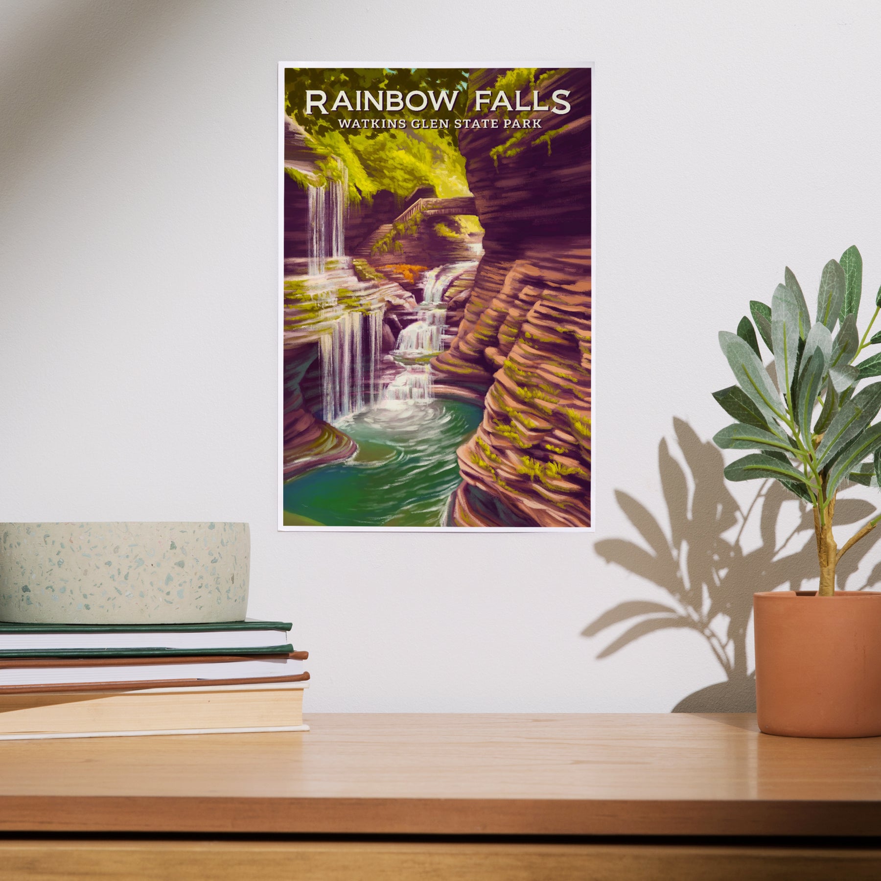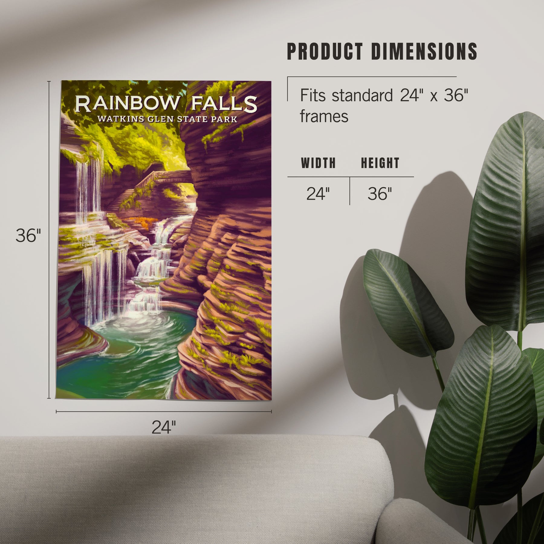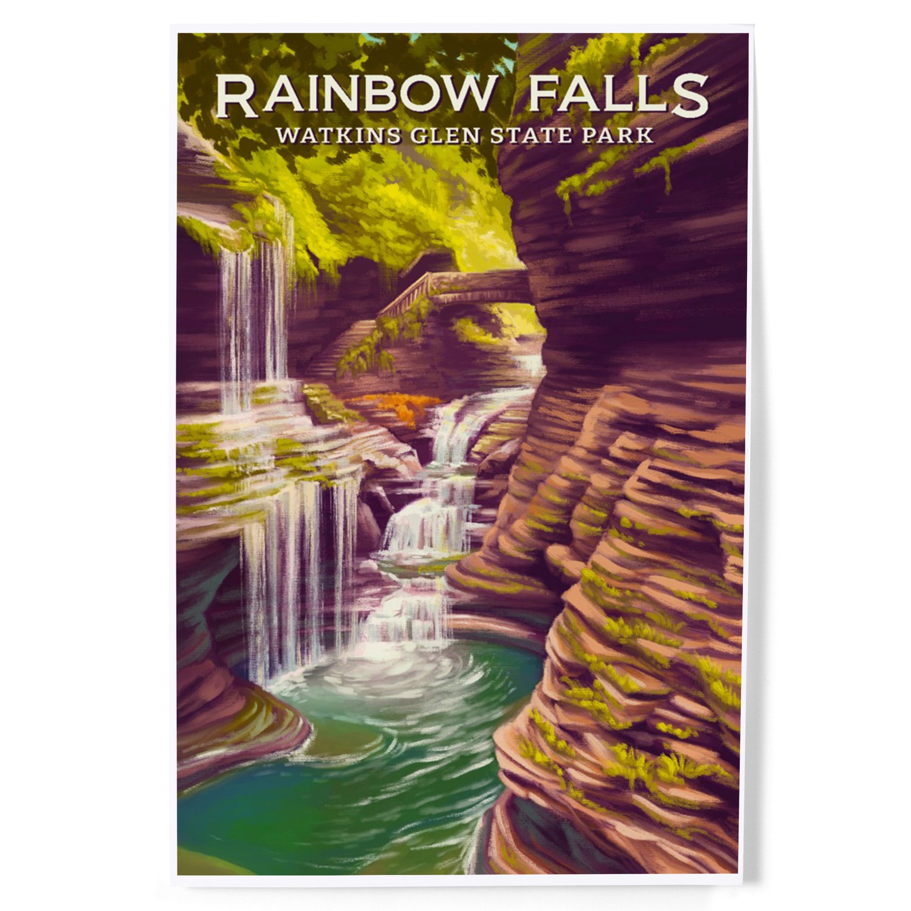 Watkins Glen State Park, New York, Oil Painting, Rainbow Falls, Art & Giclee Prints Art Lantern Press