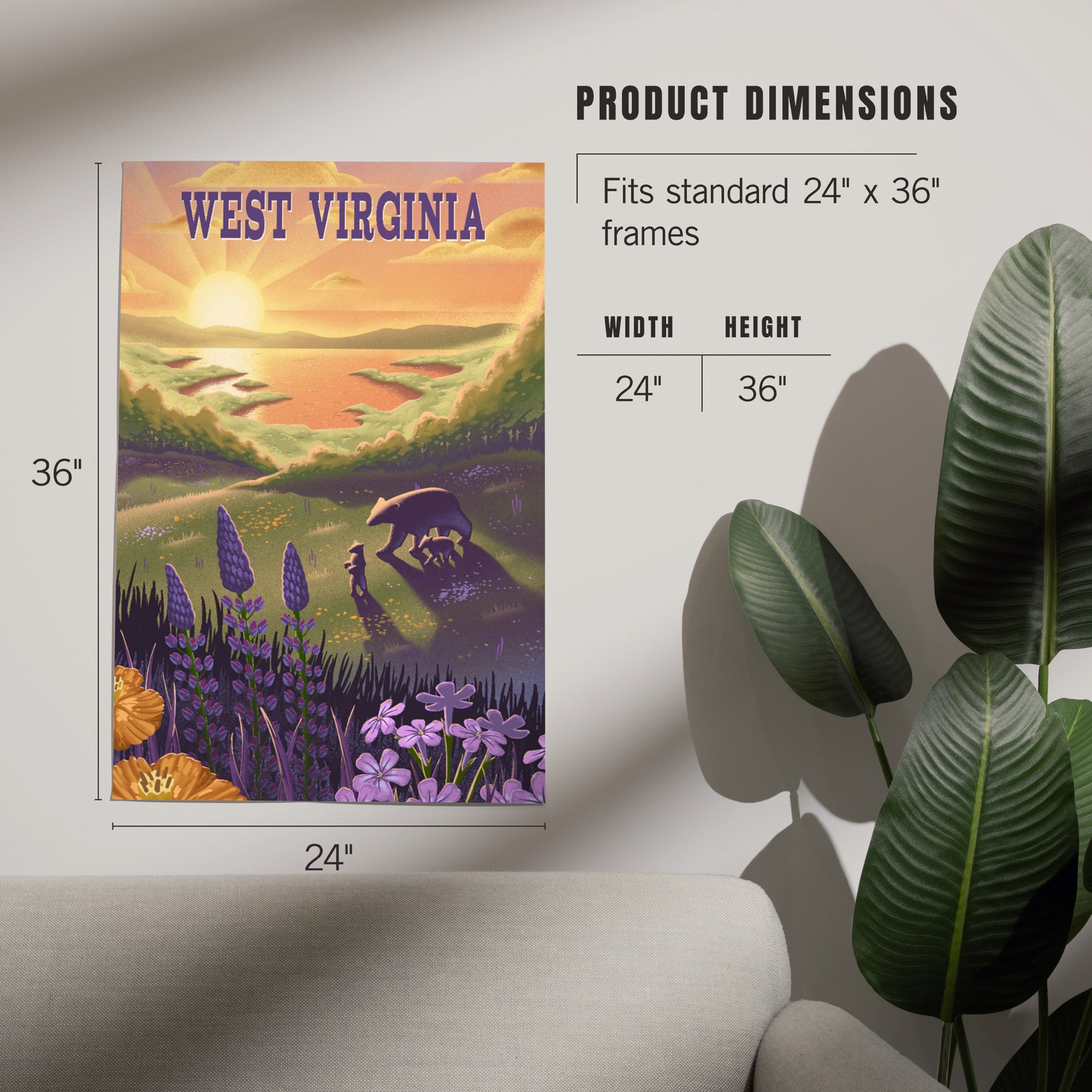 West Virginia, Lithograph, Bear and Spring Flowers, Lake, Art & Giclee Prints Art Lantern Press