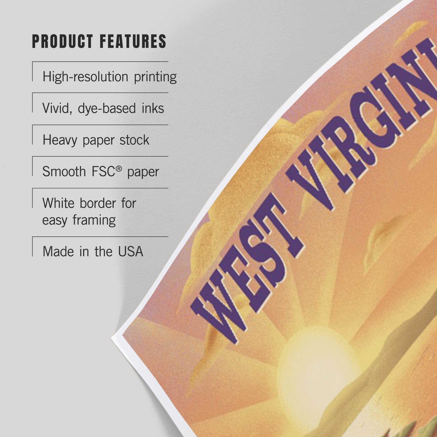 West Virginia, Lithograph, Bear and Spring Flowers, Lake, Art & Giclee Prints