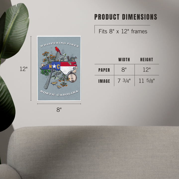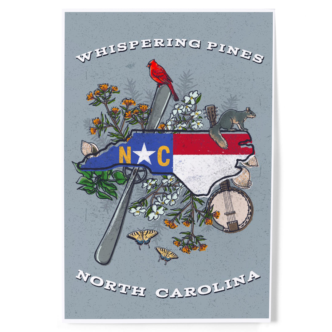 Whispering Pines, North Carolina, State Treasure Trove, Art & Giclee Prints Art Lantern Press