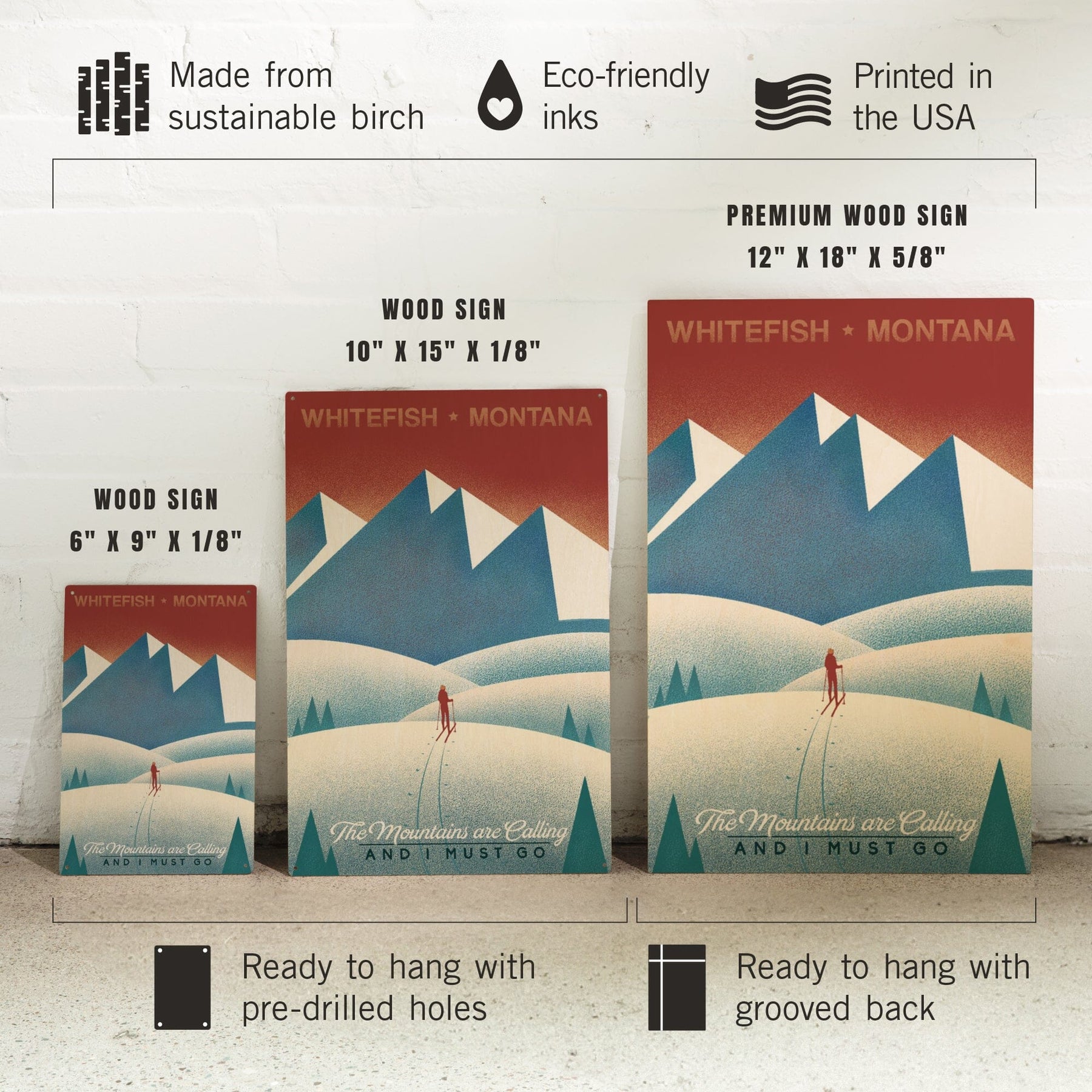 Whitefish, Montana, Skier In the Mountains, Litho, Lantern Press Artwork, Wood Signs and Postcards Wood Lantern Press