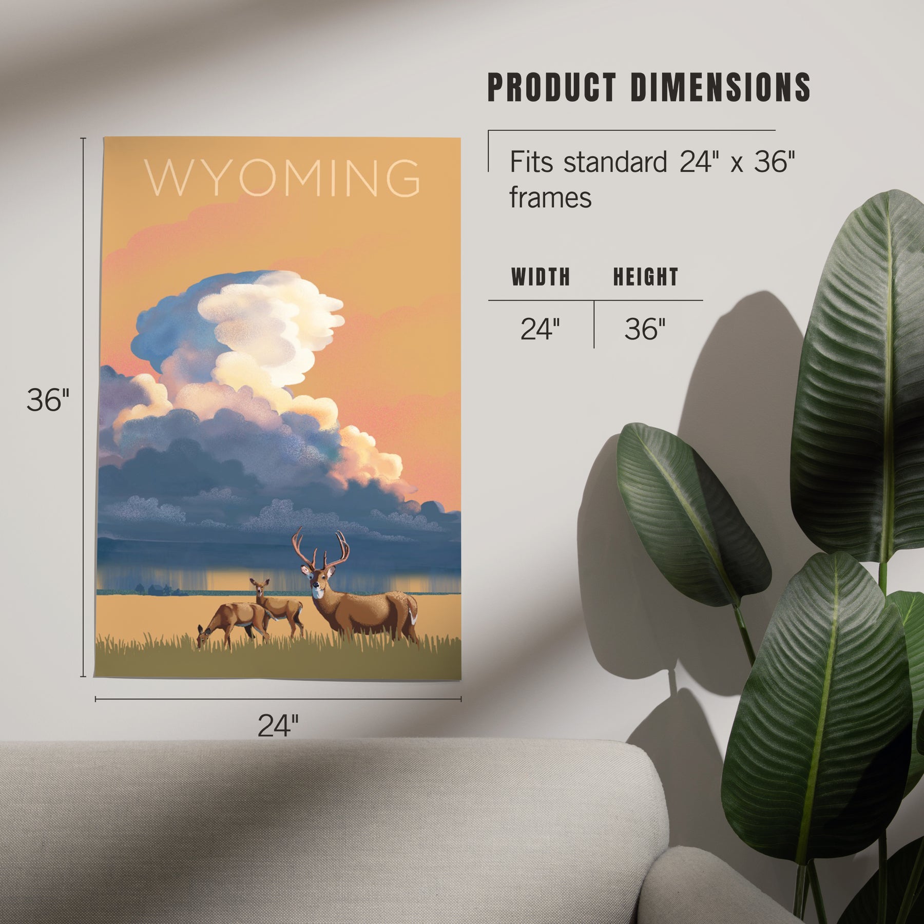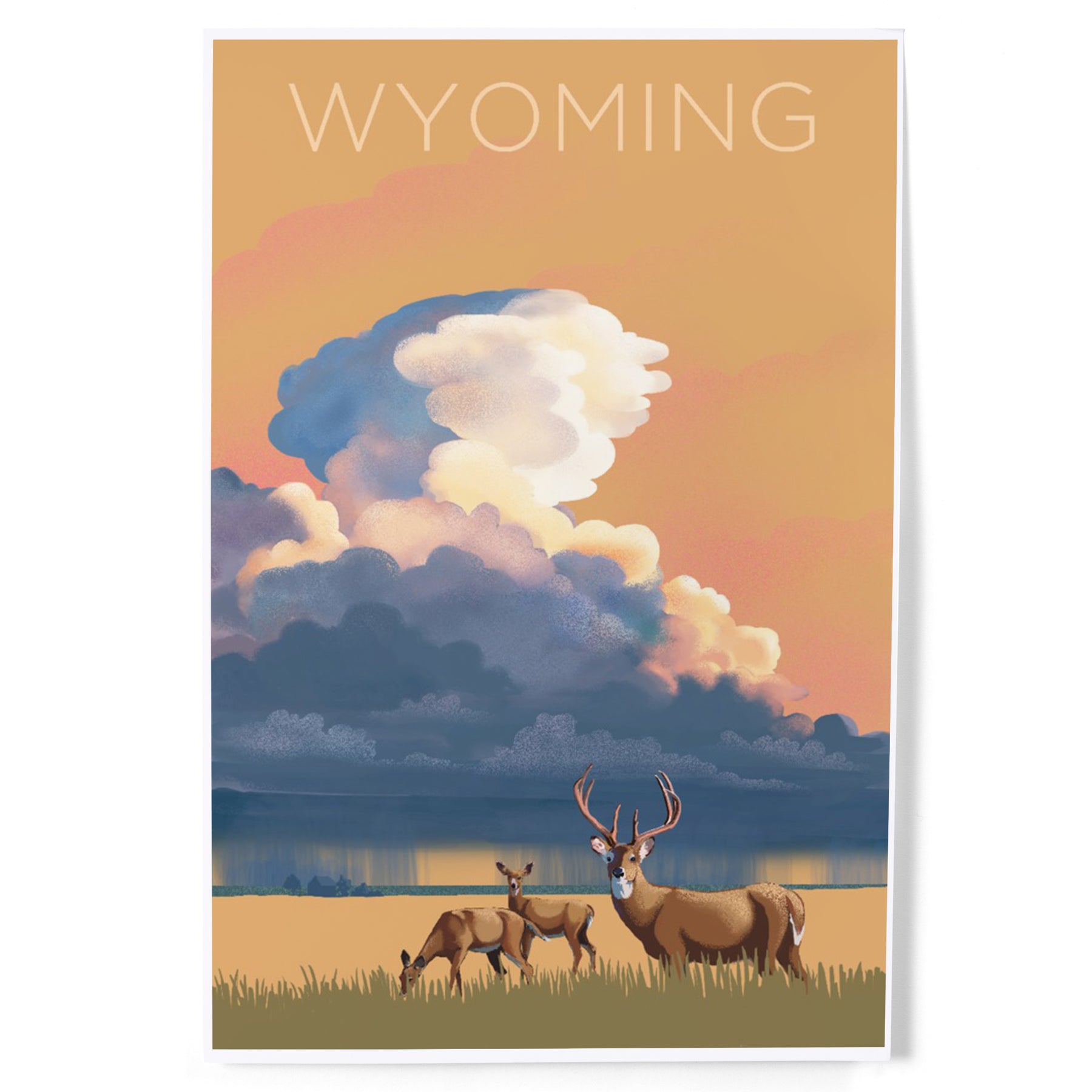 Wyoming, White-tailed Deer and Rain Cloud, Lithograph, Art & Giclee Prints Art Lantern Press