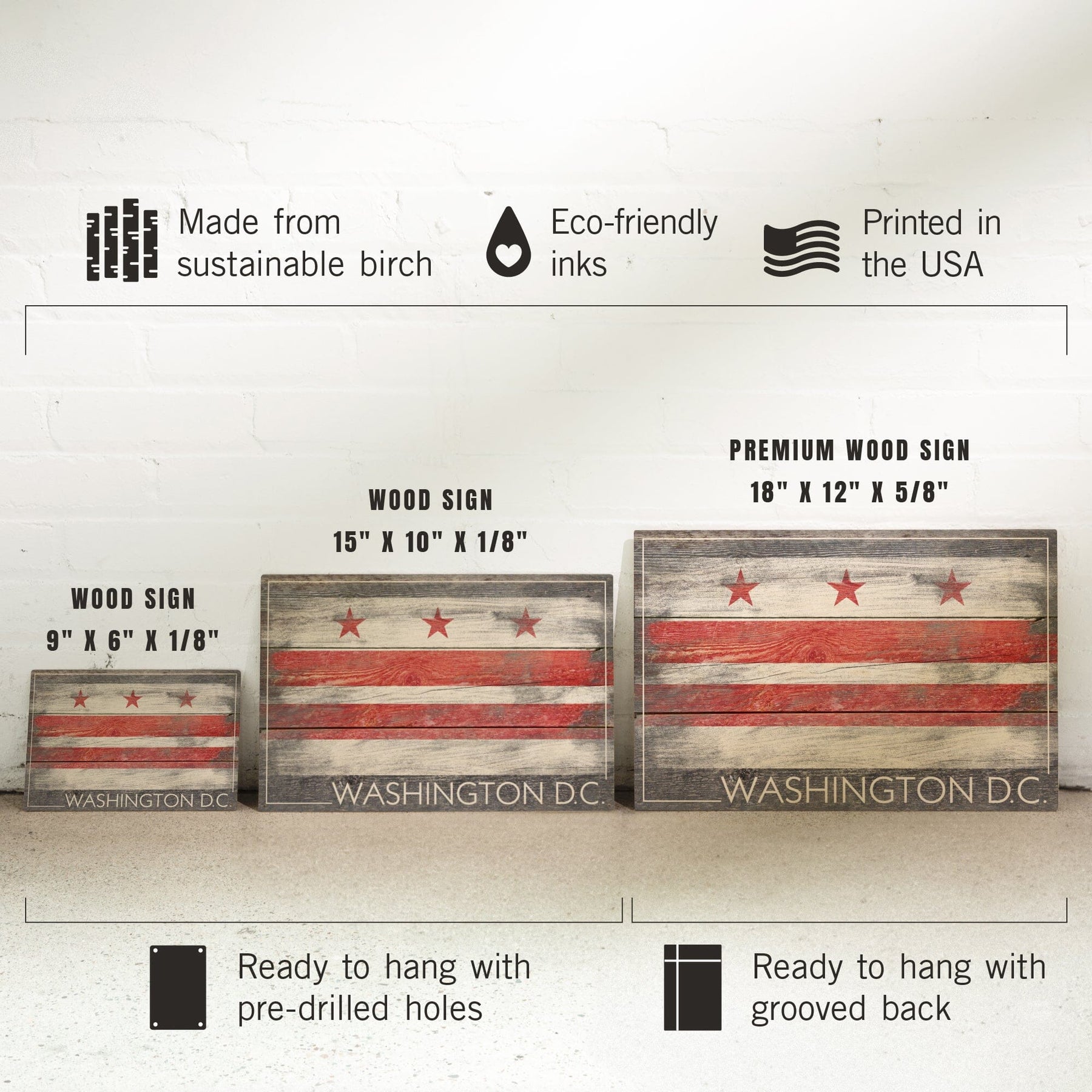 Rustic Washington DC Flag, Lantern Press Artwork, Wood Signs and Postcards