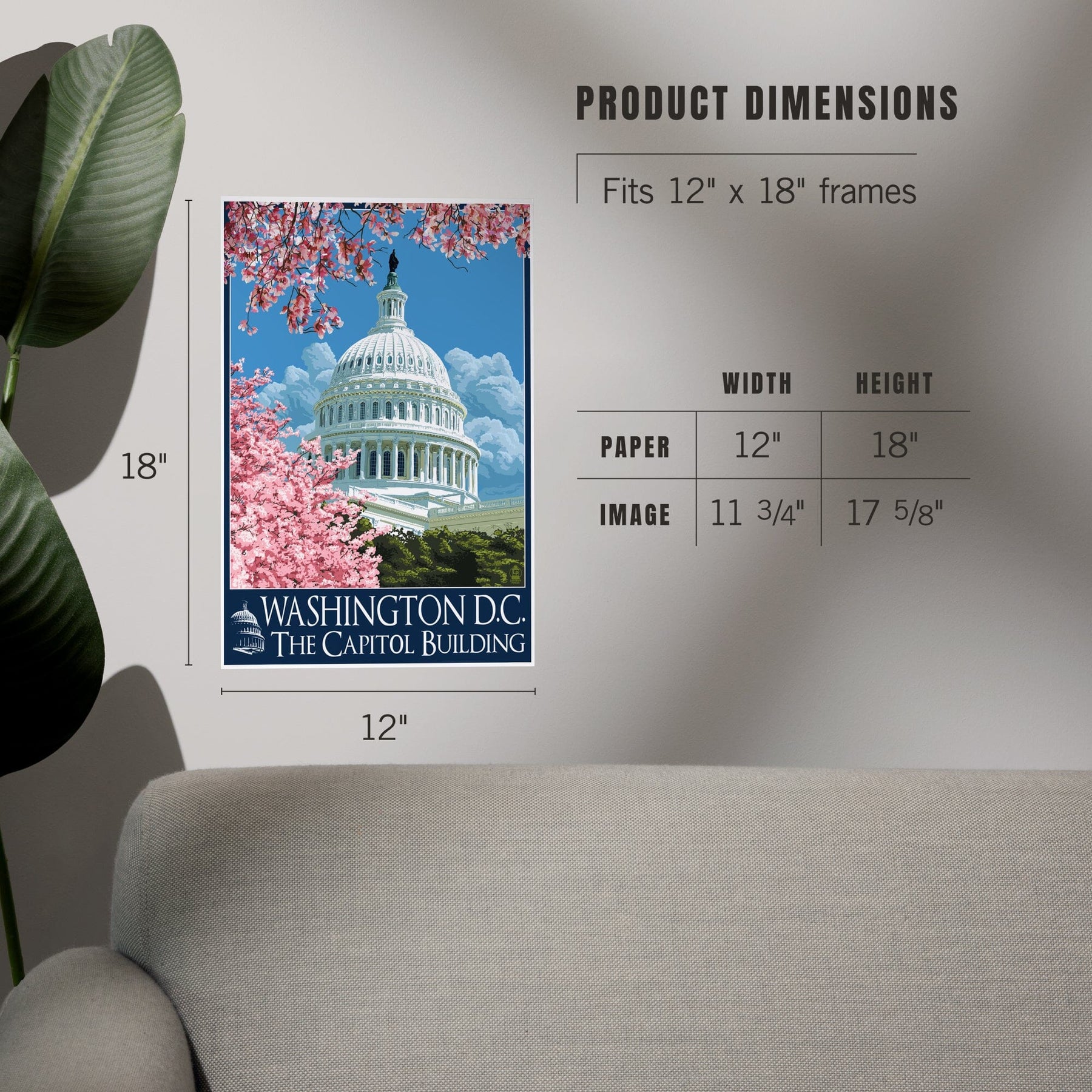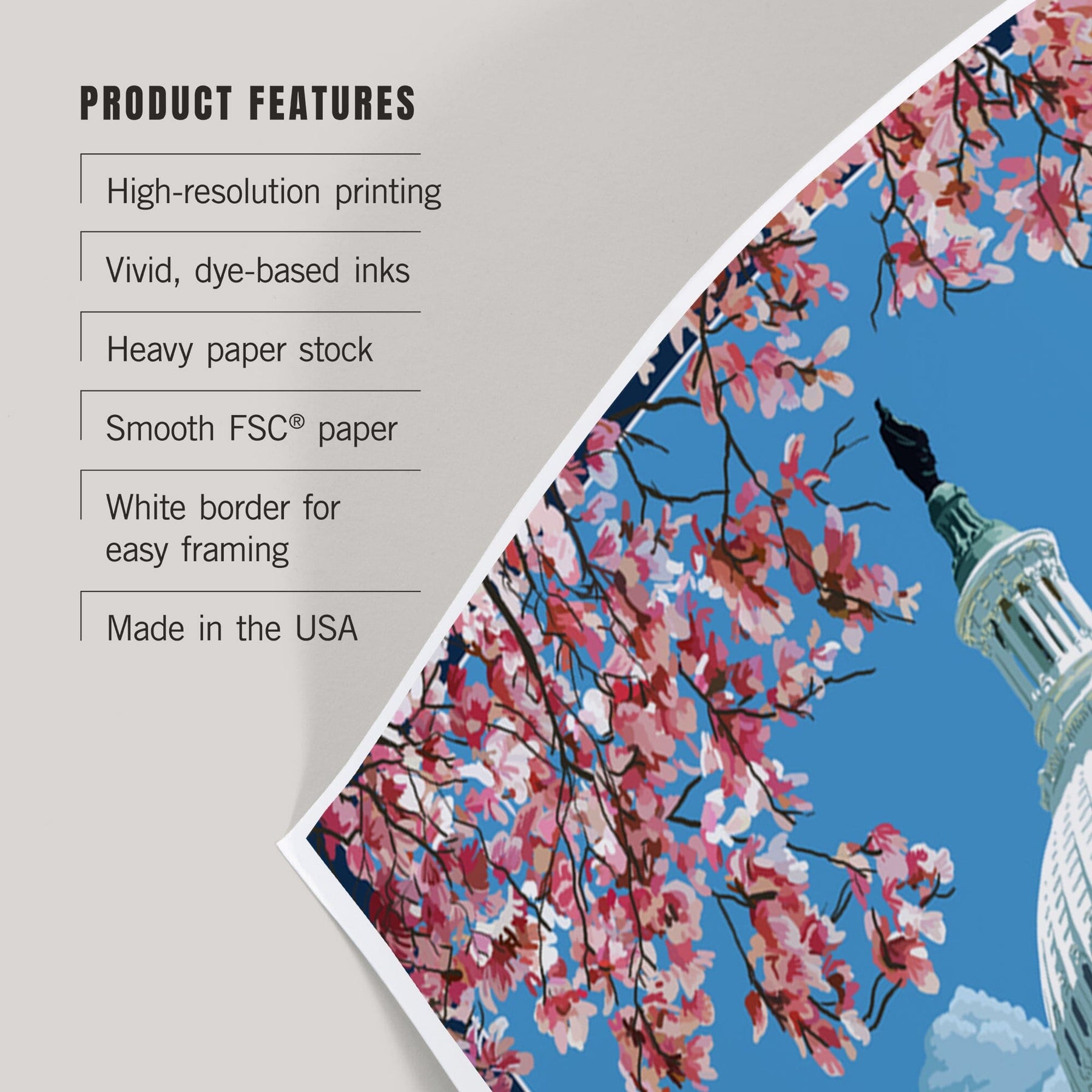Washington DC, Capitol Building and Cherry Blossoms, Art & Giclee Prints Art Lantern Press