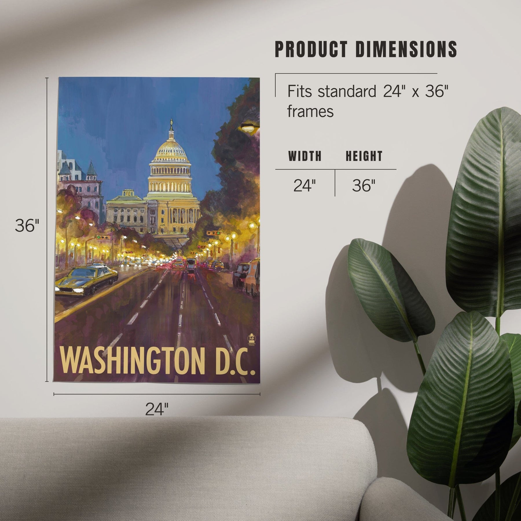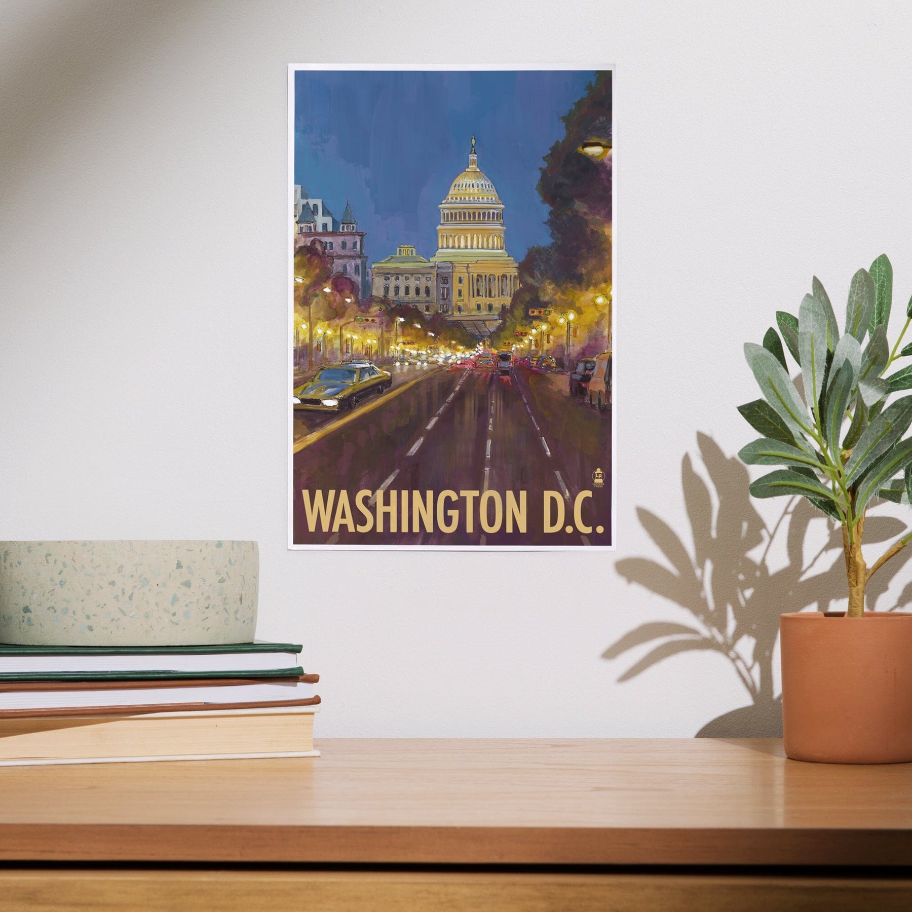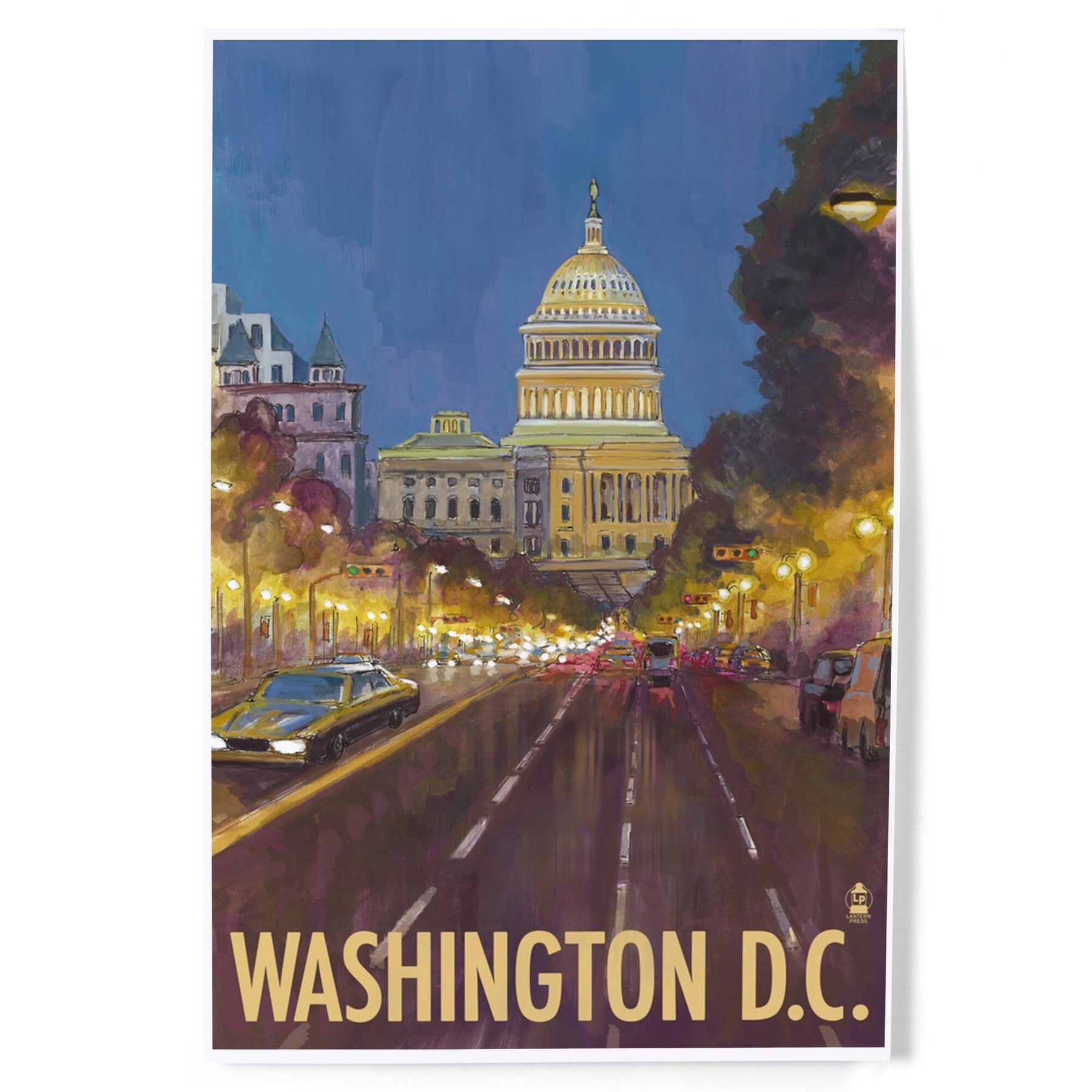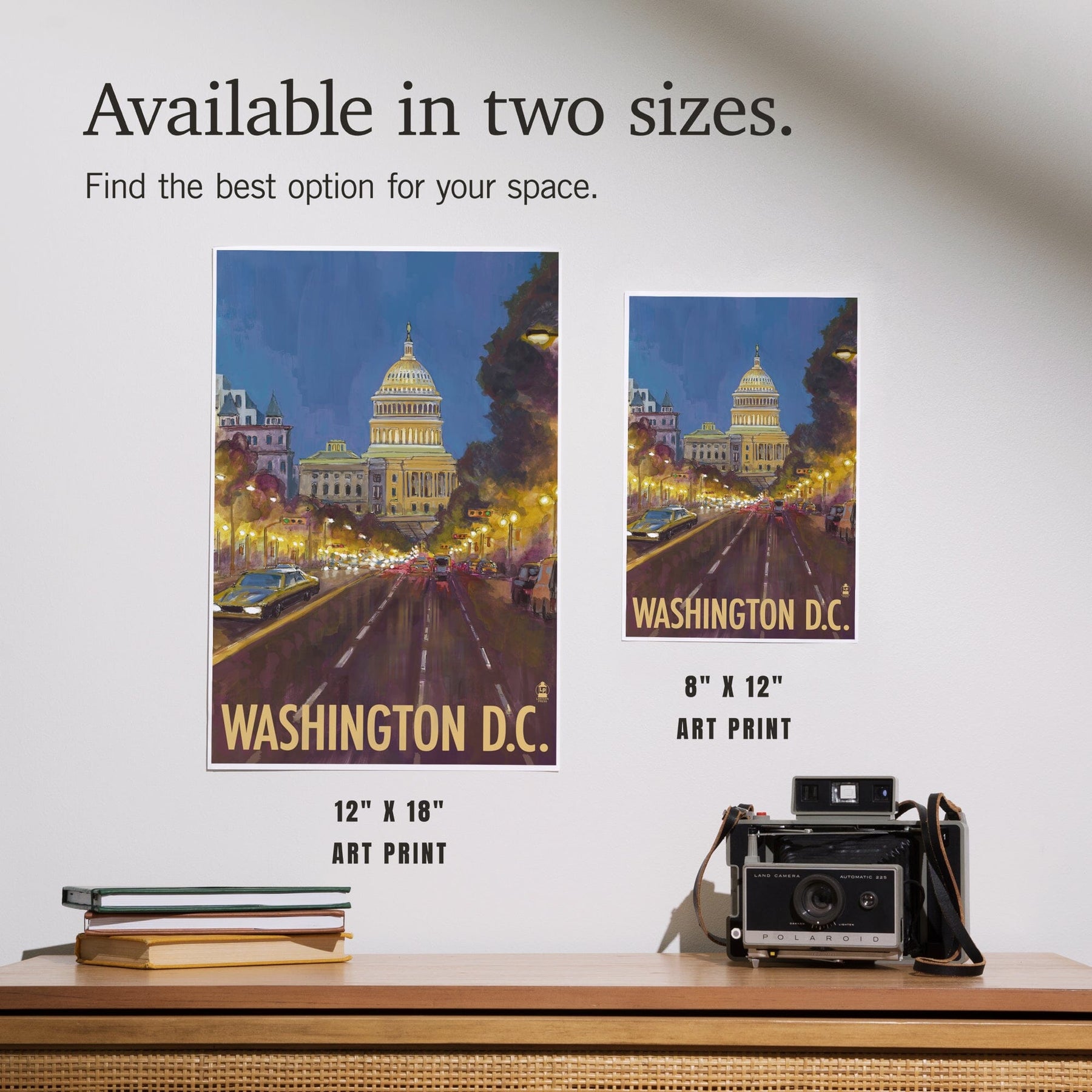 Washington, DC, Night Scene, Lantern Press Artwork, Wood Signs and Postcards