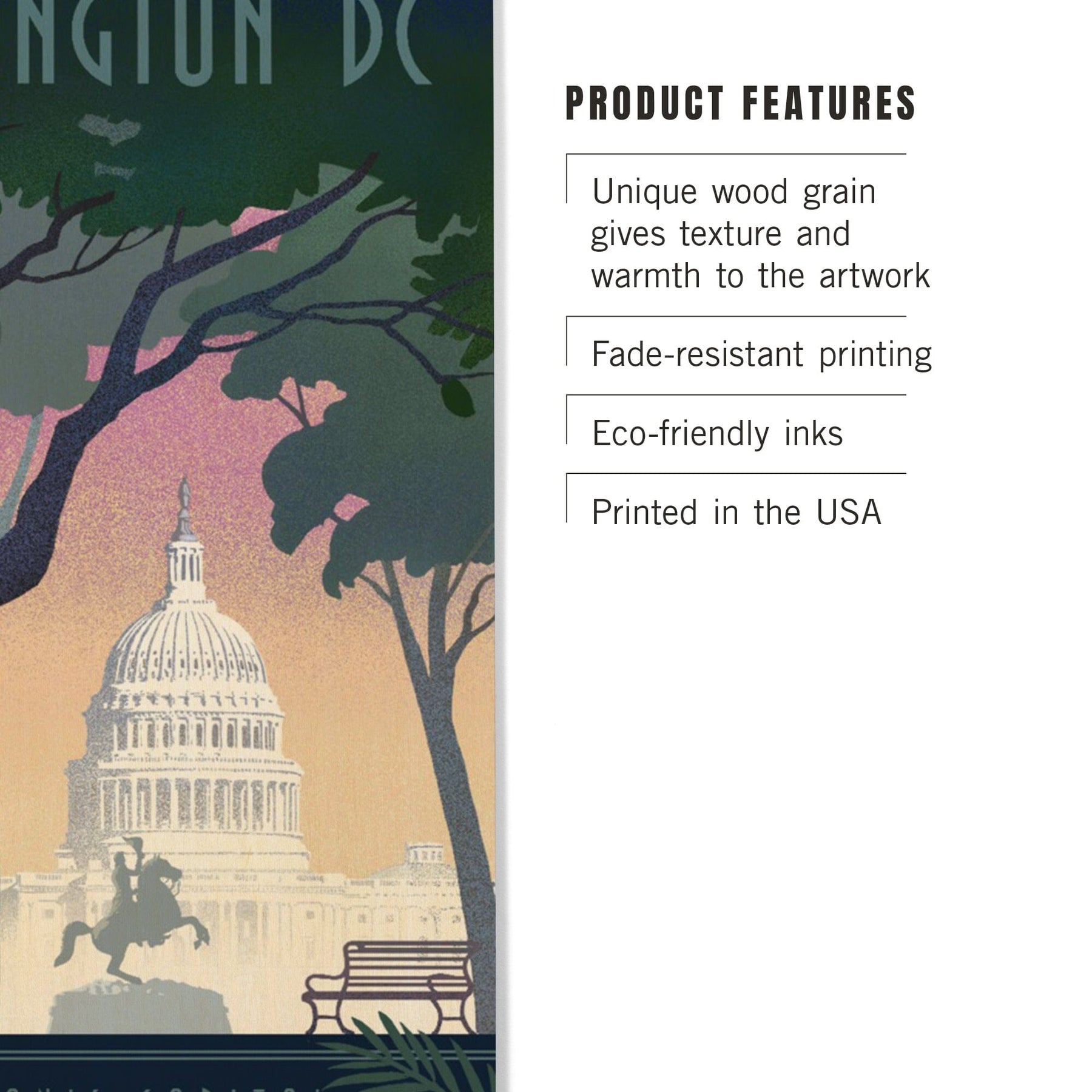 Washington, DC, Nation's Capitol, Lithograph, Lantern Press Artwork, Wood Signs and Postcards Wood Lantern Press