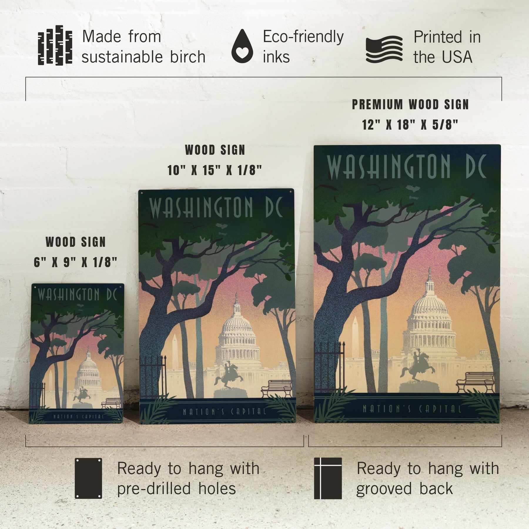 Washington, DC, Nation's Capitol, Lithograph, Lantern Press Artwork, Wood Signs and Postcards
