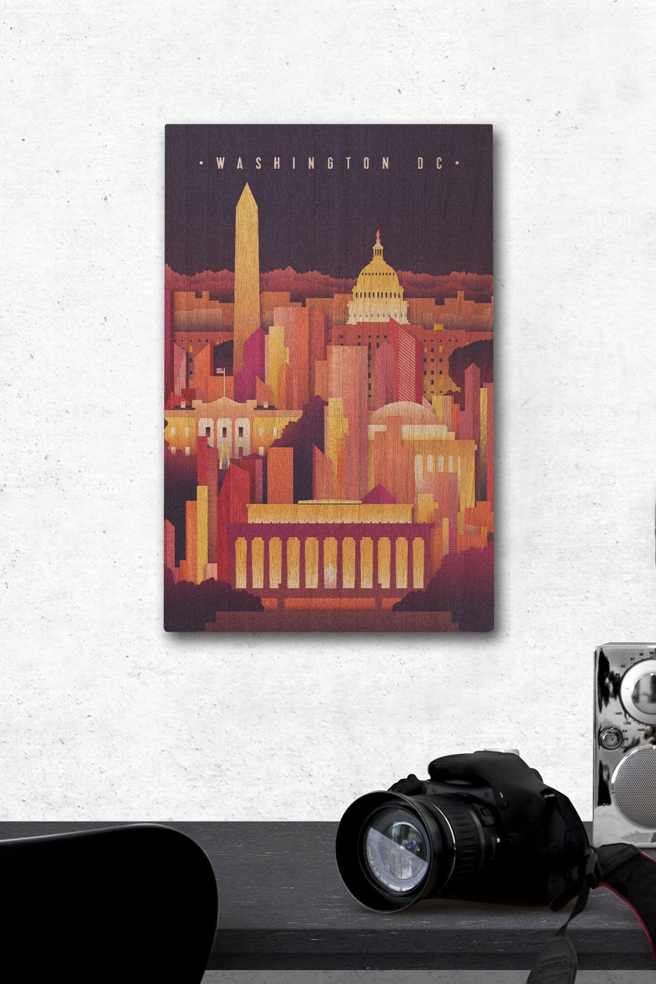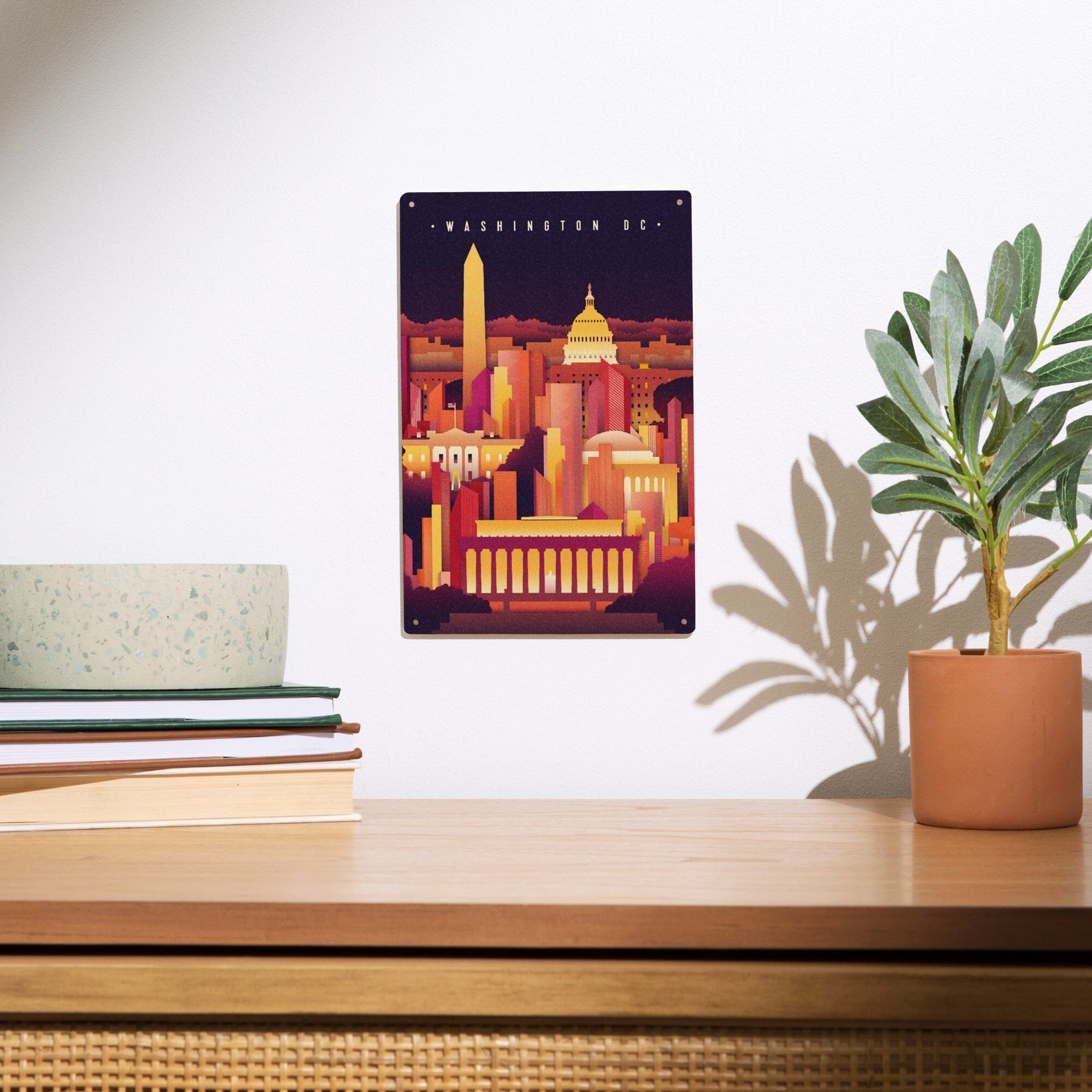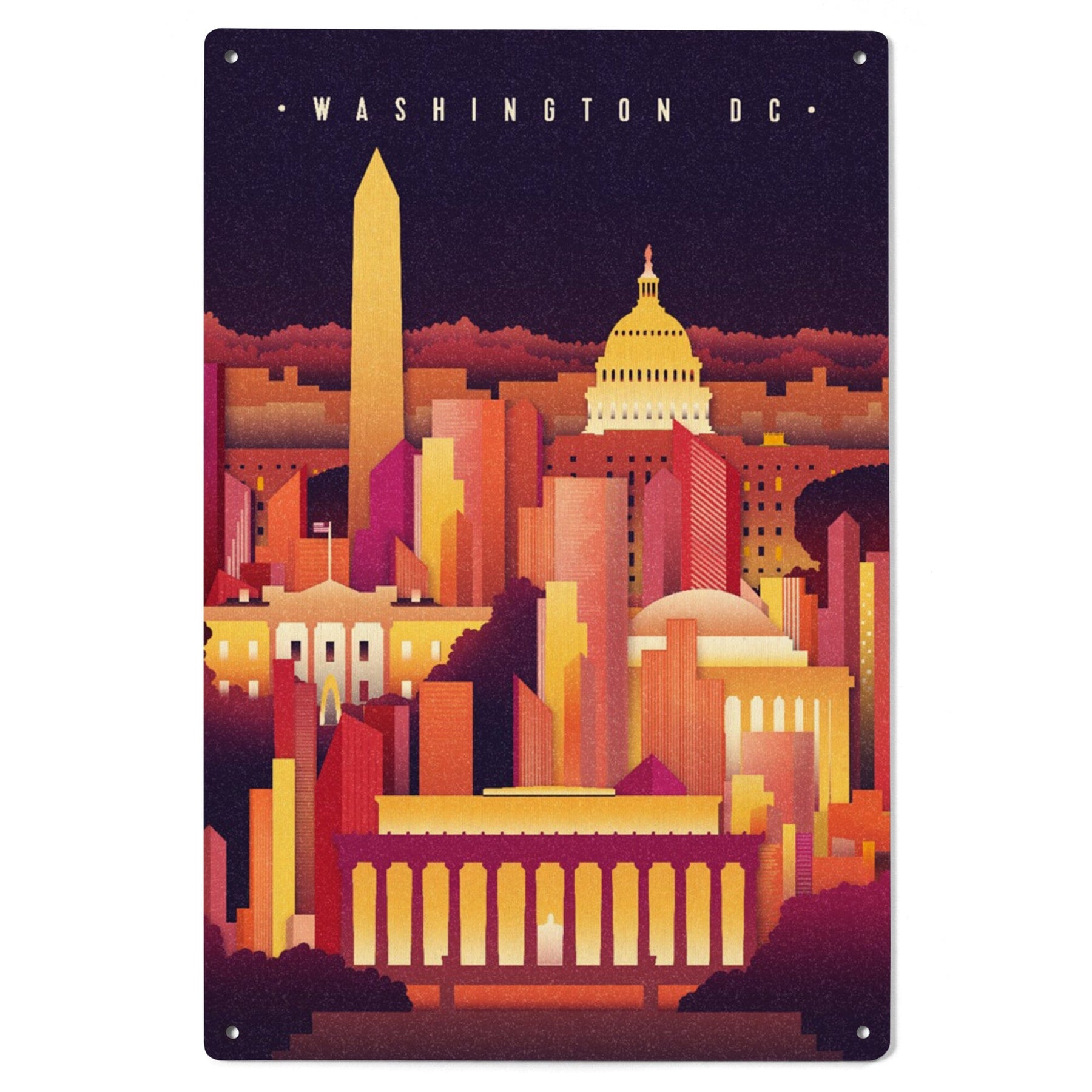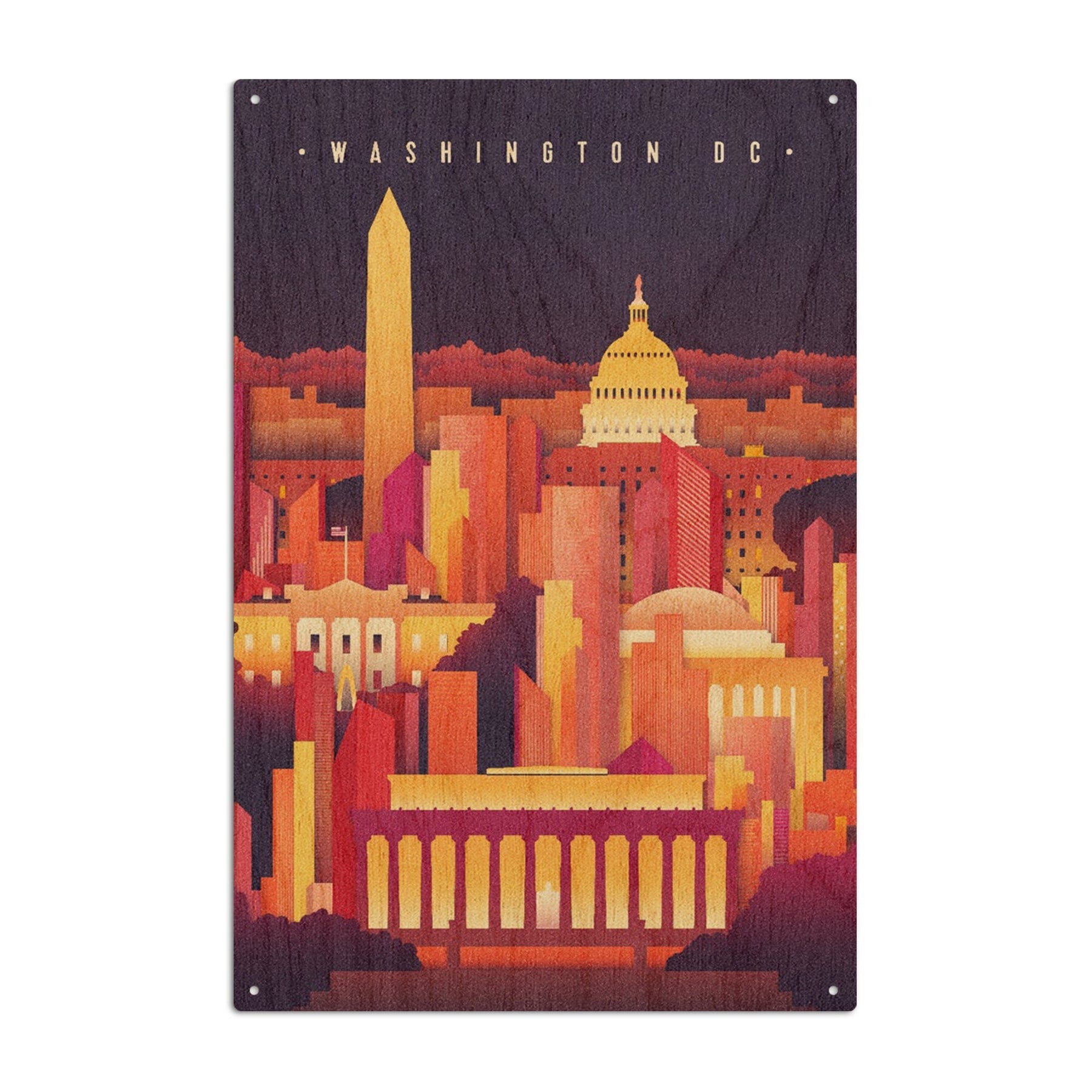 Washington DC, Neon Skyline, Lantern Press Artwork, Wood Signs and Postcards