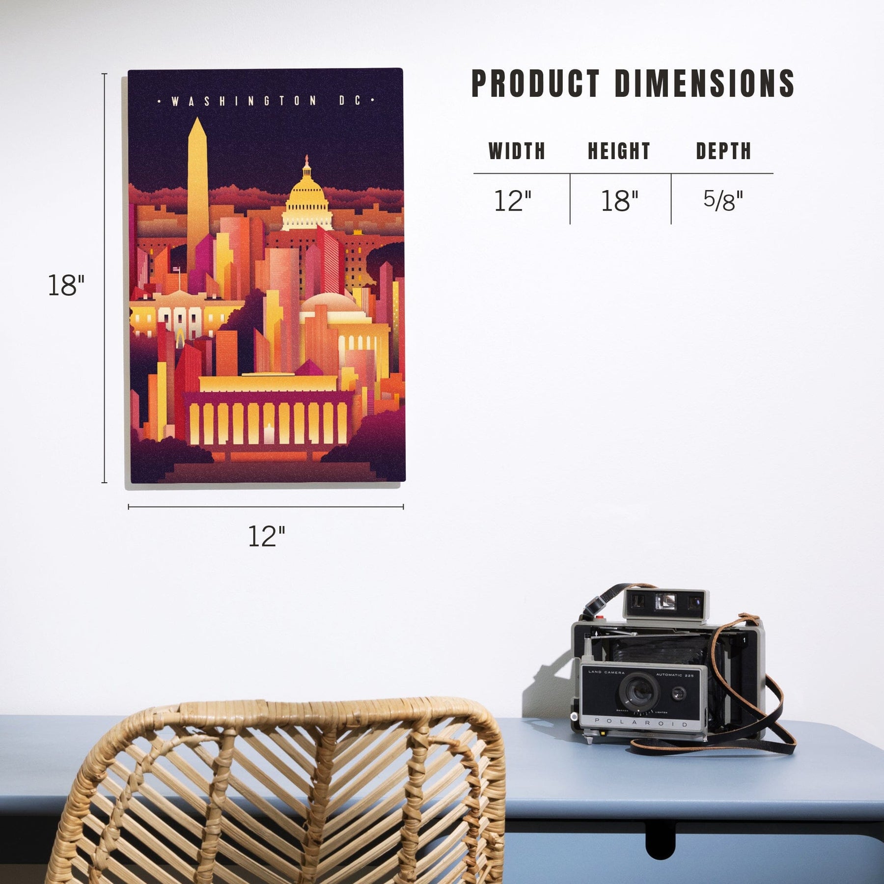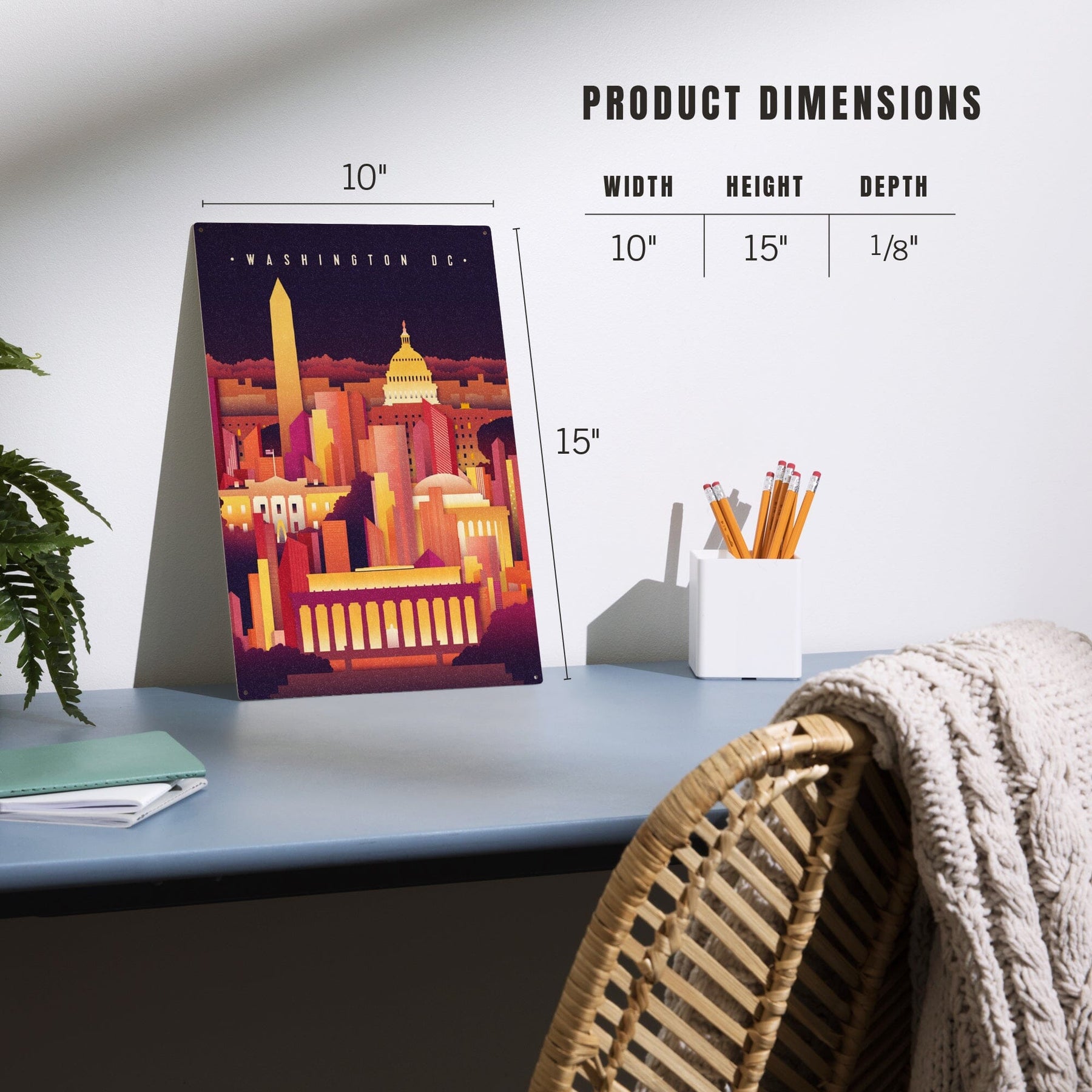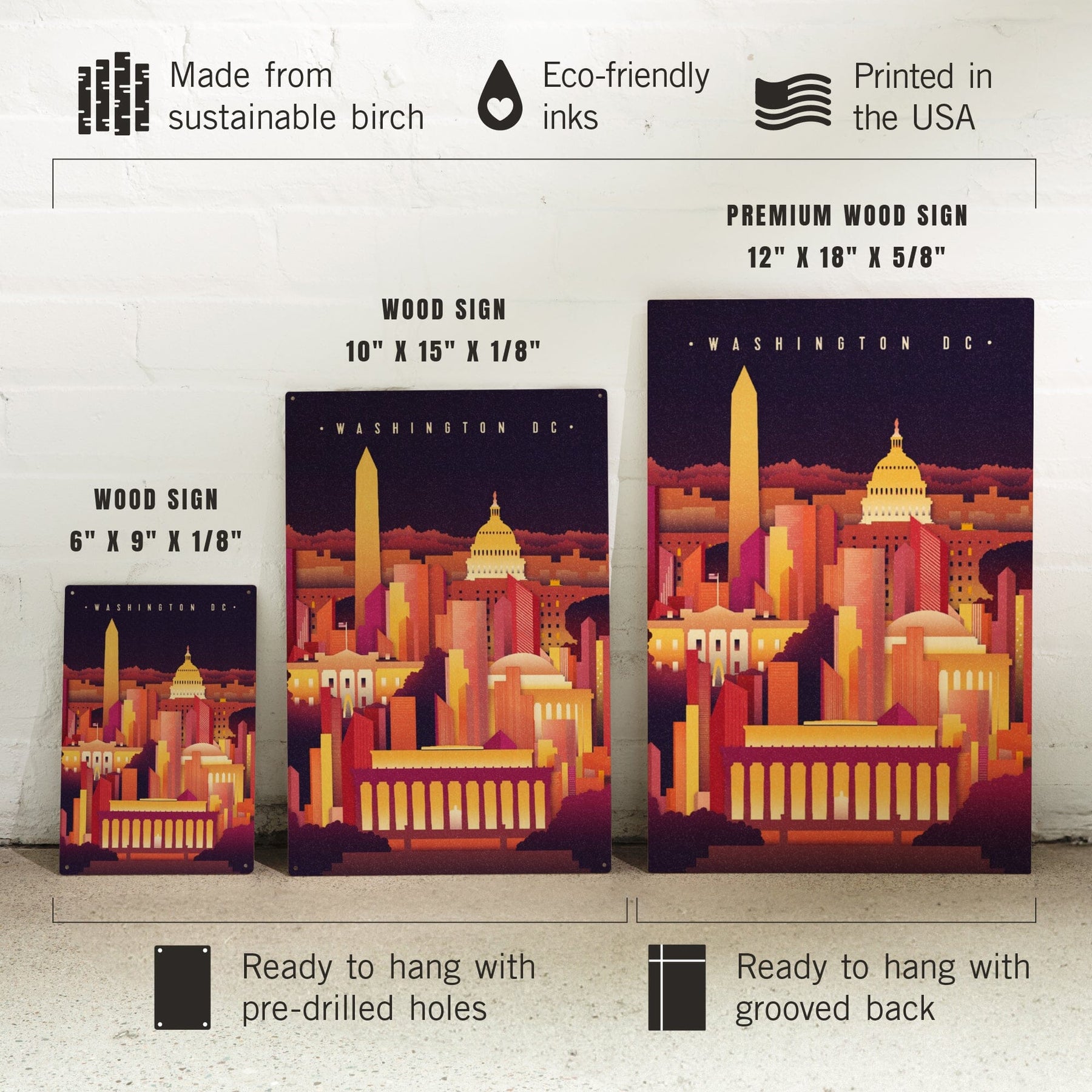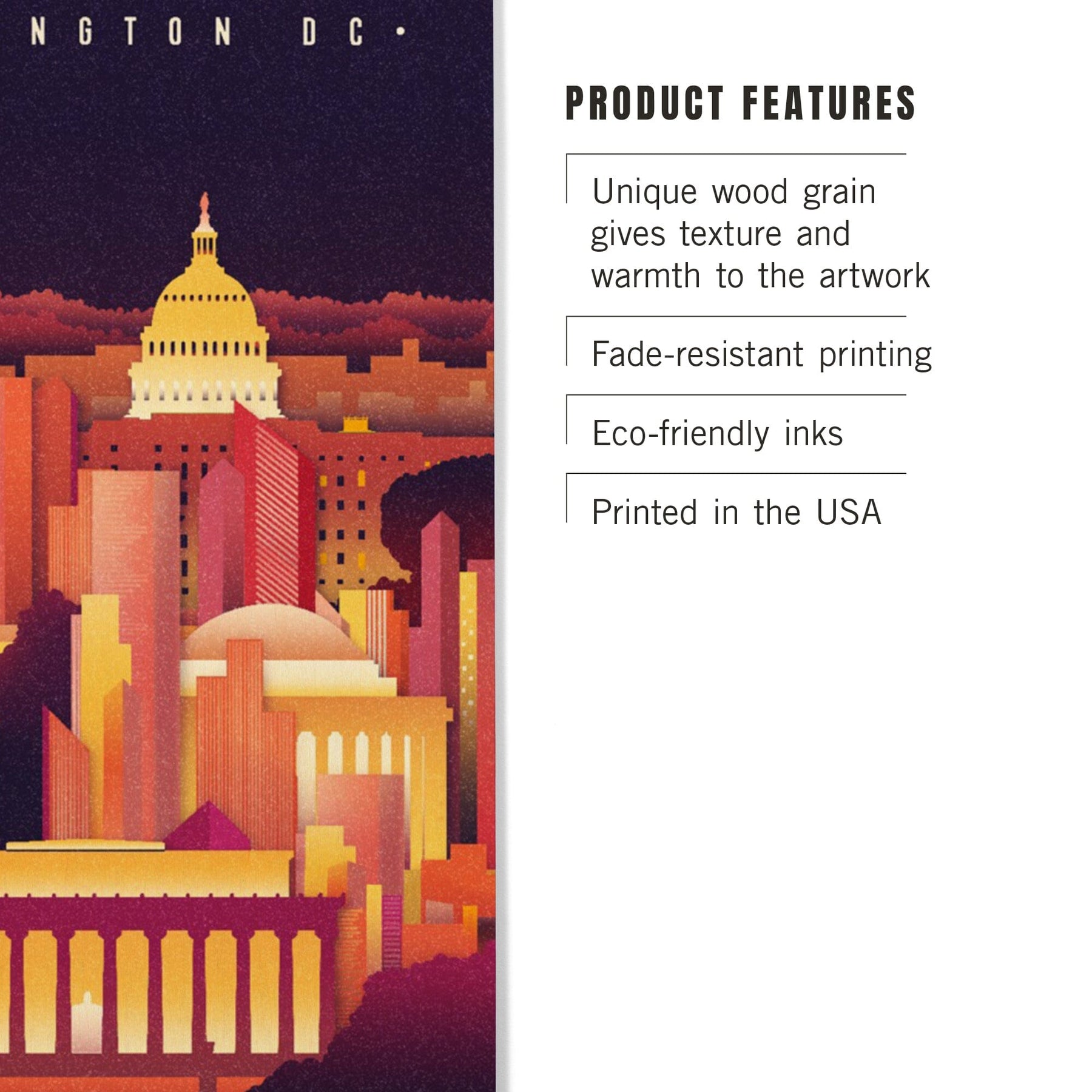 Washington DC, Neon Skyline, Lantern Press Artwork, Wood Signs and Postcards