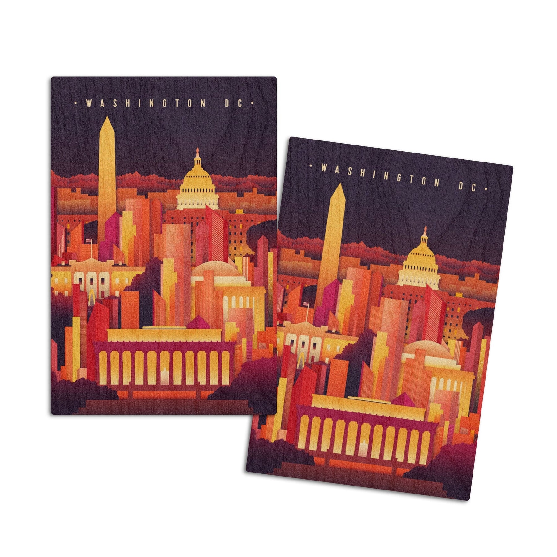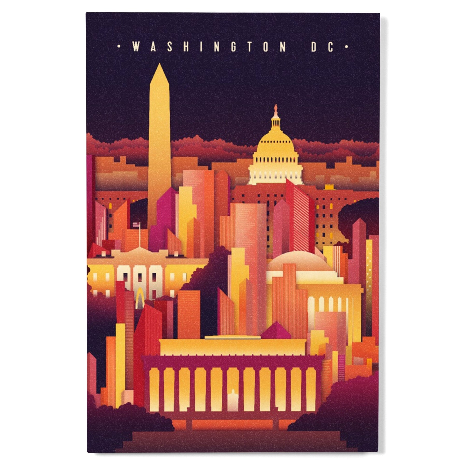 Washington, DC, Night Scene, Lantern Press Artwork, Wood Signs and Postcards