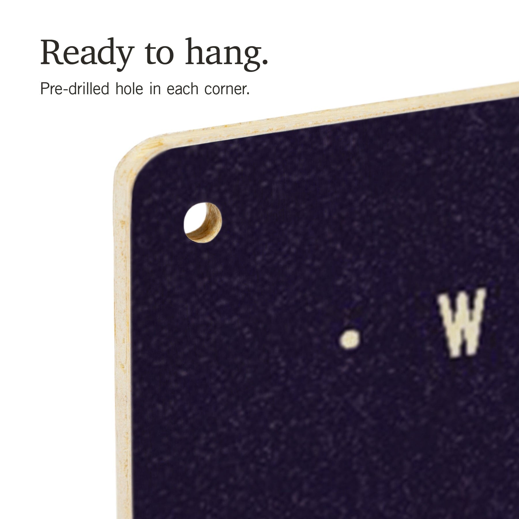 • Hole in each corner, ready to hang