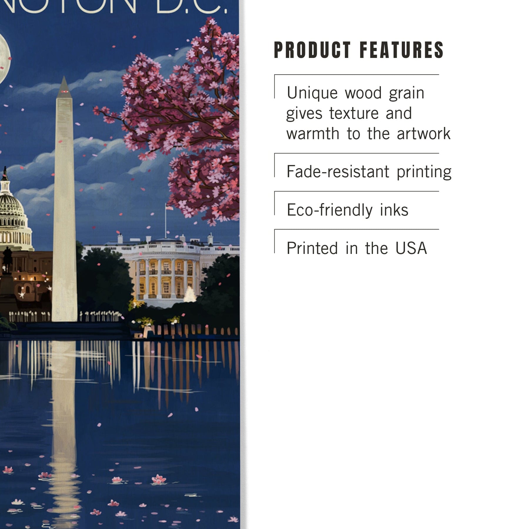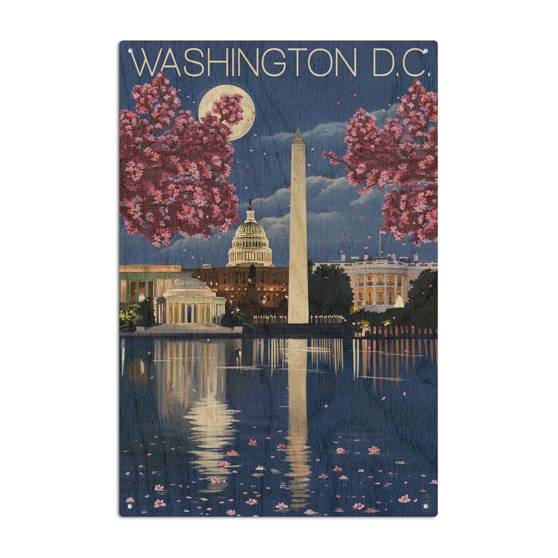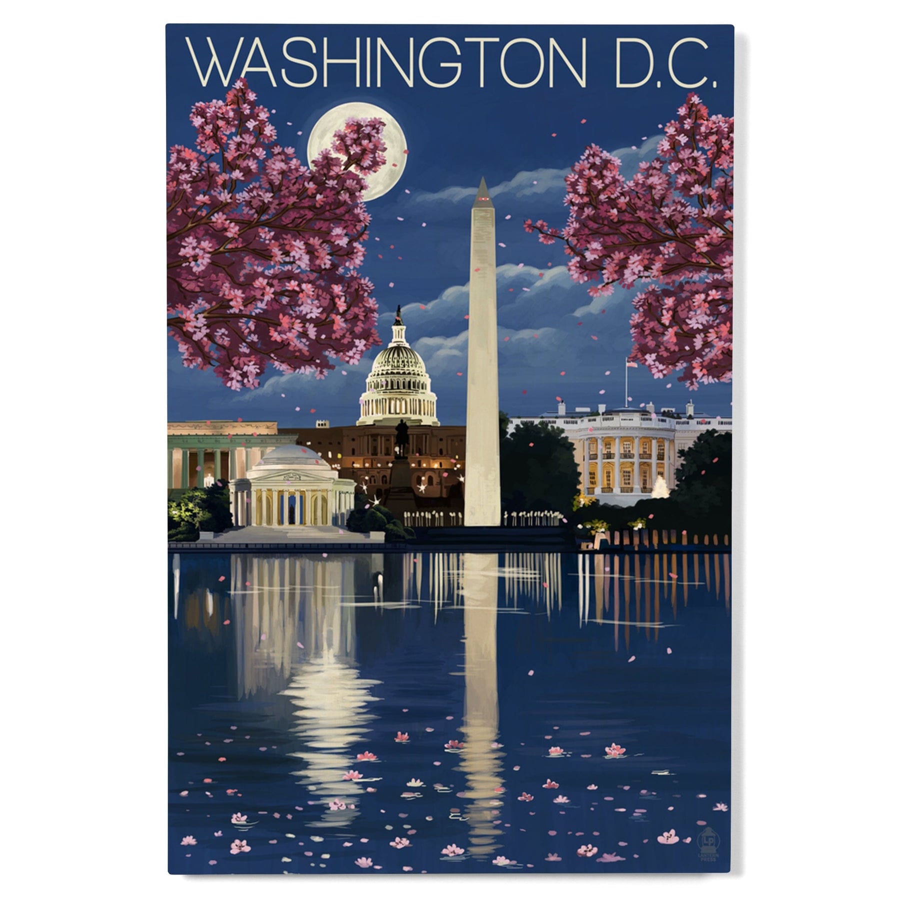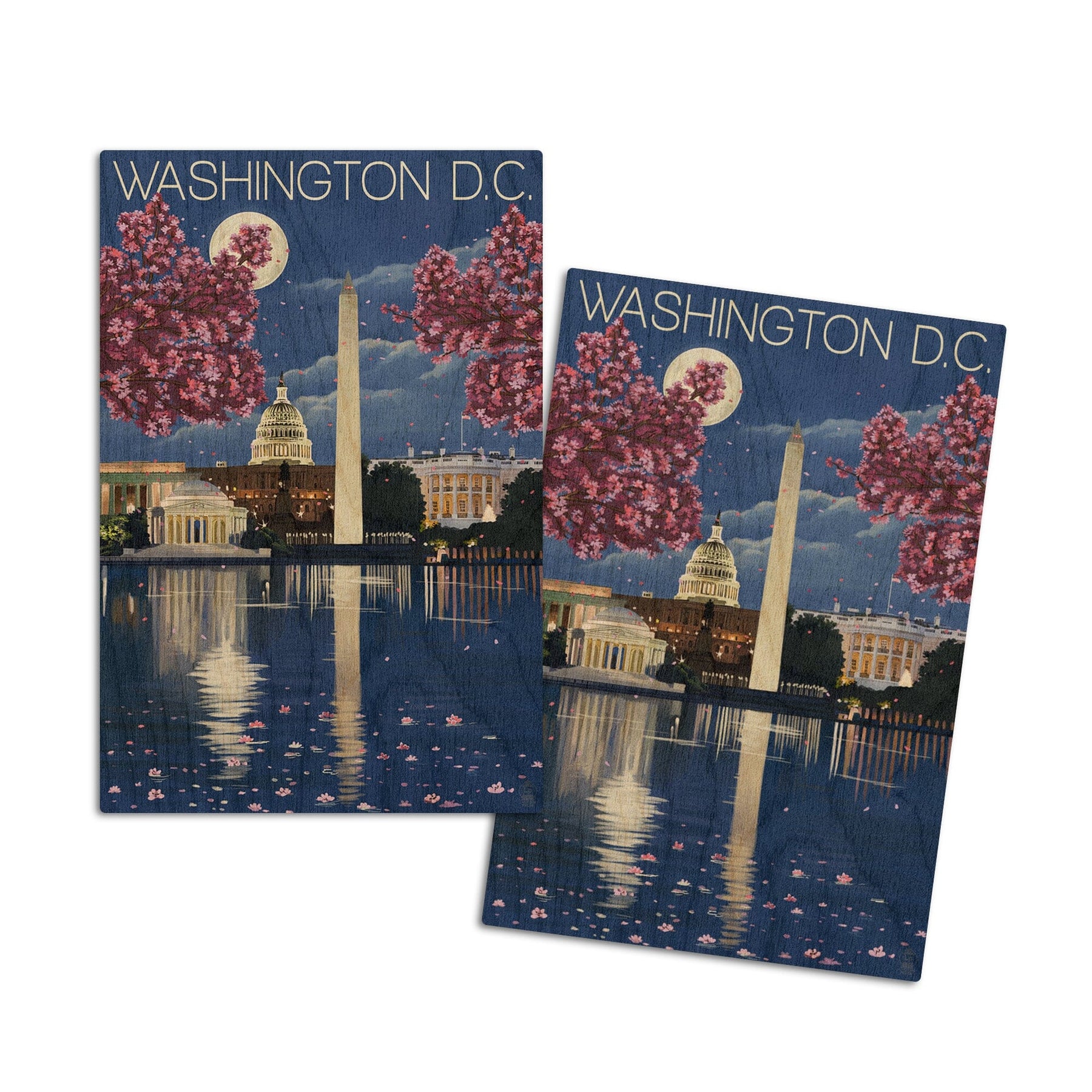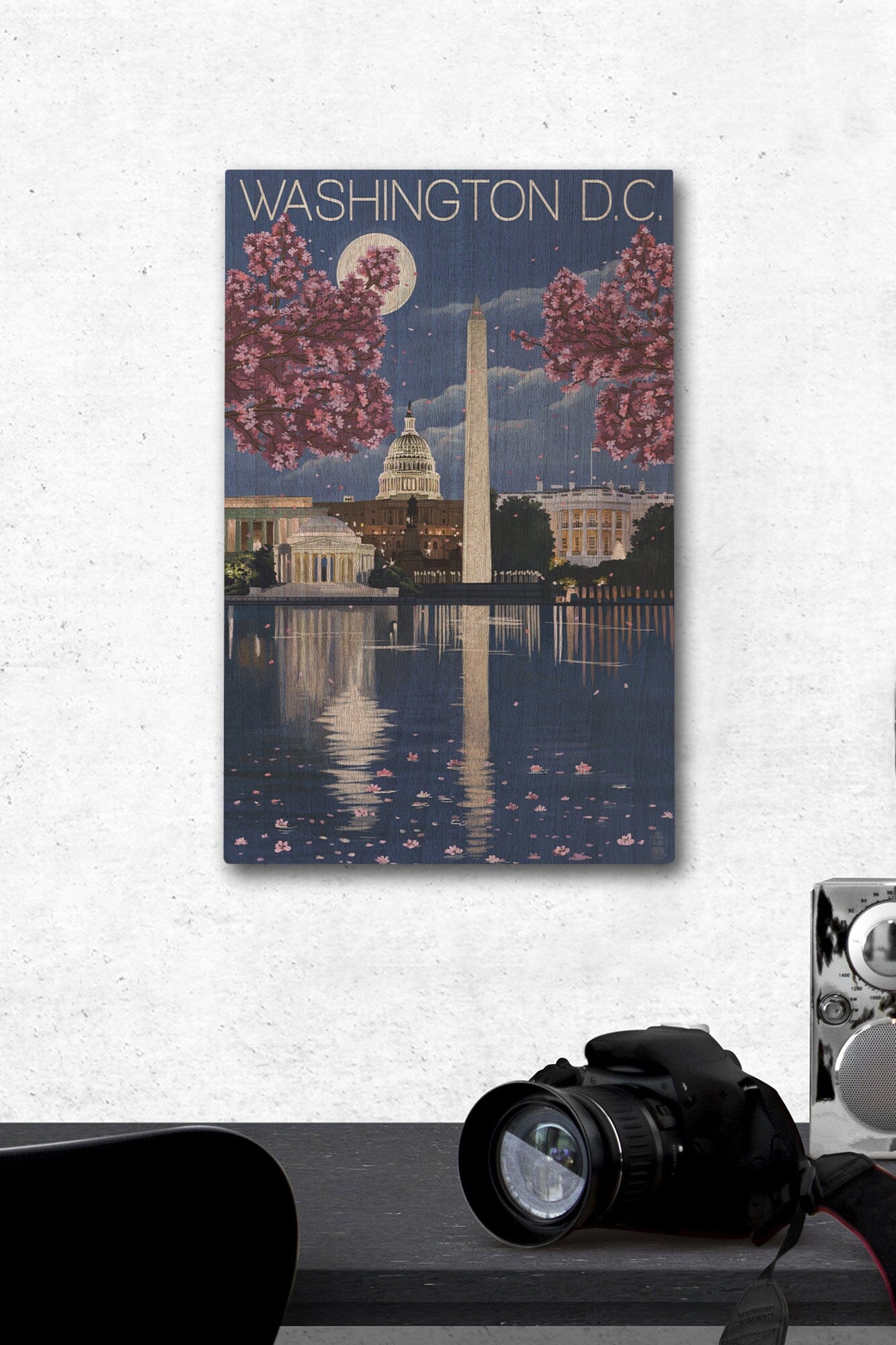 Washington, DC, Night Scene, Lantern Press Artwork, Wood Signs and Postcards