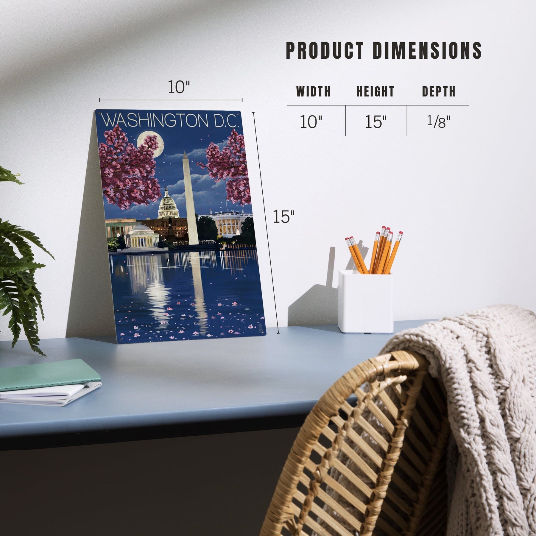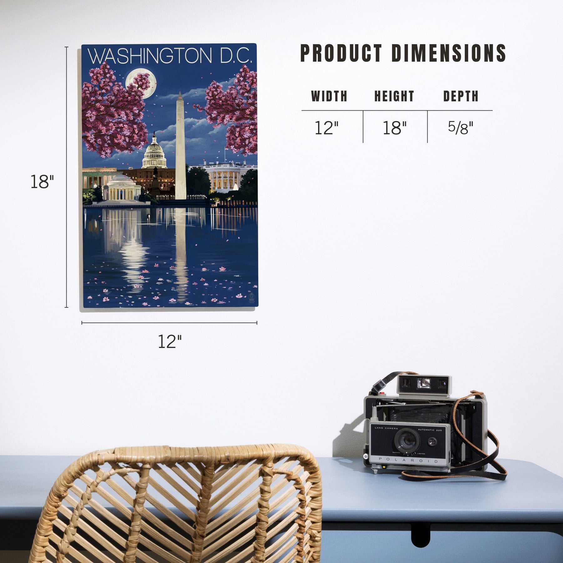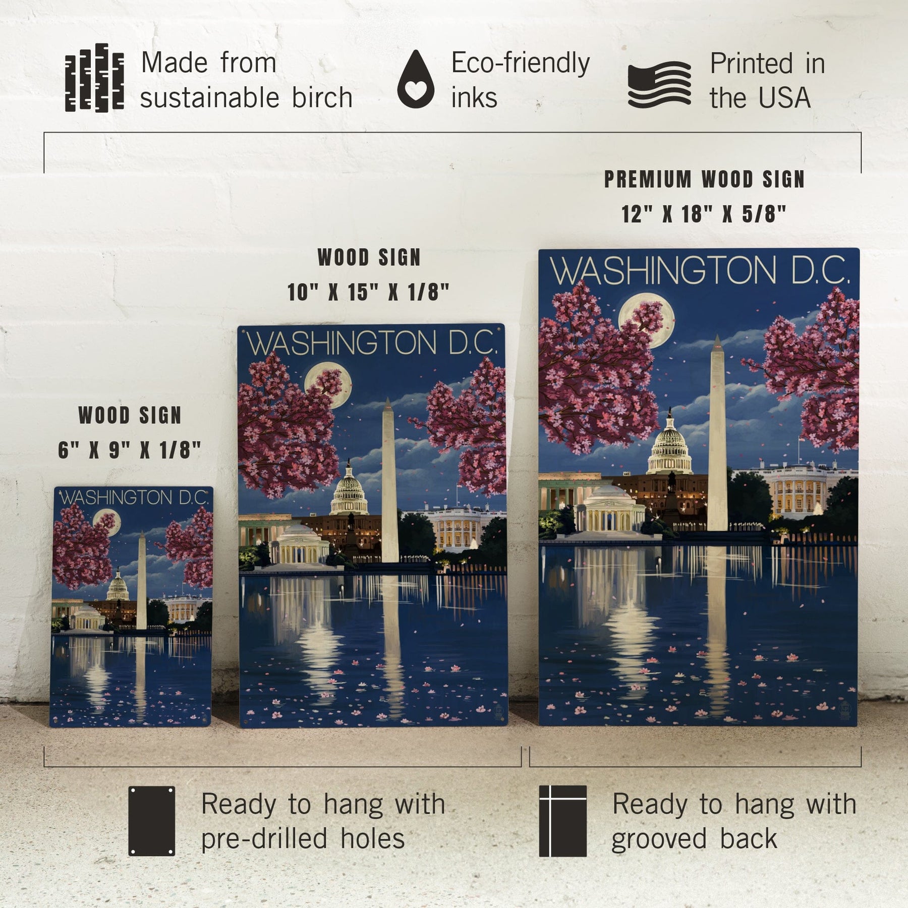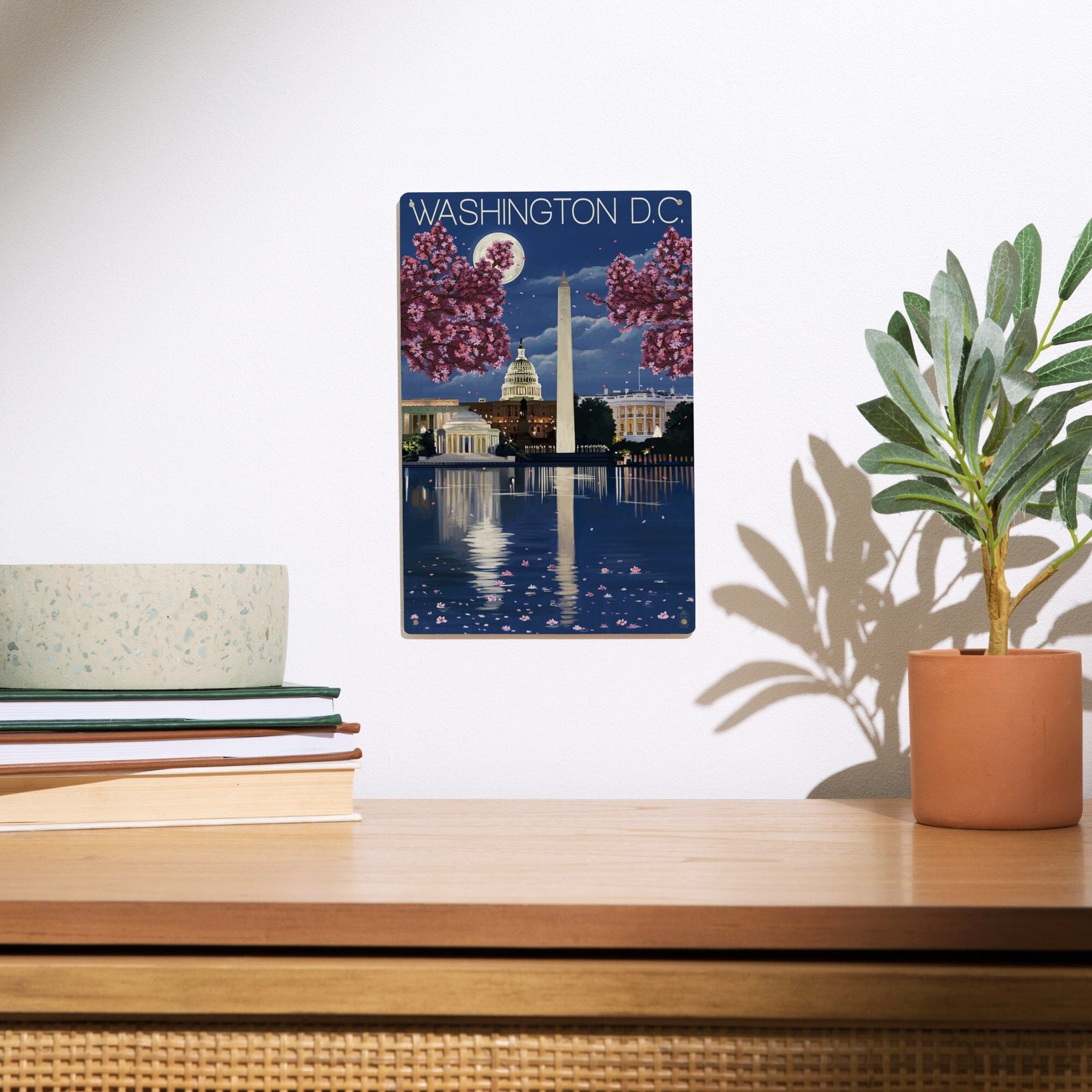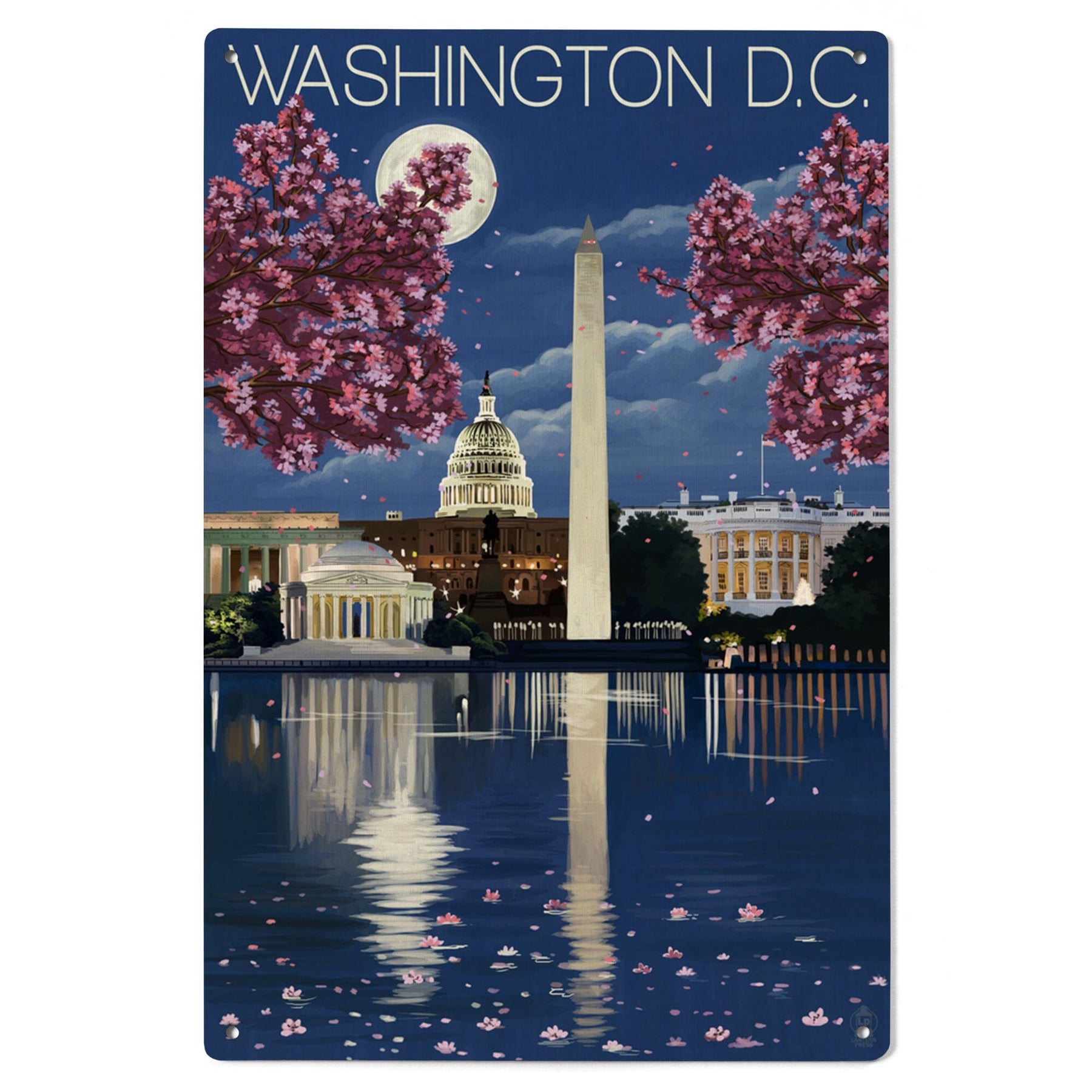Washington, DC, Night Scene, Lantern Press Artwork, Wood Signs and Postcards