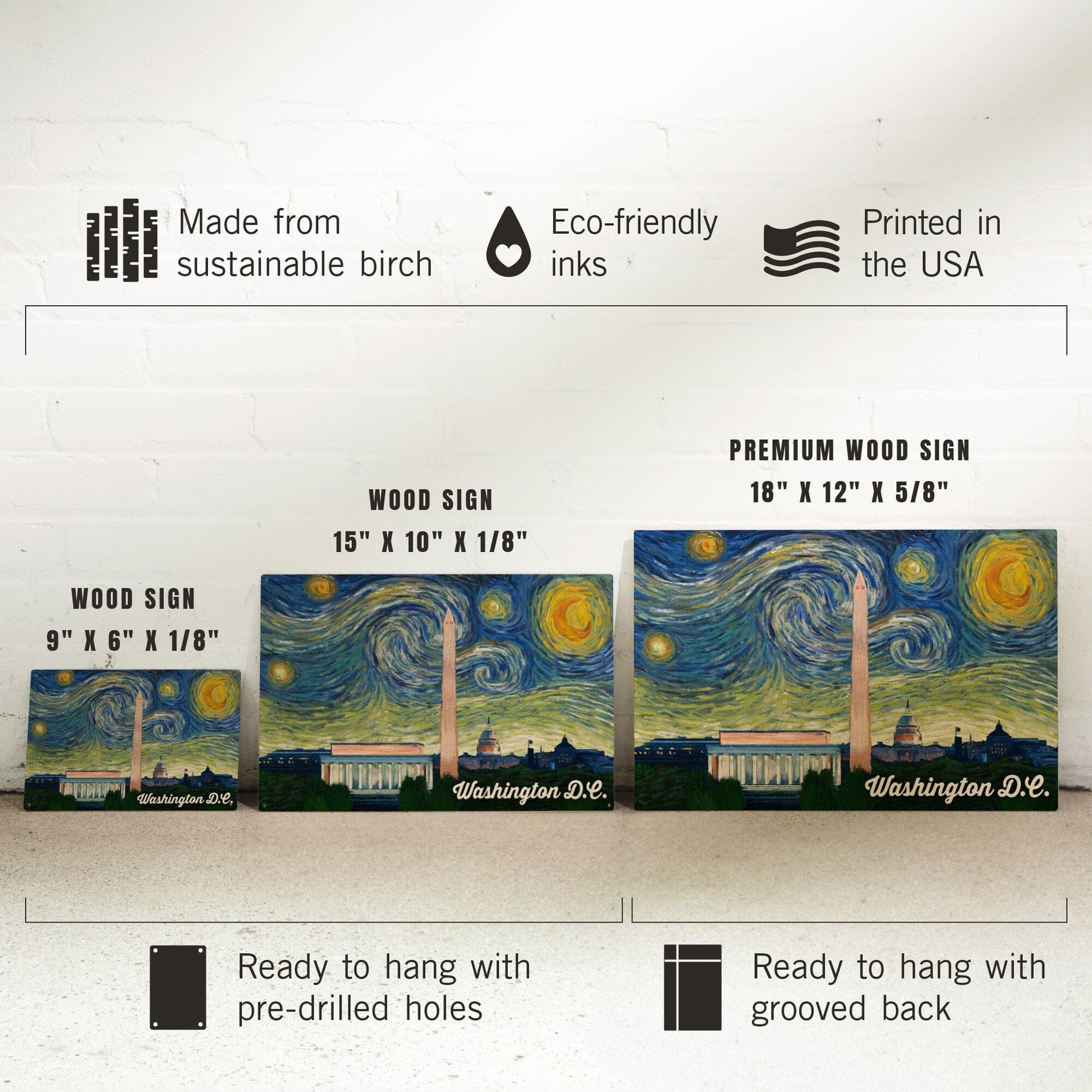 Washington DC, Starry Night Series, Lantern Press Artwork, Wood Signs and Postcards