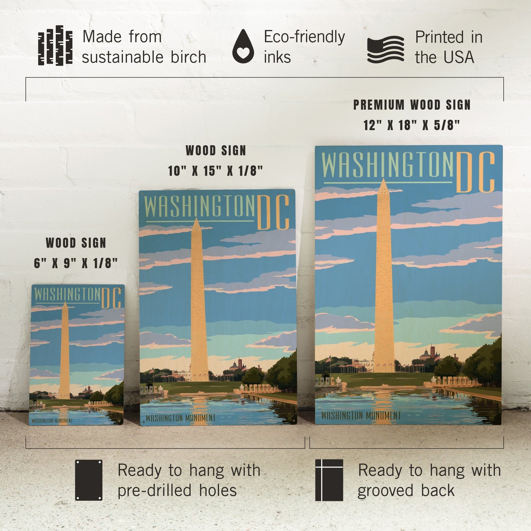Washington, DC, Washington Monument Scene, Lantern Press Artwork, Wood Signs and Postcards Wood Lantern Press